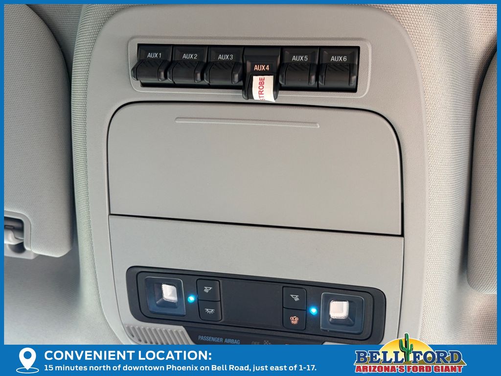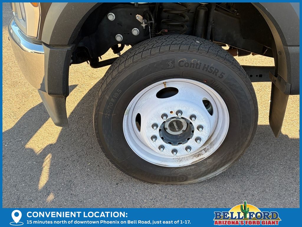 This Ford F-550SD is equipped with the following options: GVWR: 18,000 lbs Payload Package, GVWR: 19,500 lb Payload Plus Upgrade Package, High Capacity Trailer Tow Package, Order Code 663A, 4WD, 4 Speakers, 4-Wheel Disc Brakes, 410 Amp Dual Alternators, ABS brakes, Air Conditioning, AM/FM radio, AM/FM Stereo w/MP3 Player, Amber-Wht 360-Deg Dual Beacon LED Warning Strobes, Brake assist, Bumpers: chrome, Center High-Mounted Stop Lamp (CHMSL), Cloth 40/20/40 Split Bench Seat, Compass, Delay-off headlights, Driver door bin, Driver vanity mirror, Dual front impact airbags, Dual front side impact airbags, Dual rear wheels, Emergency communication system: SYNC 4 911 Assist, Exterior Backup Alarm (Pre-Installed), Front anti-roll bar, Front Center Armrest w/Storage, Front reading lights, Fully automatic headlights, Heated door mirrors, Illuminated entry, Outside temperature display, Overhead airbag, Overhead console, Panic alarm, Passenger cancellable airbag, Passenger door bin, Passenger vanity mirror, Power door mirrors, Power steering, Power windows, Rapid-Heat Supplemental Cab Heater, Rear anti-roll bar, Rear View Camera & Prep Kit, Remote keyless entry, Speed control, Steering wheel mounted audio controls, SYNC 4 Communications & Entertainment System, Tachometer, Telescoping steering wheel, Tilt steering wheel, Traction control, Trip computer, Turn signal indicator mirrors, Variably intermittent wipers, and Wheels: 19.5" x 6" Argent Painted Steel.