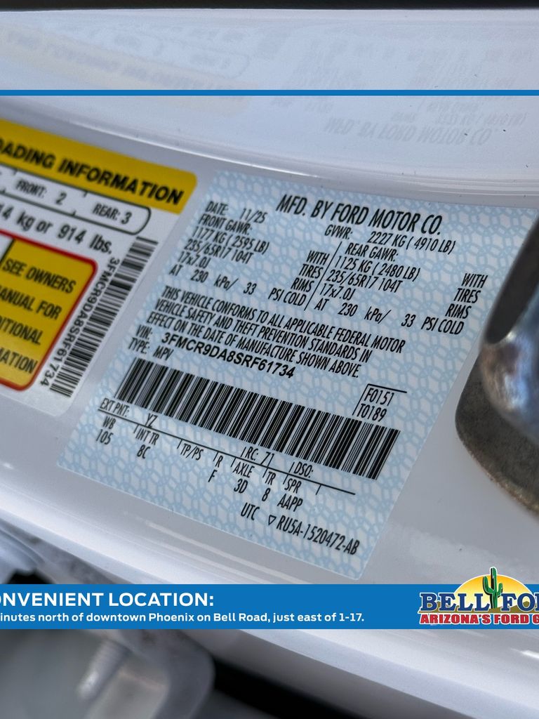 This Ford Bronco Sport is equipped with the following options: Badlands Tech Package (B&O Sound System by Bang & Olufsen, Connected Navigation, and HD Radio), Equipment Group 400A, Sasquatch Badlands Package (850W Engine Cooling Fan, Auxiliary Switches & Wiring, Brush Guard, Fender Tie Downs, High Clearance Fender Flares, HOSS 3.0 Off-Road Suspension, Rear Black Bumpers, Recovery Hooks, and Wheels: 17" Ebony Black-Painted Aluminum), 4-Wheel Disc Brakes, 6 Speakers, ABS brakes, Air Conditioning, Alloy wheels, AM/FM radio: SiriusXM, AM/FM Stereo, Auto High-beam Headlights, Auto-dimming Rear-View mirror, Automatic temperature control, Brake assist, Compass, Delay-off headlights, Driver door bin, Driver vanity mirror, Dual front impact airbags, Dual front side impact airbags, Electronic Stability Control, Emergency communication system: SYNC 4 911 Assist, Four wheel independent suspension, Front anti-roll bar, Front Bucket Seats, Front Center Armrest, Front fog lights, Front reading lights, Fully automatic headlights, Garage door transmitter, Heated door mirrors, Heated front seats, Heated steering wheel, Illuminated entry, Knee airbag, Leather Trimmed Front Bucket Seats, Low tire pressure warning, Memory seat, Occupant sensing airbag, Outside temperature display, Overhead airbag, Overhead console, Panic alarm, Passenger door bin, Passenger vanity mirror, Power door mirrors, Power driver seat, Power passenger seat, Power steering, Power windows, Radio data system, Rear anti-roll bar, Rear reading lights, Rear seat center armrest, Rear window defroster, Rear window wiper, Remote keyless entry, Security system, SiriusXM, Speed control, Speed-sensing steering, Speed-Sensitive Wipers, Split folding rear seat, Steering wheel mounted audio controls, SYNC 4 w/Enhanced Voice Recognition, Tachometer, Telescoping steering wheel, Tilt steering wheel, Traction control, Trip computer, Variably intermittent wipers, and Wheels: 17" Matte Black-Painted Aluminum. Price includes: $1000 - Retail Bonus Cash. Exp. 02/16/2026 $1000 - SUV Spike Retail Bonus Cash. Exp. 03/02/2026 $2000 - Retail Customer Cash. Exp. 03/31/2026