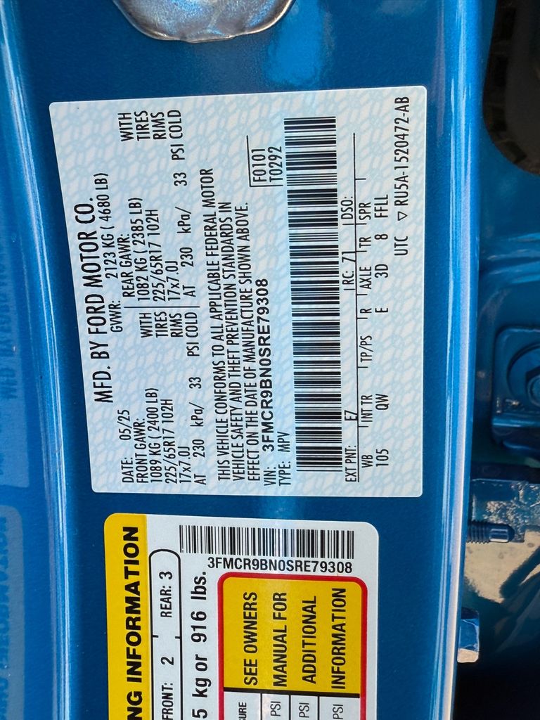 - VIN : 3FMCR9BN0SRE79308