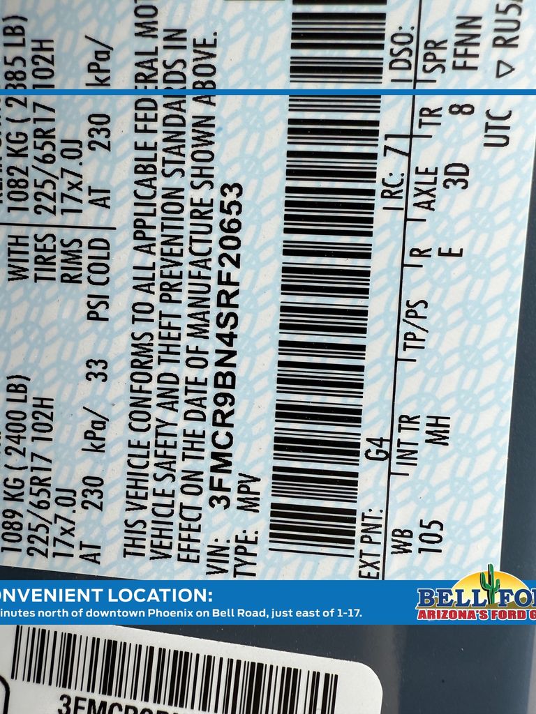 - VIN : 3FMCR9BN4SRF20653
