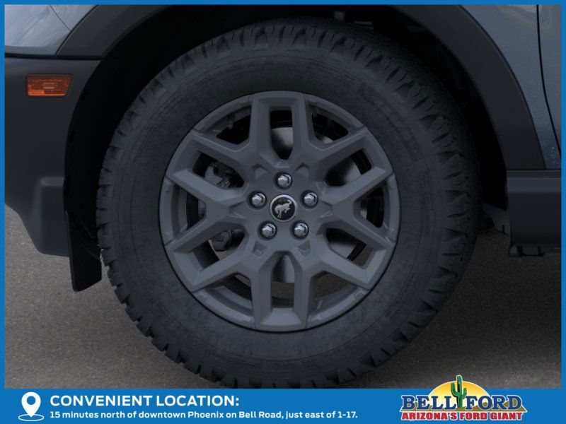 This Ford Bronco Sport is equipped with the following options: Black Diamond Off-Road Package (110V/400W AC Power Outlet, 2nd Row Carpeted Seatback, Auxiliary Switches & Wiring, Brush Guard, Cargo Management System (Shelf/Divider/Table), Cargo Mat, Class II Trailer Tow Pack w/Trailer Sway Control, Fender Tie Downs, Front & Rear Black Bumpers, Interior Grab Handle, Recovery Hooks, and Wheels: 17" Carbonized Gray Painted Aluminum), Equipment Group 200A, 4-Wheel Disc Brakes, 6 Speakers, ABS brakes, Air Conditioning, Alloy wheels, AM/FM radio: SiriusXM, AM/FM Stereo, Auto High-beam Headlights, Automatic temperature control, Brake assist, Cloth w/Easy-to-Clean Front Bucket Seats, Compass, Delay-off headlights, Driver door bin, Driver vanity mirror, Dual front impact airbags, Dual front side impact airbags, Electronic Stability Control, Emergency communication system: SYNC 4 911 Assist, Four wheel independent suspension, Front anti-roll bar, Front Bucket Seats, Front Center Armrest, Front reading lights, Fully automatic headlights, Heated door mirrors, Illuminated entry, Knee airbag, Low tire pressure warning, Occupant sensing airbag, Outside temperature display, Overhead airbag, Overhead console, Panic alarm, Passenger door bin, Passenger vanity mirror, Power door mirrors, Power steering, Power windows, Radio data system, Rear anti-roll bar, Rear Parking Sensors, Rear reading lights, Rear seat center armrest, Rear window defroster, Rear window wiper, Remote keyless entry, Security system, SiriusXM, Speed control, Speed-sensing steering, Speed-Sensitive Wipers, Split folding rear seat, Steering wheel mounted audio controls, SYNC 4 w/Enhanced Voice Recognition, Tachometer, Telescoping steering wheel, Tilt steering wheel, Traction control, Trip computer, Variably intermittent wipers, and Wheels: 17" Carbonized Gray-Painted Aluminum. Price includes: $1000 - Bonus Customer Cash. Exp. 01/05/2026 $500 - Retail Bonus Cash. Exp. 01/05/2026