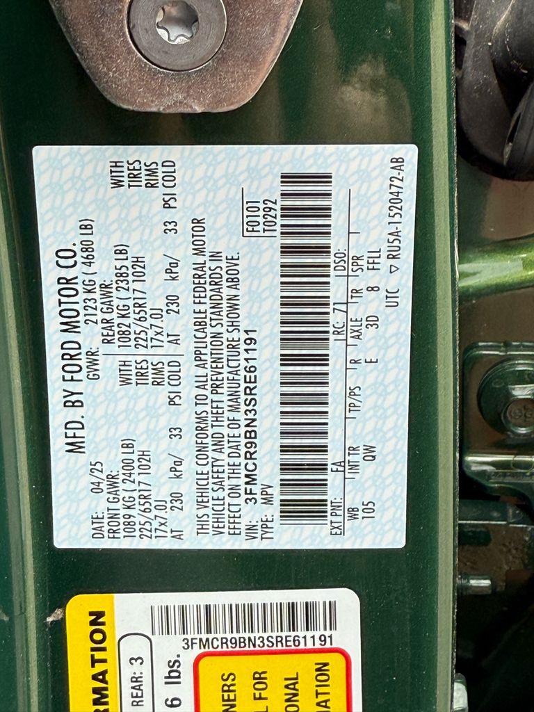 Eruption Grn Me 2025 Ford Bronco Sport Big Bend 4WD 1.5L EcoBoost 8-Speed Automatic