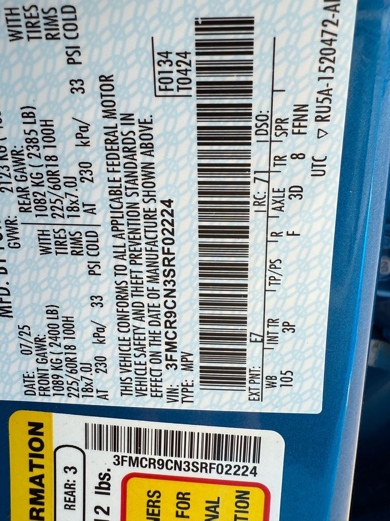 This Ford Bronco Sport is equipped with the following options: Equipment Group 300A, Outer Banks Tech Package+ (B&O Sound System by Bang & Olufsen, Connected Navigation, and HD Radio), 360-Degree Camera w/Trail & Split View, 4-Wheel Disc Brakes, 6 Speakers, ABS brakes, Air Conditioning, Alloy wheels, AM/FM radio: SiriusXM, AM/FM Stereo, Auto High-beam Headlights, Auto-dimming Rear-View mirror, Automatic temperature control, Brake assist, Compass, Delay-off headlights, Driver door bin, Driver vanity mirror, Dual front impact airbags, Dual front side impact airbags, Electronic Stability Control, Emergency communication system: SYNC 4 911 Assist, Four wheel independent suspension, Front anti-roll bar, Front Bucket Seats, Front Center Armrest, Front Driver/Passenger Seat Back Map Pockets, Front dual zone A/C, Front fog lights, Front Parking Sensors, Front reading lights, Fully automatic headlights, Garage door transmitter, Heated door mirrors, Heated front seats, Heated steering wheel, Illuminated entry, Knee airbag, Low tire pressure warning, Memory seat, Occupant sensing airbag, Outside temperature display, Overhead airbag, Overhead console, Panic alarm, Passenger door bin, Passenger vanity mirror, Power door mirrors, Power driver seat, Power passenger seat, Power steering, Power windows, Premium Trimmed Front Bucket Seats w/Ebony/Roast, Radio data system, Rain sensing wipers, Rear anti-roll bar, Rear Parking Sensors, Rear reading lights, Rear seat center armrest, Rear window defroster, Rear window wiper, Remote keyless entry, Reverse Brake Assist, Security system, SiriusXM, Speed control, Speed-sensing steering, Speed-Sensitive Wipers, Split folding rear seat, Steering wheel mounted audio controls, SYNC 4 w/Enhanced Voice Recognition, Tachometer, Telescoping steering wheel, Tilt steering wheel, Traction control, Trip computer, Variably intermittent wipers, and Wheels: 18" Ebony Black-Painted Aluminum. Price includes: $1000 - Bonus Customer Cash. Exp. 01/05/2026 $500 - Retail Bonus Cash. Exp. 01/05/2026