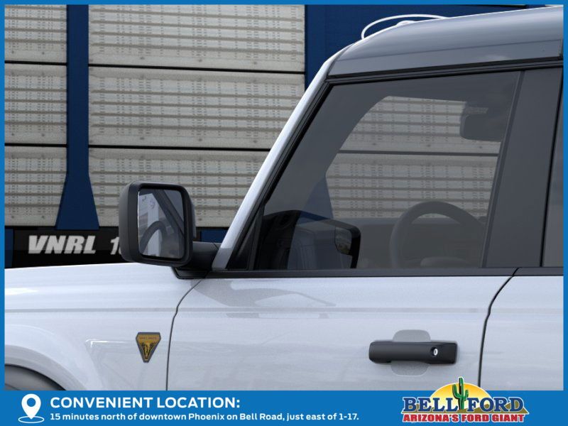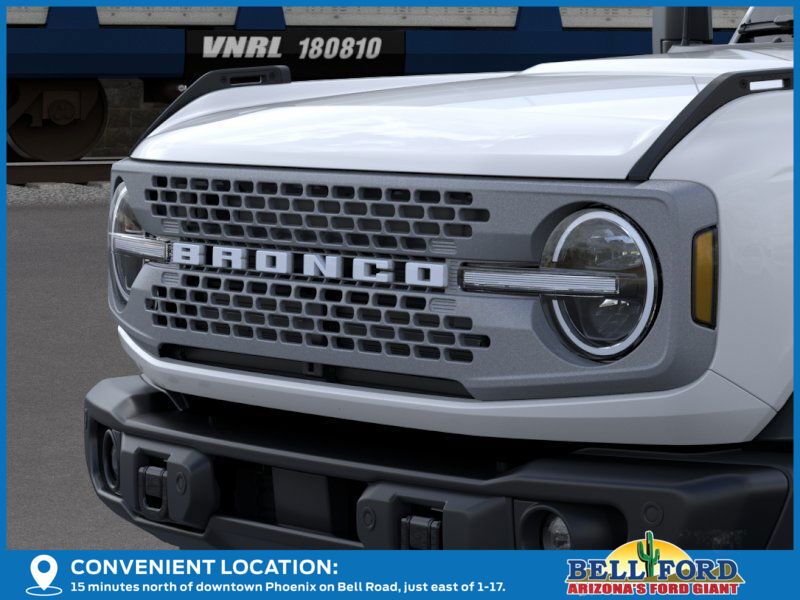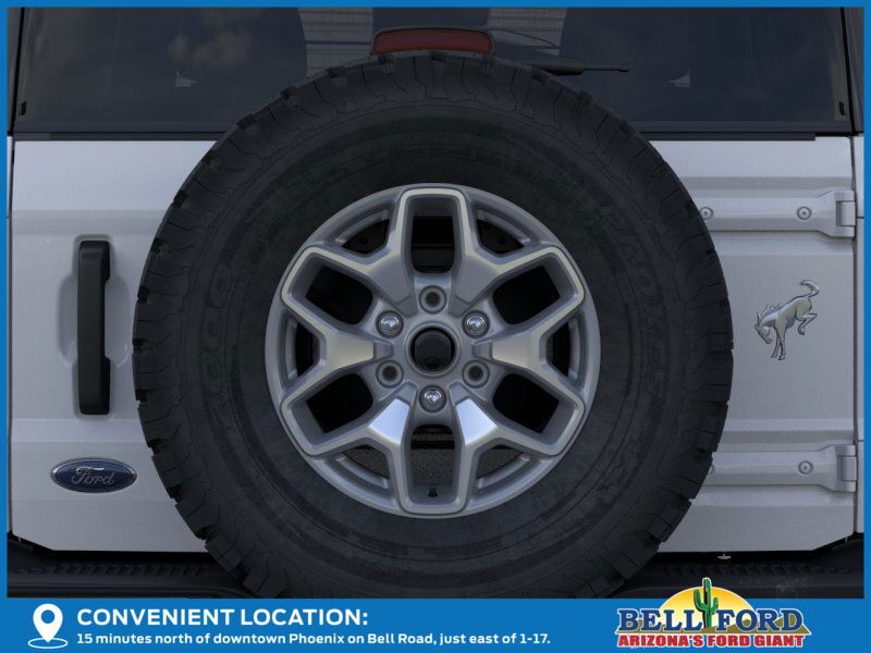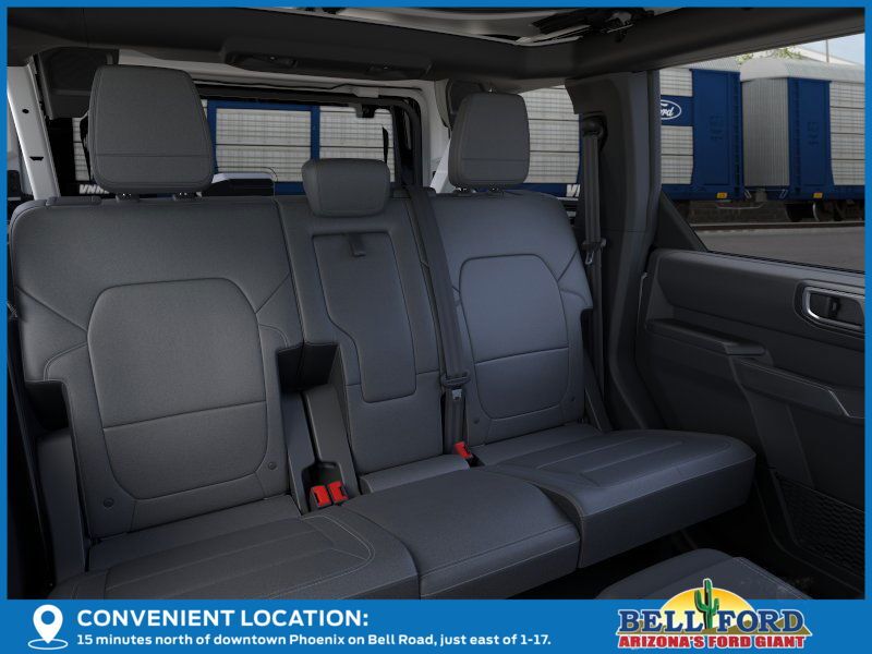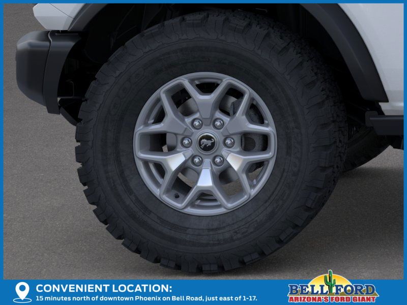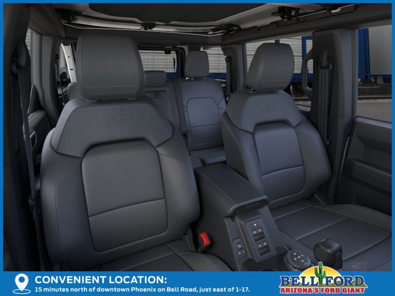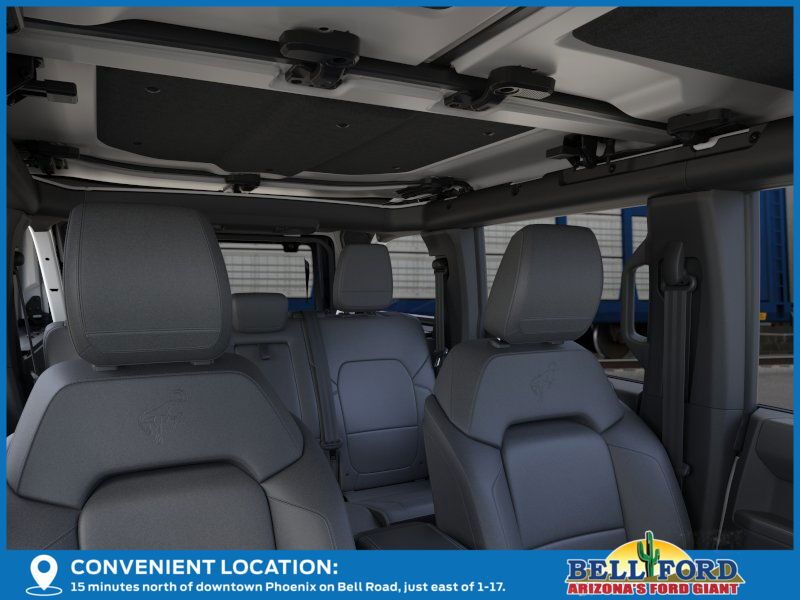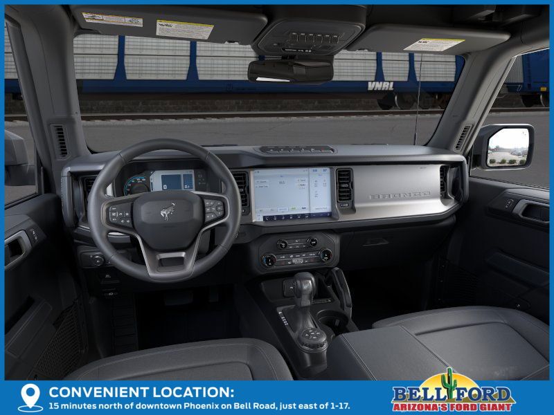 This Ford Bronco is equipped with the following options: Equipment Group 332A Mid Package (2-Door Intelligent Access w/Lock/Unlock, Ambient Footwell Lighting, Connected Navigation, Dr & Pass Illuminated Sliding Visor Vanity Mirrors, Dual Smart Charging USB Ports, Dual-Zone Electronic Automatic Temperature Control, Front Row Heated Seats, Power Outlet - Back Side of Center Floor Console, and Rear Parking Sensors), 4-Wheel Disc Brakes, 4.7 Axle Ratio, 7 Speakers, ABS brakes, Air Conditioning, Alloy wheels, AM/FM radio: SiriusXM with 360L, AM/FM Stereo, Auto High-Beam Headlamps, Auto High-beam Headlights, Auto-dimming Rear-View mirror, BLIS Blind Spot Information System, Brake assist, Compass, Delay-off headlights, Driver door bin, Driver vanity mirror, Dual front impact airbags, Dual front side impact airbags, Electronic Stability Control, Emergency communication system: 911 Assist, Exterior Parking Camera Rear, Front anti-roll bar, Front Bucket Seats, Front Center Armrest, Front fog lights, Front reading lights, Front wheel independent suspension, Fully automatic headlights, Hard Top Sound Deadening Headliner, Heated door mirrors, Heated front seats, Heated steering wheel, Illuminated entry, Integrated roll-over protection, Lane-Keeping System, Leather Shift Knob, Low tire pressure warning, Marine Grade Vinyl Heated Bucket Seats, Occupant sensing airbag, Outside temperature display, Overhead airbag, Overhead console, Panic alarm, Passenger door bin, Passenger vanity mirror, Power door mirrors, Power steering, Power windows, Pre-Collision Assist w/Automatic Emergency Braking, Radio data system, Rear-View Camera, Rear-Window Defroster & Washer, Remote keyless entry, Security system, Shadow Black Painted Hard Top, SiriusXM w/360L, Speed control, Split folding rear seat, Steering wheel mounted audio controls, SYNC 4, Tachometer, Telescoping steering wheel, Tilt steering wheel, Traction control, Trip computer, Variably intermittent wipers, Voltmeter, and Wheels: 17" Carbonized Gray-Painted Aluminum. Price includes: $1000 - Bonus Customer Cash. Exp. 01/05/2026 $1000 - Retail Bonus Cash. Exp. 01/05/2026