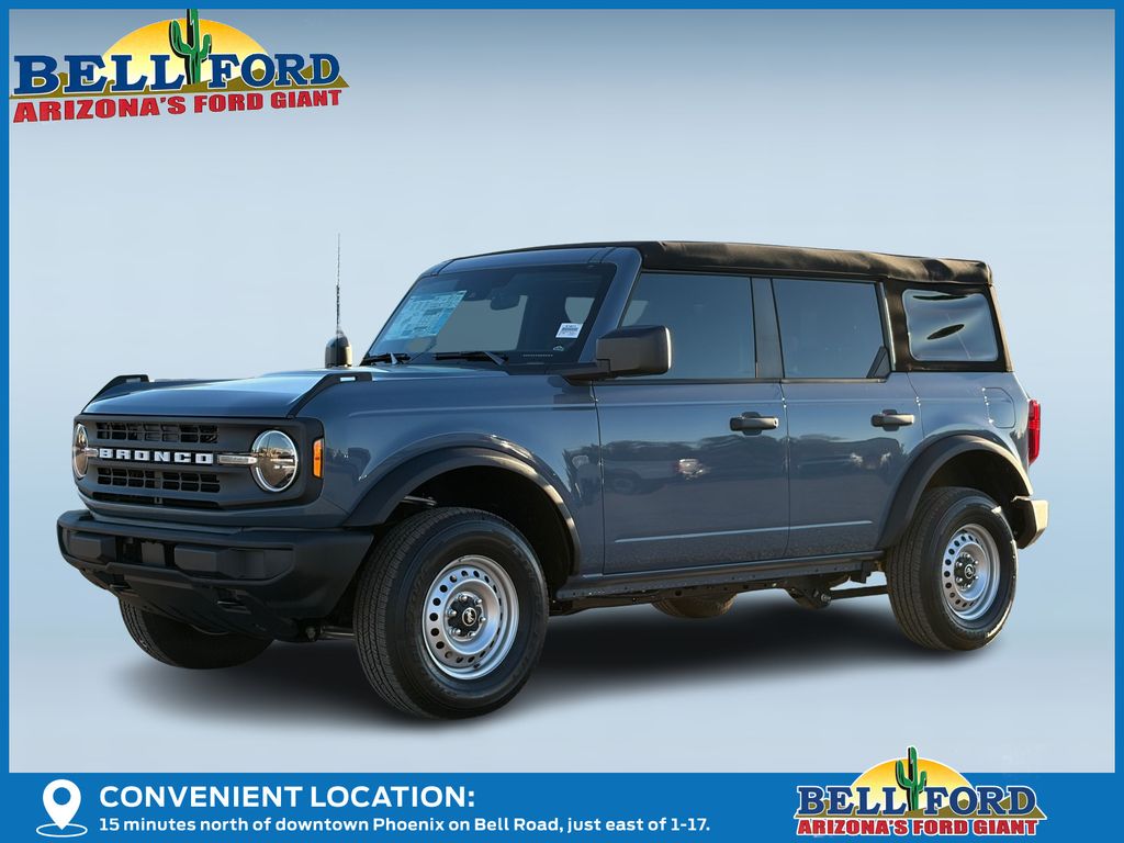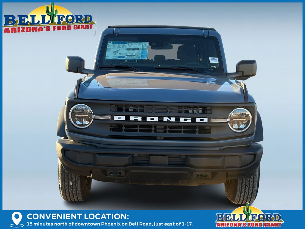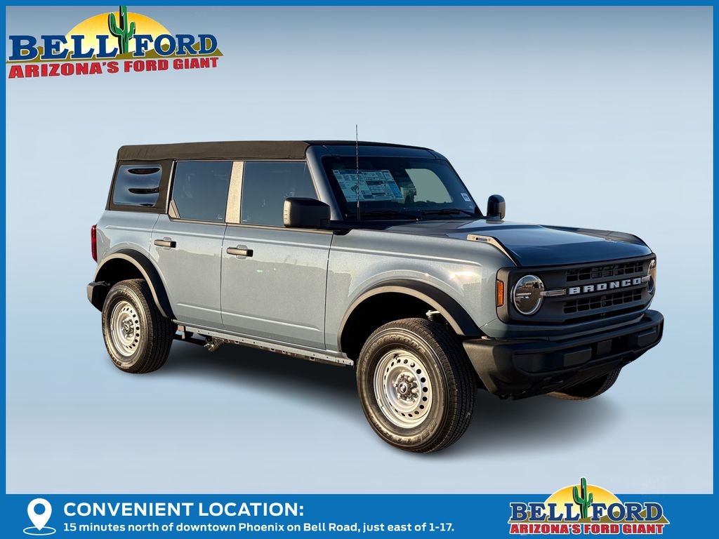 This Ford Bronco is equipped with the following options: Equipment Group 101A, Trailer Tow Package (DIO), 4-Wheel Disc Brakes, 4.46 Axle Ratio, 7 Speakers, ABS brakes, Air Conditioning, AM/FM radio: SiriusXM with 360L, AM/FM Stereo, Auto High-beam Headlights, Brake assist, Cloth Bucket Seats, Compass, Delay-off headlights, Driver door bin, Driver vanity mirror, Dual front impact airbags, Dual front side impact airbags, Electronic Stability Control, Emergency communication system: 911 Assist, Exterior Parking Camera Rear, Front anti-roll bar, Front Bucket Seats, Front Center Armrest, Front reading lights, Front wheel independent suspension, Fully automatic headlights, Heated door mirrors, Illuminated entry, Integrated roll-over protection, Low tire pressure warning, Occupant sensing airbag, Outside temperature display, Overhead airbag, Overhead console, Panic alarm, Passenger door bin, Passenger vanity mirror, Power door mirrors, Power steering, Power windows, Radio data system, Remote keyless entry, Security system, SiriusXM w/360L, Speed control, Split folding rear seat, Steering wheel mounted audio controls, SYNC 4, Tachometer, Telescoping steering wheel, Tilt steering wheel, Traction control, Trip computer, Variably intermittent wipers, and Wheels: 16" Bright Polished Silver-Painted Steel. Price includes: $1000 - Bonus Customer Cash. Exp. 01/05/2026 $1000 - Retail Bonus Cash. Exp. 01/05/2026