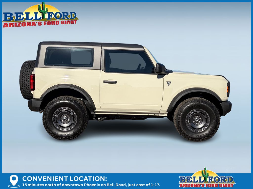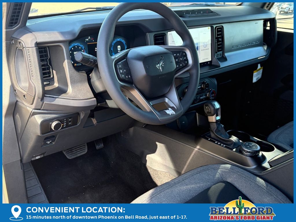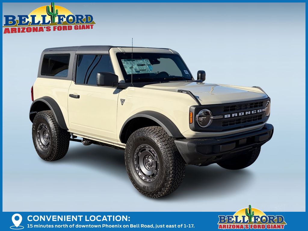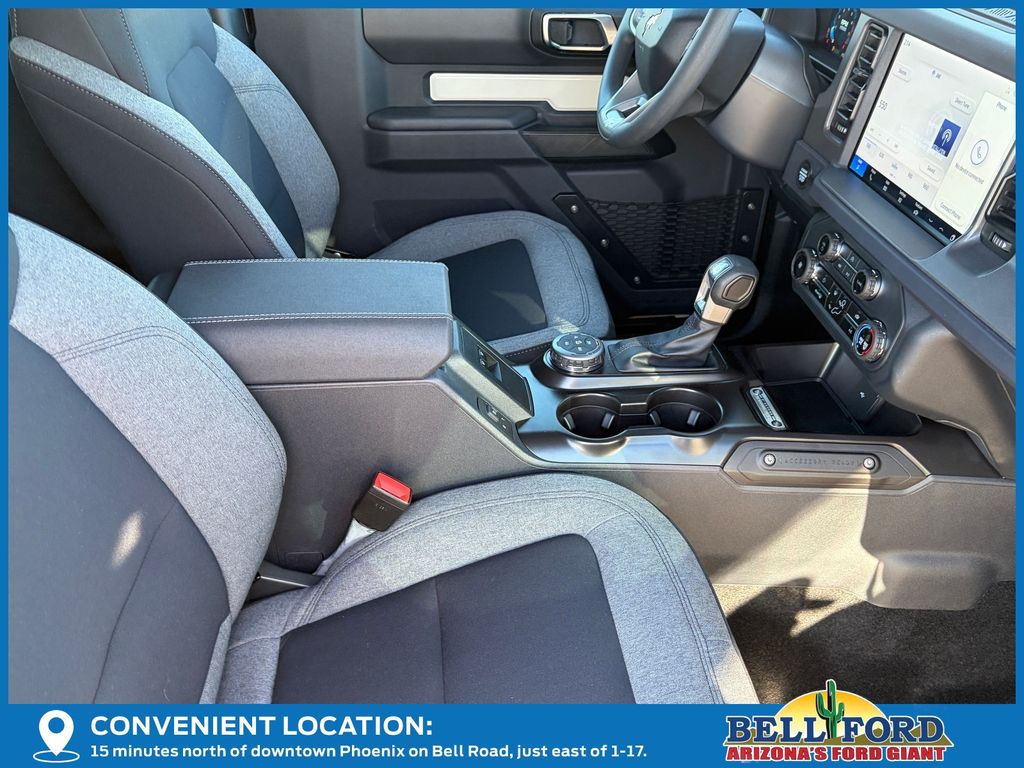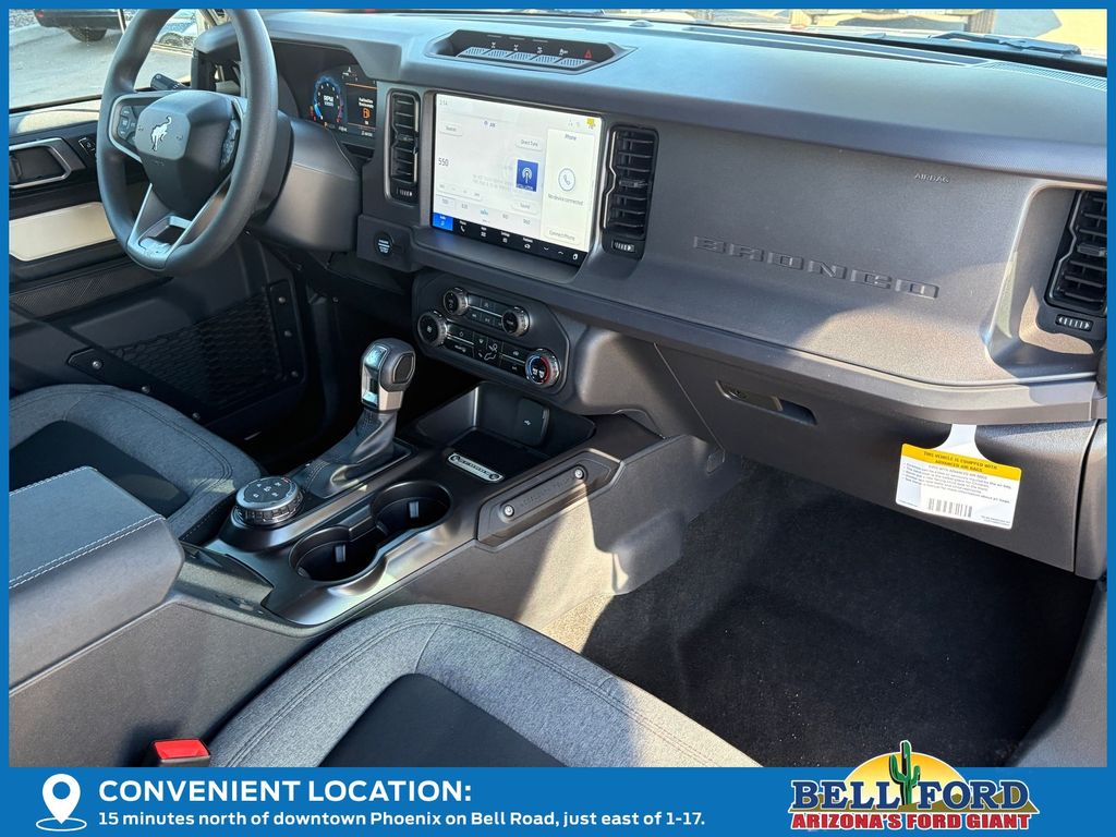 This Ford Bronco is equipped with the following options: Equipment Group 101A, Sasquatch Package (High Clearance Fender Flares, High Clearance Suspension, Position-Sensitive Bilstein Shock Absorbers, and Wheels: 17" Carbonized Gray Painted Aluminum), 4-Wheel Disc Brakes, 7 Speakers, ABS brakes, Air Conditioning, AM/FM radio: SiriusXM with 360L, AM/FM Stereo, Auto High-beam Headlights, Brake assist, Cloth Bucket Seats, Compass, Convertible HardTop, Convertible roof lining, Delay-off headlights, Driver door bin, Driver vanity mirror, Dual front impact airbags, Dual front side impact airbags, Electronic Stability Control, Emergency communication system: 911 Assist, Exterior Parking Camera Rear, Front anti-roll bar, Front Bucket Seats, Front Center Armrest, Front reading lights, Front wheel independent suspension, Fully automatic headlights, Glass rear window, Heated door mirrors, Illuminated entry, Integrated roll-over protection, Low tire pressure warning, Occupant sensing airbag, Outside temperature display, Overhead airbag, Overhead console, Panic alarm, Passenger door bin, Passenger vanity mirror, Power door mirrors, Power steering, Power windows, Radio data system, Rear window defroster, Rear window wiper, Remote keyless entry, Security system, SiriusXM w/360L, Speed control, Split folding rear seat, Steering wheel mounted audio controls, SYNC 4, Tachometer, Telescoping steering wheel, Tilt steering wheel, Traction control, Trip computer, Variably intermittent wipers, and Wheels: 16" Bright Polished Silver-Painted Steel. Price includes: $1000 - Bonus Customer Cash. Exp. 01/05/2026 $1000 - Retail Bonus Cash. Exp. 01/05/2026