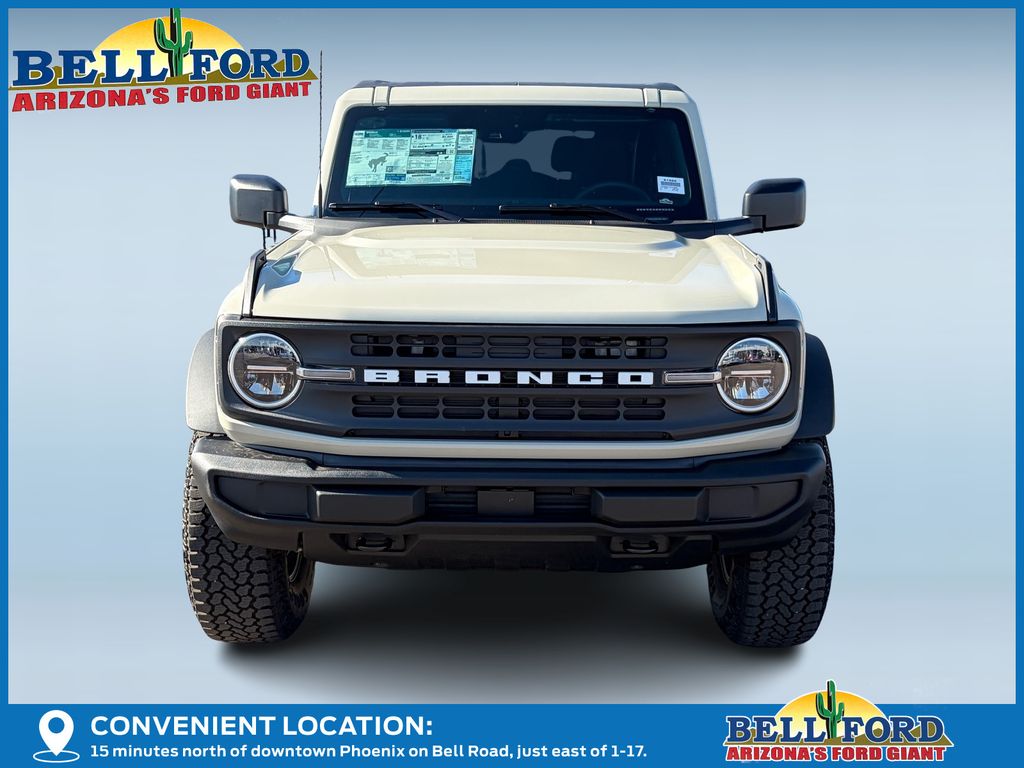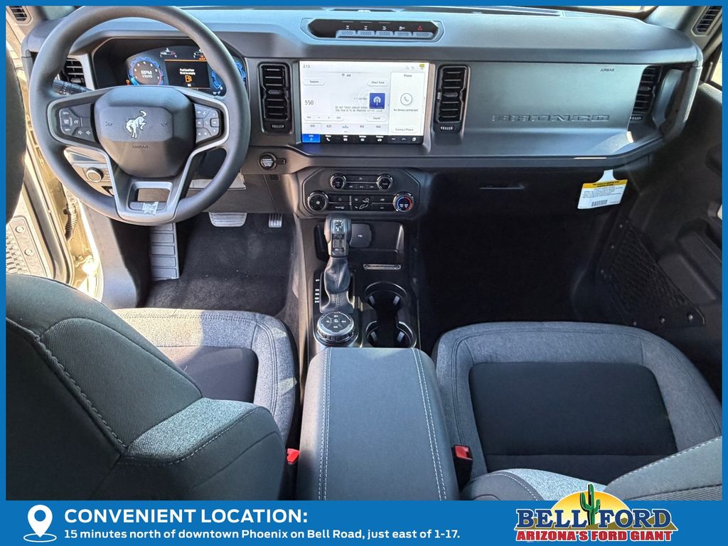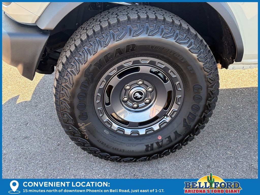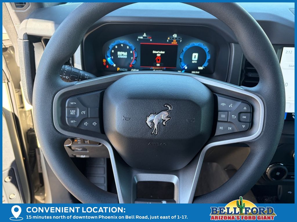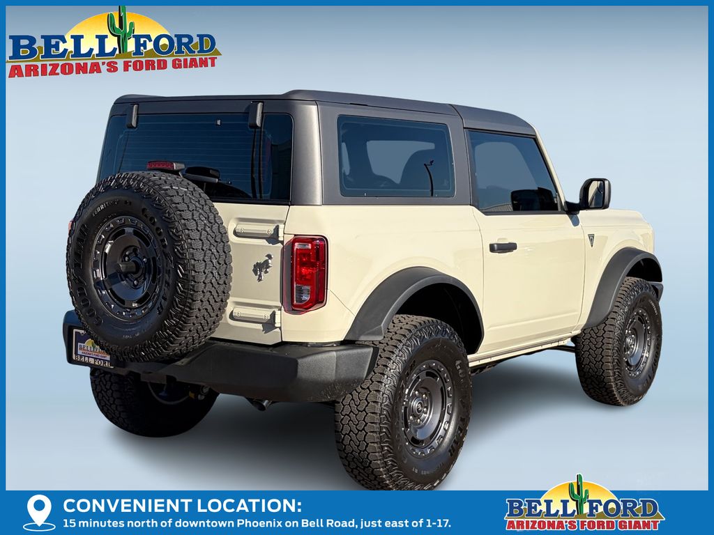This Ford Bronco is equipped with the following options: Equipment Group 101A, Sasquatch Package (High Clearance Fender Flares, High Clearance Suspension, Position-Sensitive Bilstein Shock Absorbers, and Wheels: 17" Carbonized Gray Painted Aluminum), 4-Wheel Disc Brakes, 7 Speakers, ABS brakes, Air Conditioning, AM/FM radio: SiriusXM with 360L, AM/FM Stereo, Auto High-beam Headlights, Brake assist, Cloth Bucket Seats, Compass, Convertible HardTop, Convertible roof lining, Delay-off headlights, Driver door bin, Driver vanity mirror, Dual front impact airbags, Dual front side impact airbags, Electronic Stability Control, Emergency communication system: 911 Assist, Exterior Parking Camera Rear, Front anti-roll bar, Front Bucket Seats, Front Center Armrest, Front reading lights, Front wheel independent suspension, Fully automatic headlights, Glass rear window, Heated door mirrors, Illuminated entry, Integrated roll-over protection, Low tire pressure warning, Occupant sensing airbag, Outside temperature display, Overhead airbag, Overhead console, Panic alarm, Passenger door bin, Passenger vanity mirror, Power door mirrors, Power steering, Power windows, Radio data system, Rear window defroster, Rear window wiper, Remote keyless entry, Security system, SiriusXM w/360L, Speed control, Split folding rear seat, Steering wheel mounted audio controls, SYNC 4, Tachometer, Telescoping steering wheel, Tilt steering wheel, Traction control, Trip computer, Variably intermittent wipers, and Wheels: 16" Bright Polished Silver-Painted Steel. Price includes: $1000 - Bonus Customer Cash. Exp. 01/05/2026 $1000 - Retail Bonus Cash. Exp. 01/05/2026