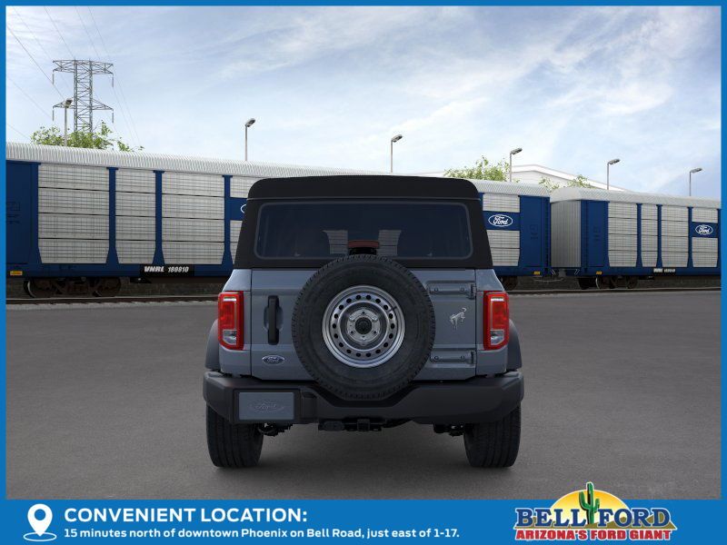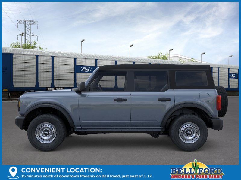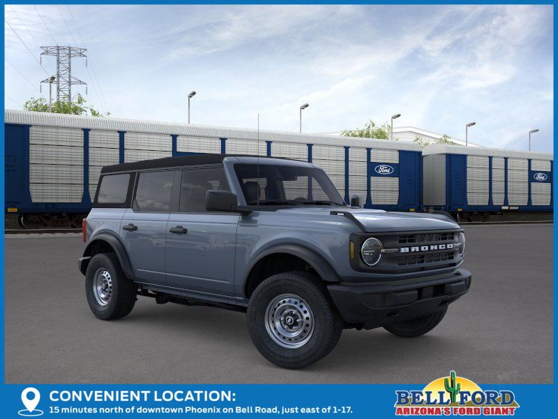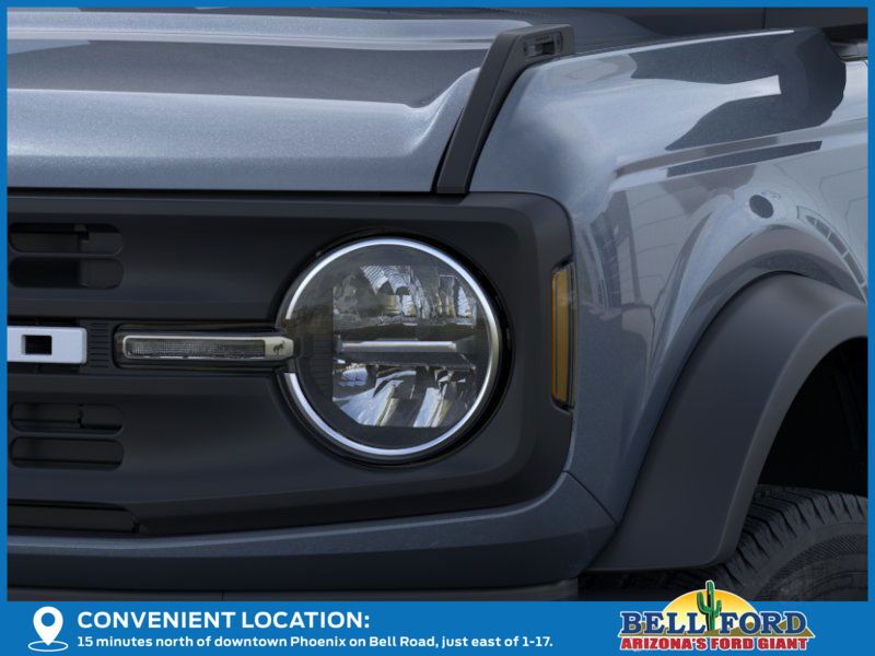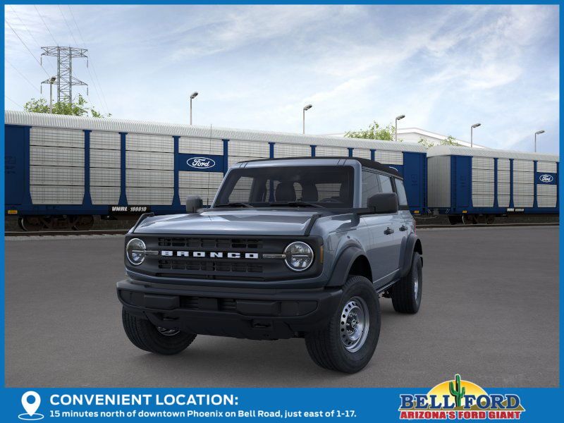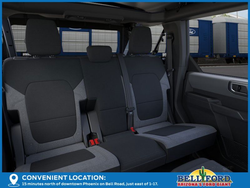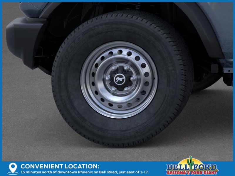 This Ford Bronco is equipped with the following options: Equipment Group 101A, 4-Wheel Disc Brakes, 4.46 Axle Ratio, 7 Speakers, ABS brakes, Air Conditioning, AM/FM radio: SiriusXM with 360L, AM/FM Stereo, Auto High-beam Headlights, Brake assist, Cloth Bucket Seats, Compass, Delay-off headlights, Driver door bin, Driver vanity mirror, Dual front impact airbags, Dual front side impact airbags, Electronic Stability Control, Emergency communication system: 911 Assist, Exterior Parking Camera Rear, First Aid Kit, Front anti-roll bar, Front Bucket Seats, Front Center Armrest, Front reading lights, Front wheel independent suspension, Fully automatic headlights, Heated door mirrors, Illuminated entry, Integrated roll-over protection, Low tire pressure warning, Occupant sensing airbag, Outside temperature display, Overhead airbag, Overhead console, Panic alarm, Passenger door bin, Passenger vanity mirror, Power door mirrors, Power steering, Power windows, Radio data system, Remote keyless entry, Security system, SiriusXM w/360L, Speed control, Split folding rear seat, Steering wheel mounted audio controls, SYNC 4, Tachometer, Telescoping steering wheel, Tilt steering wheel, Traction control, Trip computer, Variably intermittent wipers, and Wheels: 16" Bright Polished Silver-Painted Steel. Price includes: $1000 - Bonus Customer Cash. Exp. 01/05/2026 $1000 - Retail Bonus Cash. Exp. 01/05/2026
