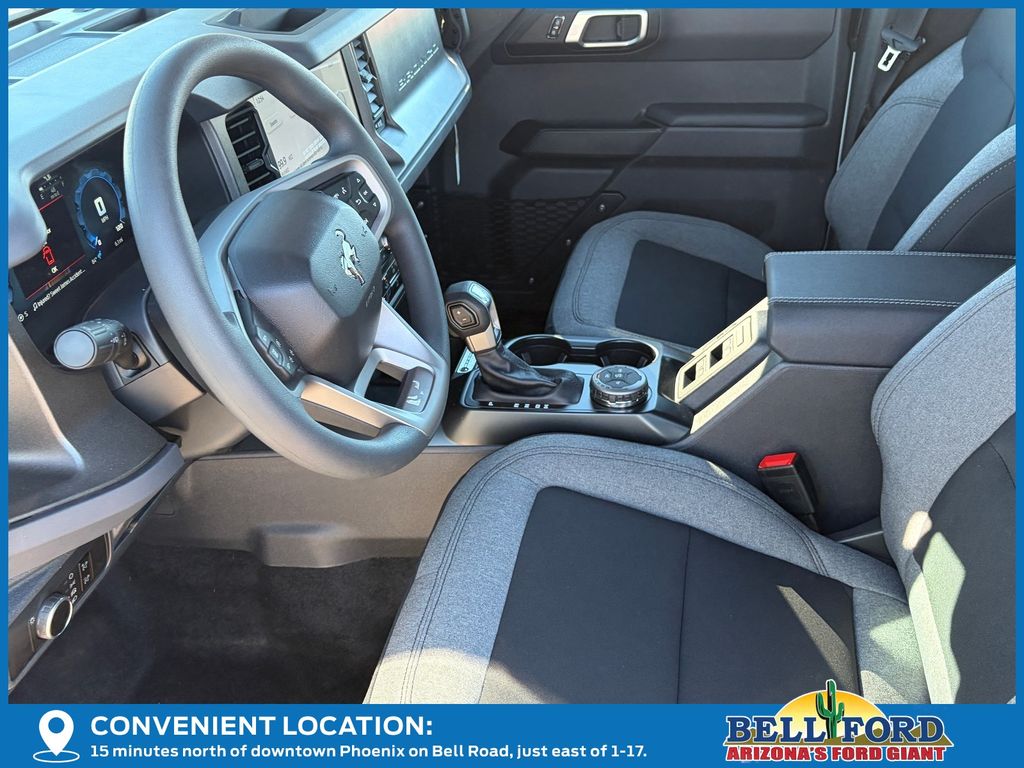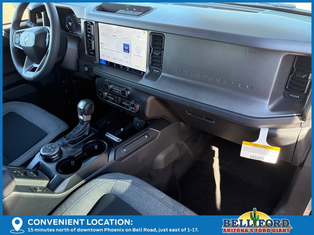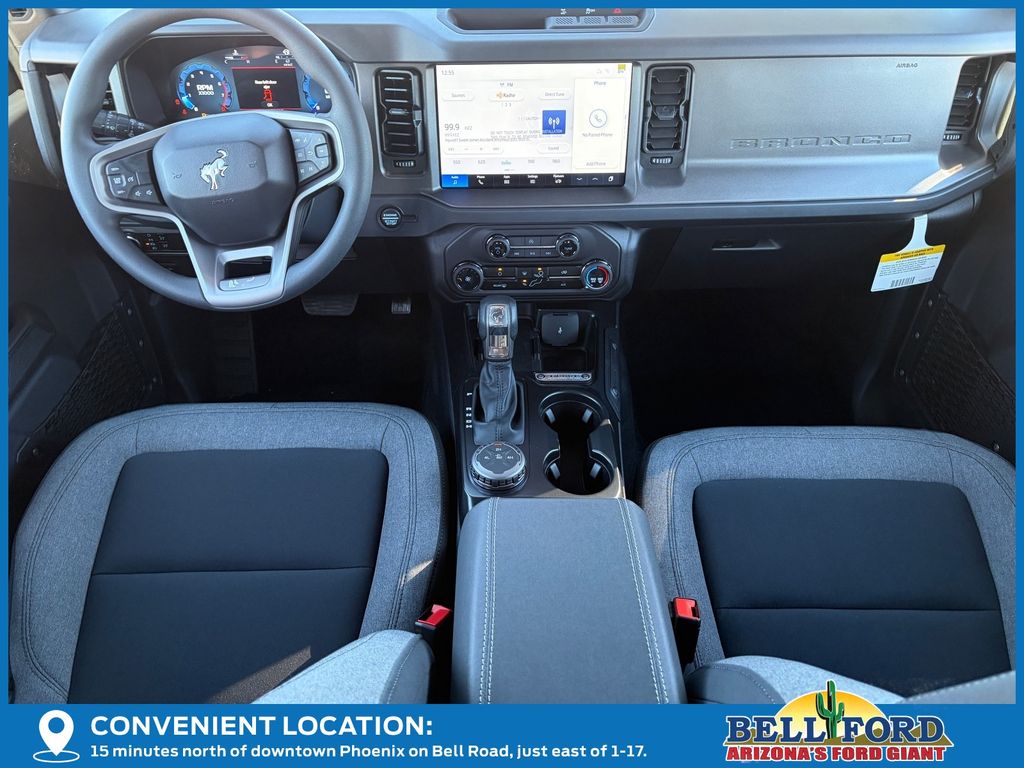 This Ford Bronco is equipped with the following options: Equipment Group 101A, 4-Wheel Disc Brakes, 4.46 Axle Ratio, 7 Speakers, ABS brakes, Air Conditioning, AM/FM radio: SiriusXM with 360L, AM/FM Stereo, Auto High-beam Headlights, Brake assist, Carbonized Gray Molded-In-Color Hard Top, Cloth Bucket Seats, Compass, Delay-off headlights, Driver door bin, Driver vanity mirror, Dual front impact airbags, Dual front side impact airbags, Electronic Stability Control, Emergency communication system: 911 Assist, Exterior Parking Camera Rear, Front anti-roll bar, Front Bucket Seats, Front Center Armrest, Front reading lights, Front wheel independent suspension, Fully automatic headlights, Hard Top Sound Deadening Headliner, Heated door mirrors, Illuminated entry, Integrated roll-over protection, Internet access capable: FordPass Connect, Low tire pressure warning, Occupant sensing airbag, Outside temperature display, Overhead airbag, Overhead console, Panic alarm, Passenger door bin, Passenger vanity mirror, Power door mirrors, Power steering, Power windows, Radio data system, Rear-Window Defroster & Washer, Remote keyless entry, Security system, SiriusXM w/360L, Speed control, Split folding rear seat, Steering wheel mounted audio controls, SYNC 4, Tachometer, Telescoping steering wheel, Tilt steering wheel, Traction control, Trip computer, Variably intermittent wipers, and Wheels: 16" Bright Polished Silver-Painted Steel. Price includes: $1000 - SUV Spike Retail Bonus Cash. Exp. 03/02/2026 $2500 - Retail Customer Cash. Exp. 03/31/2026