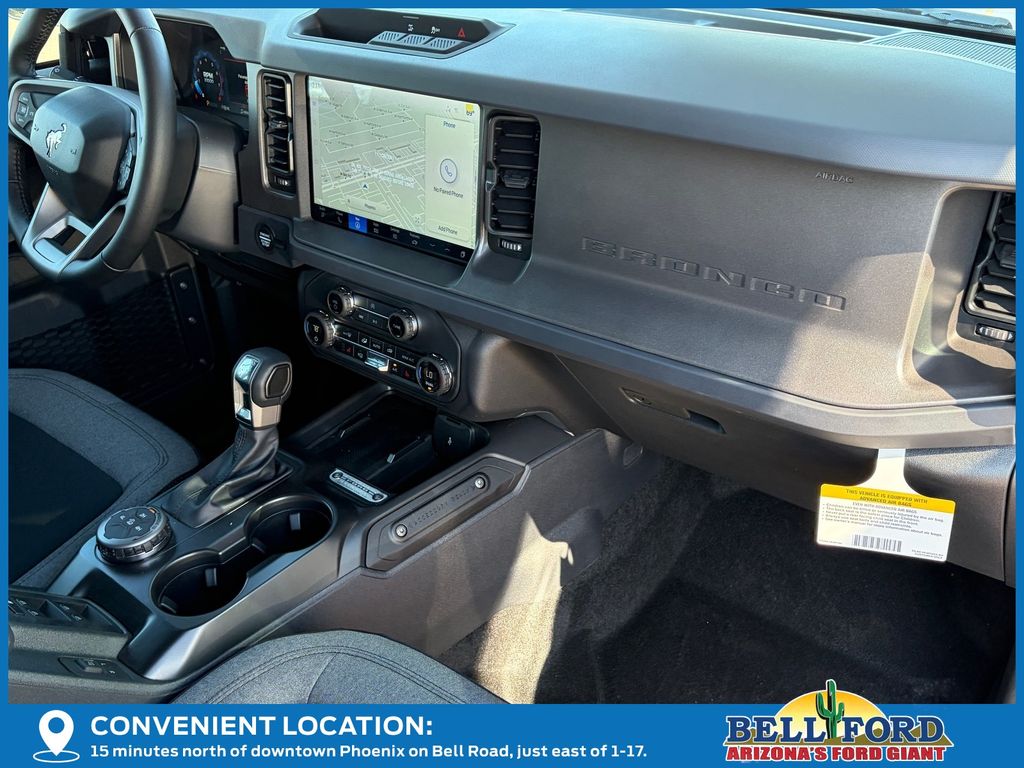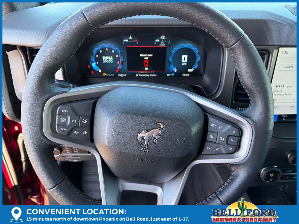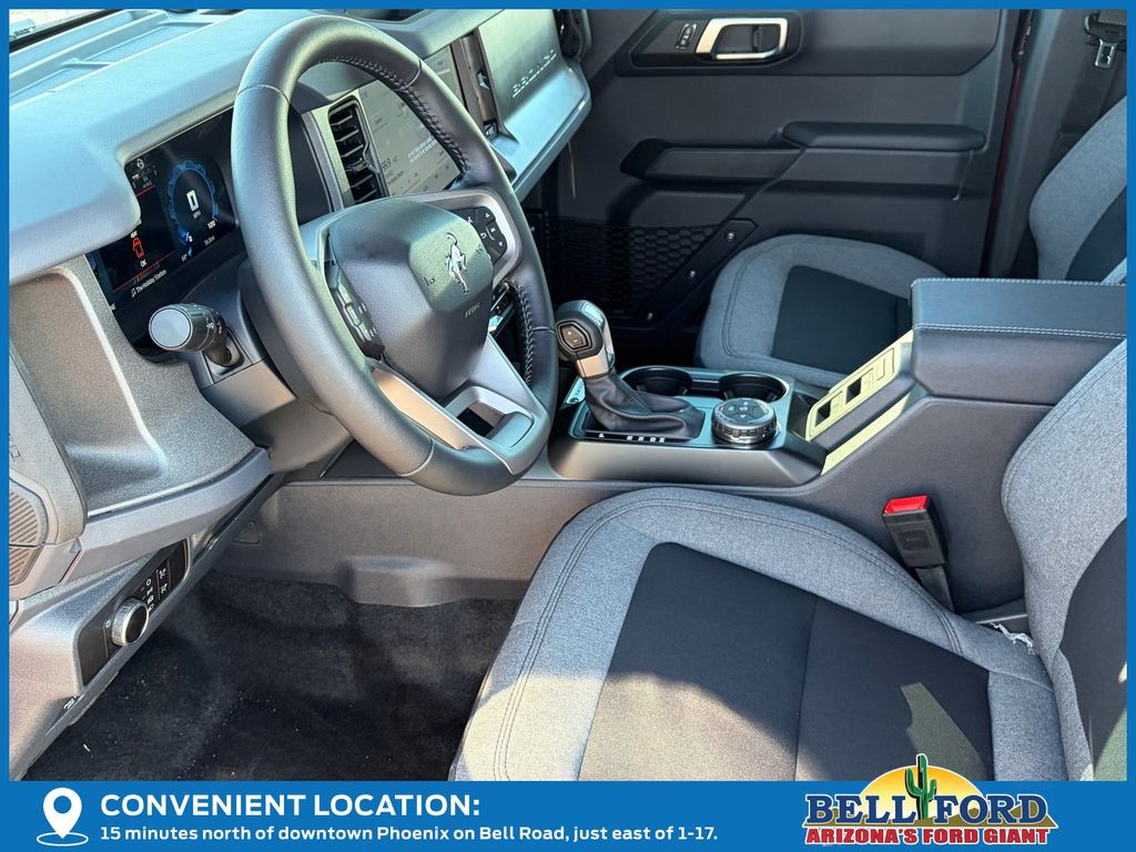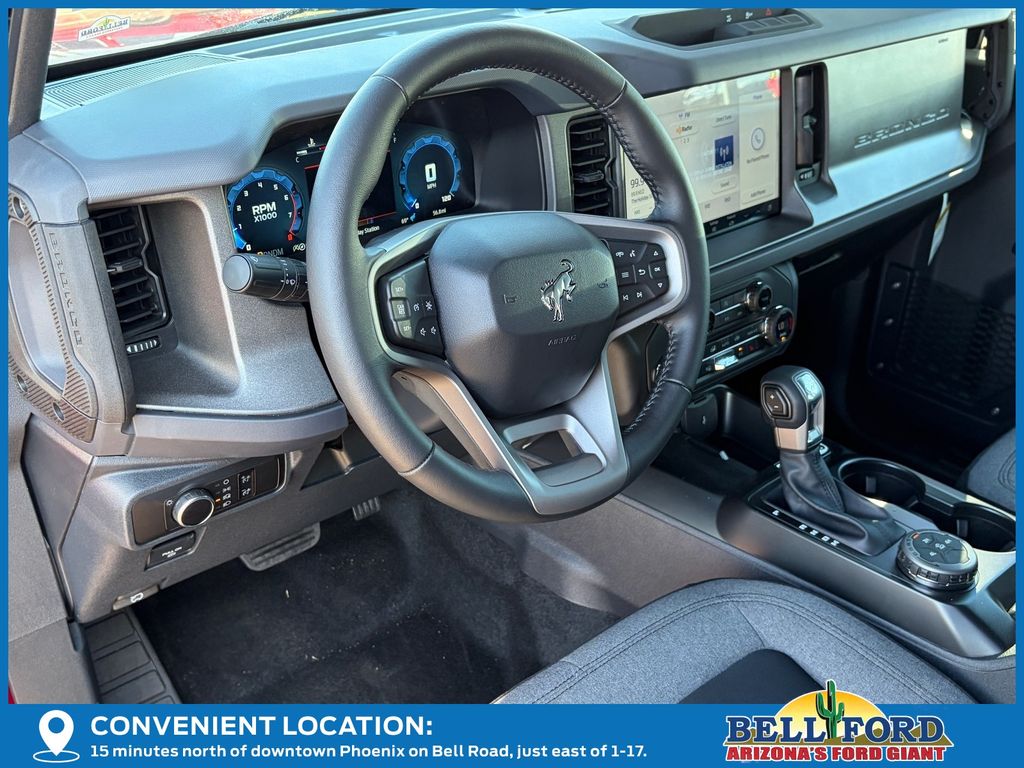 This Ford Bronco is equipped with the following options: Equipment Group 222A Mid Package (2-Door Intelligent Access w/Lock/Unlock, Ambient Footwell Lighting, Connected Navigation, Dr & Pass Illuminated Sliding Visor Vanity Mirrors, Dual Smart Charging USB Ports, Dual-Zone Electronic Automatic Temperature Control, Front Row Heated Seats, Power Outlet - Back Side of Center Floor Console, and Rear Parking Sensors), 4-Wheel Disc Brakes, 4.46 Axle Ratio, 7 Speakers, ABS brakes, Air Conditioning, Alloy wheels, AM/FM radio: SiriusXM with 360L, AM/FM Stereo, Auto High-Beam Headlamps, Auto High-beam Headlights, BLIS Blind Spot Information System, Brake assist, Cloth Bucket Seats, Compass, Delay-off headlights, Driver door bin, Driver vanity mirror, Dual front impact airbags, Dual front side impact airbags, Electronic Stability Control, Emergency communication system: 911 Assist, Exterior Parking Camera Rear, Front anti-roll bar, Front Bucket Seats, Front Center Armrest, Front reading lights, Front wheel independent suspension, Fully automatic headlights, Heated door mirrors, Illuminated entry, Integrated roll-over protection, Lane-Keeping System, Leather Shift Knob, Low tire pressure warning, Occupant sensing airbag, Outside temperature display, Overhead airbag, Overhead console, Panic alarm, Passenger door bin, Passenger vanity mirror, Power door mirrors, Power steering, Power windows, Pre-Collision Assist w/Automatic Emergency Braking, Radio data system, Rear-View Camera, Remote keyless entry, Security system, SiriusXM w/360L, Speed control, Split folding rear seat, Steering wheel mounted audio controls, SYNC 4, Tachometer, Telescoping steering wheel, Tilt steering wheel, Traction control, Trip computer, Variably intermittent wipers, and Wheels: 17" Carbonized Gray-Painted Aluminum. Price includes: $1000 - Bonus Customer Cash. Exp. 01/05/2026 $1000 - Retail Bonus Cash. Exp. 01/05/2026