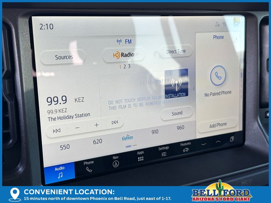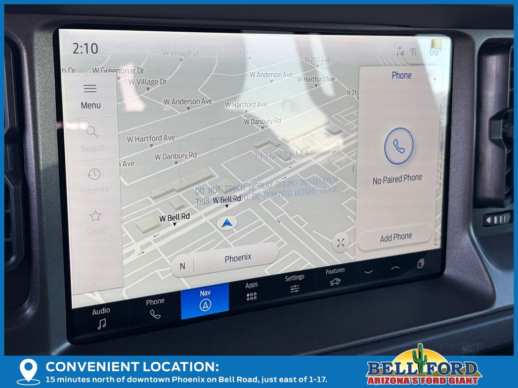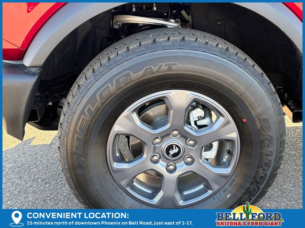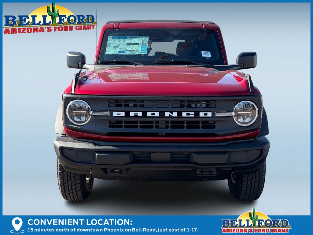 This Ford Bronco is equipped with the following options: Equipment Group 222A Mid Package (2-Door Intelligent Access w/Lock/Unlock, Ambient Footwell Lighting, Connected Navigation, Dr & Pass Illuminated Sliding Visor Vanity Mirrors, Dual Smart Charging USB Ports, Dual-Zone Electronic Automatic Temperature Control, Front Row Heated Seats, Power Outlet - Back Side of Center Floor Console, and Rear Parking Sensors), 4-Wheel Disc Brakes, 4.46 Axle Ratio, 7 Speakers, ABS brakes, Air Conditioning, Alloy wheels, AM/FM radio: SiriusXM with 360L, AM/FM Stereo, Auto High-Beam Headlamps, Auto High-beam Headlights, BLIS Blind Spot Information System, Brake assist, Cloth Bucket Seats, Compass, Delay-off headlights, Driver door bin, Driver vanity mirror, Dual front impact airbags, Dual front side impact airbags, Electronic Stability Control, Emergency communication system: 911 Assist, Exterior Parking Camera Rear, Front anti-roll bar, Front Bucket Seats, Front Center Armrest, Front reading lights, Front wheel independent suspension, Fully automatic headlights, Heated door mirrors, Illuminated entry, Integrated roll-over protection, Lane-Keeping System, Leather Shift Knob, Low tire pressure warning, Occupant sensing airbag, Outside temperature display, Overhead airbag, Overhead console, Panic alarm, Passenger door bin, Passenger vanity mirror, Power door mirrors, Power steering, Power windows, Pre-Collision Assist w/Automatic Emergency Braking, Radio data system, Rear-View Camera, Remote keyless entry, Security system, SiriusXM w/360L, Speed control, Split folding rear seat, Steering wheel mounted audio controls, SYNC 4, Tachometer, Telescoping steering wheel, Tilt steering wheel, Traction control, Trip computer, Variably intermittent wipers, and Wheels: 17" Carbonized Gray-Painted Aluminum. Price includes: $1000 - Bonus Customer Cash. Exp. 01/05/2026 $1000 - Retail Bonus Cash. Exp. 01/05/2026
