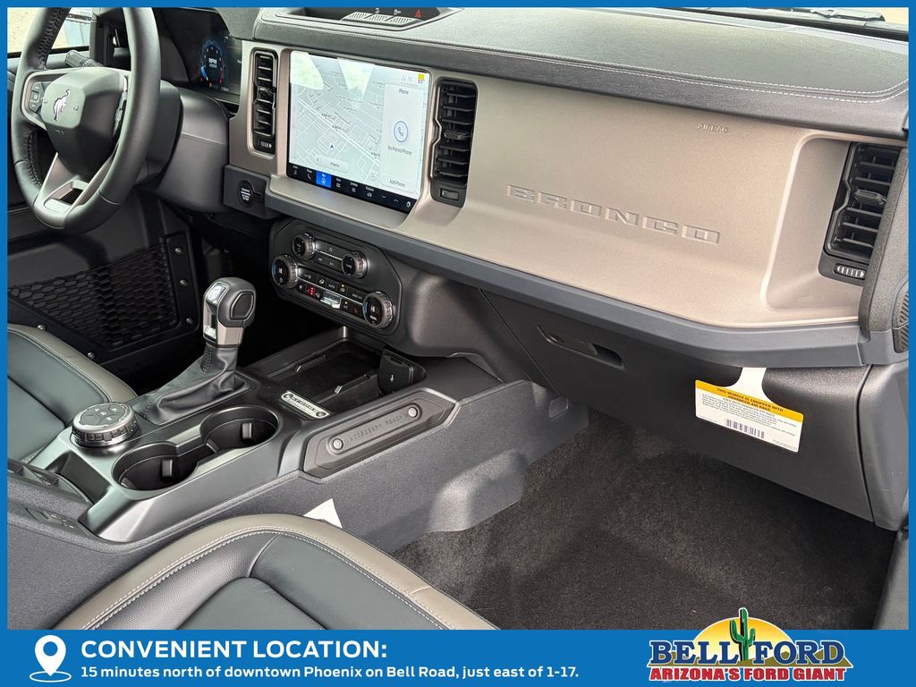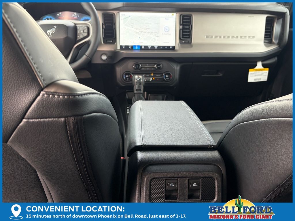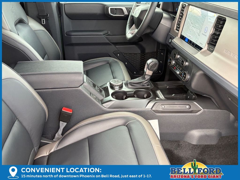 This Ford Bronco is equipped with the following options: Equipment Group 312A Mid Package, 18" Bright Machined Aluminum Wheels, 3.73 Axle Ratio, 4-Wheel Disc Brakes, 7 Speakers, ABS brakes, Air Conditioning, Alloy wheels, AM/FM radio: SiriusXM with 360L, AM/FM Stereo, Auto High-beam Headlights, Auto-dimming Rear-View mirror, Automatic temperature control, Brake assist, Carbonized Gray Molded-In-Color Hard Top, Compass, Connected Navigation, Delay-off headlights, Driver door bin, Driver vanity mirror, Dual front impact airbags, Dual front side impact airbags, Electronic Stability Control, Emergency communication system: 911 Assist, Exterior Parking Camera Rear, First Aid Kit, Front anti-roll bar, Front Bucket Seats, Front Center Armrest, Front dual zone A/C, Front fog lights, Front reading lights, Front wheel independent suspension, Fully automatic headlights, Hard Top Sound Deadening Headliner, Heated door mirrors, Heated front seats, Heated Leather-Trimmed/Vinyl Bucket Seats, Heated steering wheel, Illuminated entry, Integrated roll-over protection, Leather Shift Knob, Low tire pressure warning, Navigation system: Connected Navigation, Occupant sensing airbag, Outside temperature display, Overhead airbag, Overhead console, Panic alarm, Passenger door bin, Passenger vanity mirror, Power door mirrors, Power driver seat, Power passenger seat, Power steering, Power windows, Radio data system, Rear seat center armrest, Rear-Window Defroster & Washer, Remote keyless entry, Security system, SiriusXM w/360L, Speed control, Split folding rear seat, Steering wheel mounted audio controls, SYNC 4, Tachometer, Telescoping steering wheel, Tilt steering wheel, Traction control, Trip computer, Variably intermittent wipers, and Voltmeter. Price includes: $1000 - Bonus Customer Cash. Exp. 01/05/2026 $1000 - Retail Bonus Cash. Exp. 01/05/2026