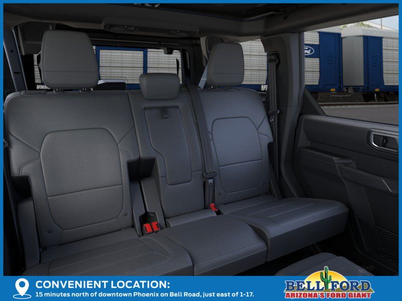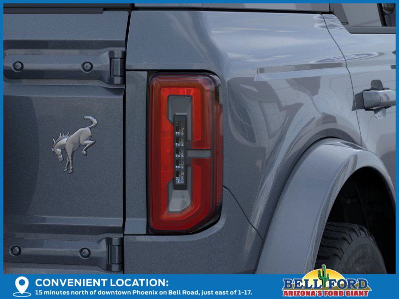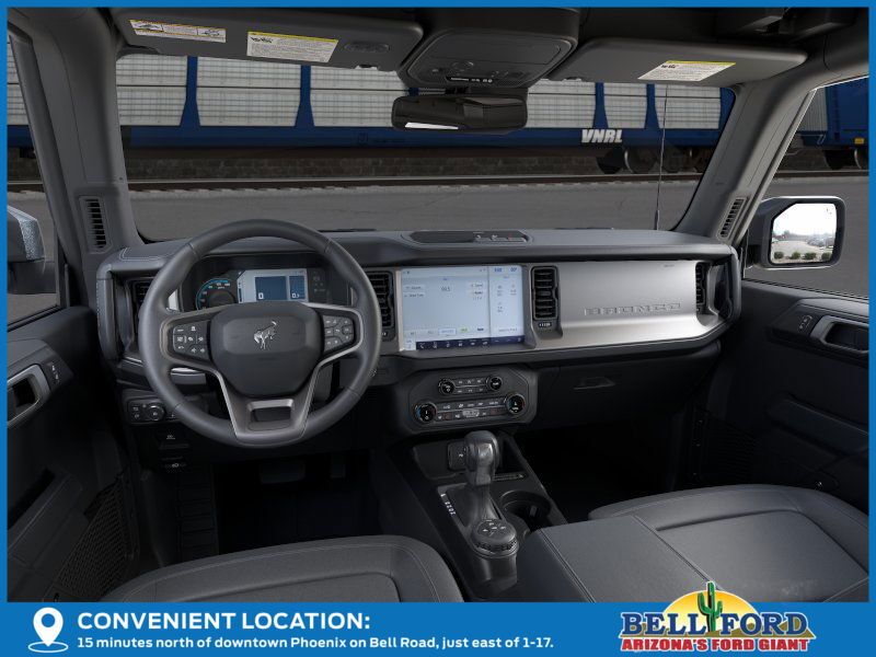 This Ford Bronco is equipped with the following options: Equipment Group 314A Lux Package (360-Degree Camera, Adaptive Cruise Control, Evasive Steering Assist, Front Parking Sensors, Information on Demand Panel, Radio: B&O Sound System by Bang & Olufsen, Sideview Mirrors, and Universal Garage Door Opener), 18" Bright Machined Aluminum Wheels, 3.73 Axle Ratio, 4-Wheel Disc Brakes, 7 Speakers, ABS brakes, Air Conditioning, Alloy wheels, AM/FM radio: SiriusXM with 360L, AM/FM Stereo, Auto High-beam Headlights, Auto-dimming Rear-View mirror, Automatic temperature control, Brake assist, Compass, Connected Navigation, Delay-off headlights, Driver door bin, Driver vanity mirror, Dual front impact airbags, Dual front side impact airbags, Electronic Stability Control, Emergency communication system: 911 Assist, Exterior Parking Camera Rear, Front anti-roll bar, Front Bucket Seats, Front Center Armrest, Front dual zone A/C, Front fog lights, Front reading lights, Front wheel independent suspension, Fully automatic headlights, Hard Top Sound Deadening Headliner, Heated door mirrors, Heated front seats, Heated Leather-Trimmed/Vinyl Bucket Seats, Heated steering wheel, Illuminated entry, Integrated roll-over protection, Leather Shift Knob, Low tire pressure warning, Navigation system: Connected Navigation, Occupant sensing airbag, Outside temperature display, Overhead airbag, Overhead console, Painted Hard Top, Panic alarm, Passenger door bin, Passenger vanity mirror, Power door mirrors, Power driver seat, Power passenger seat, Power steering, Power windows, Radio data system, Rear seat center armrest, Rear-Window Defroster & Washer, Remote keyless entry, Security system, SiriusXM w/360L, Speed control, Split folding rear seat, Steering wheel mounted audio controls, SYNC 4, Tachometer, Telescoping steering wheel, Tilt steering wheel, Traction control, Trip computer, Variably intermittent wipers, and Voltmeter. Price includes: $1000 - Bonus Customer Cash. Exp. 01/05/2026 $1000 - Retail Bonus Cash. Exp. 01/05/2026