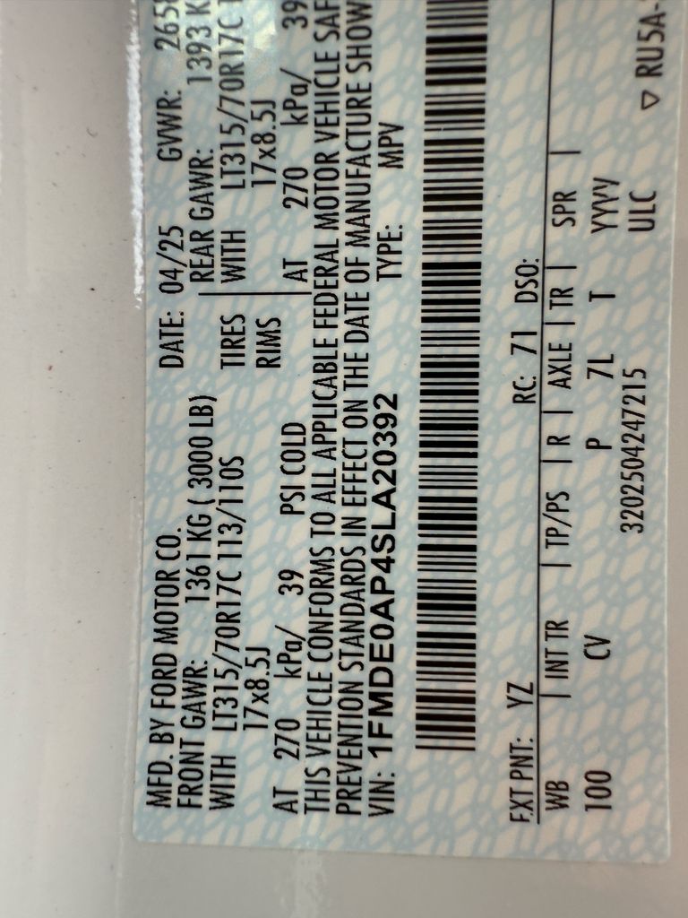 - VIN : 1FMDE0AP4SLA20392