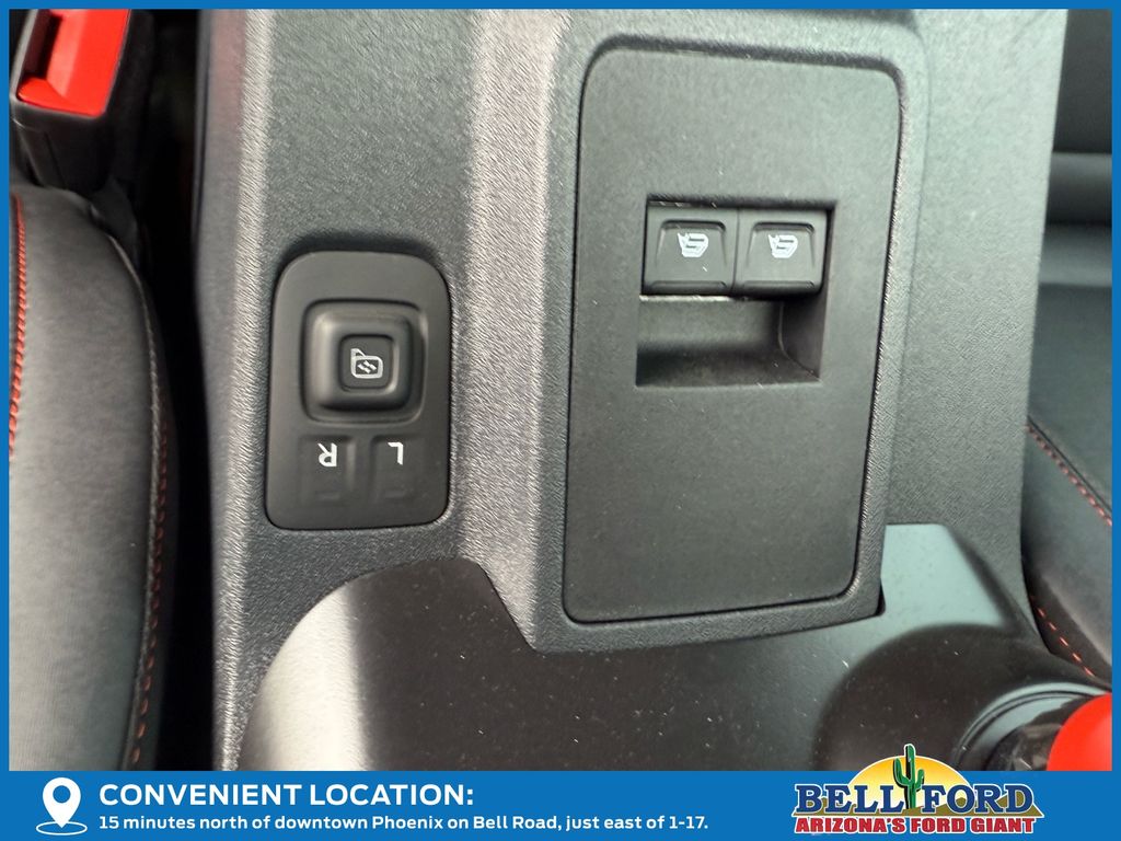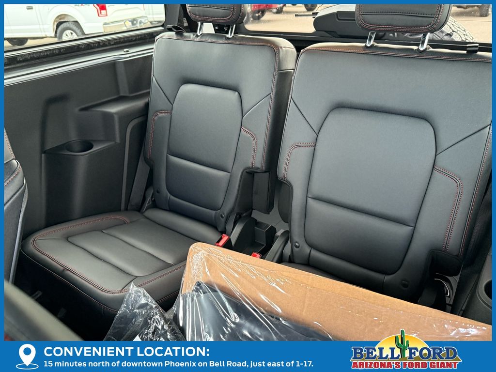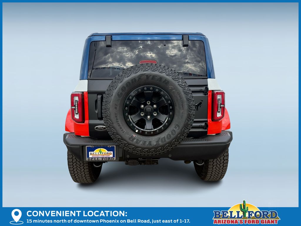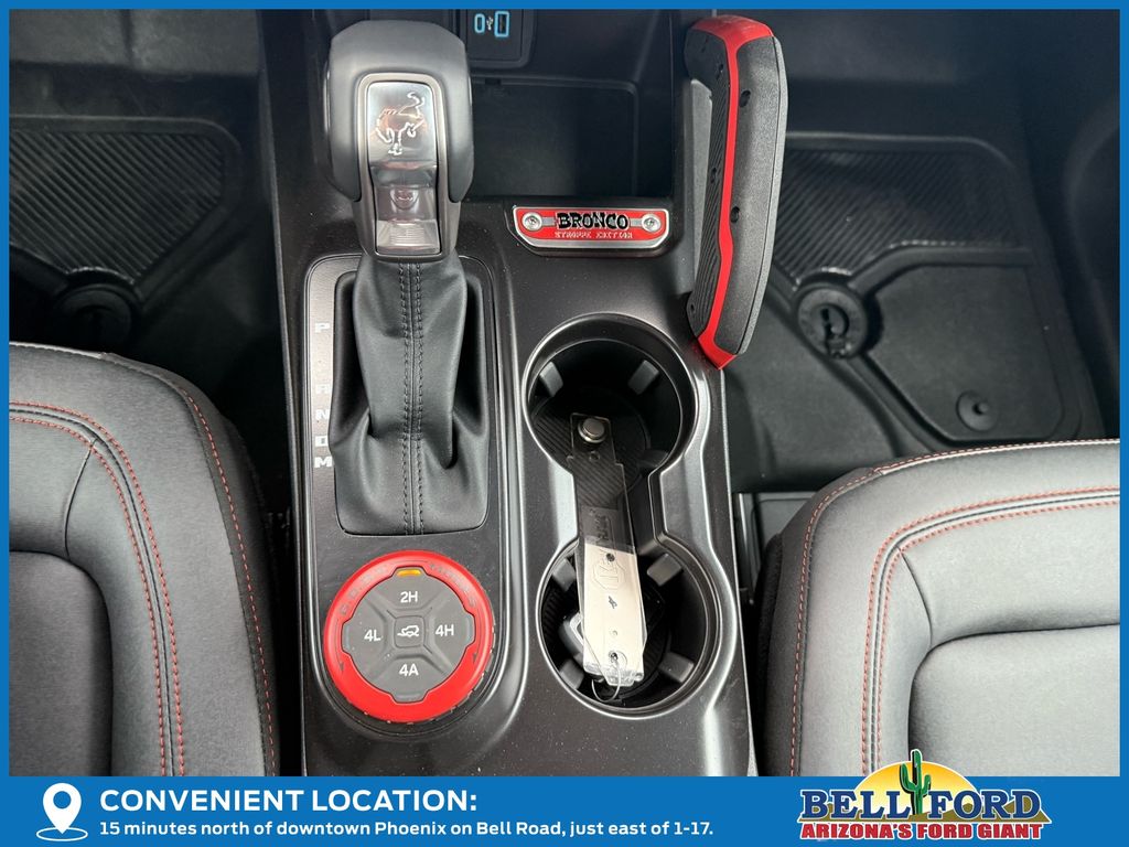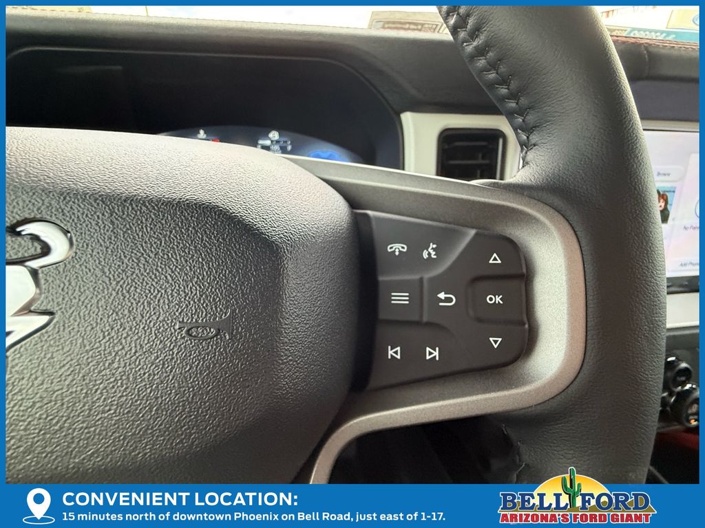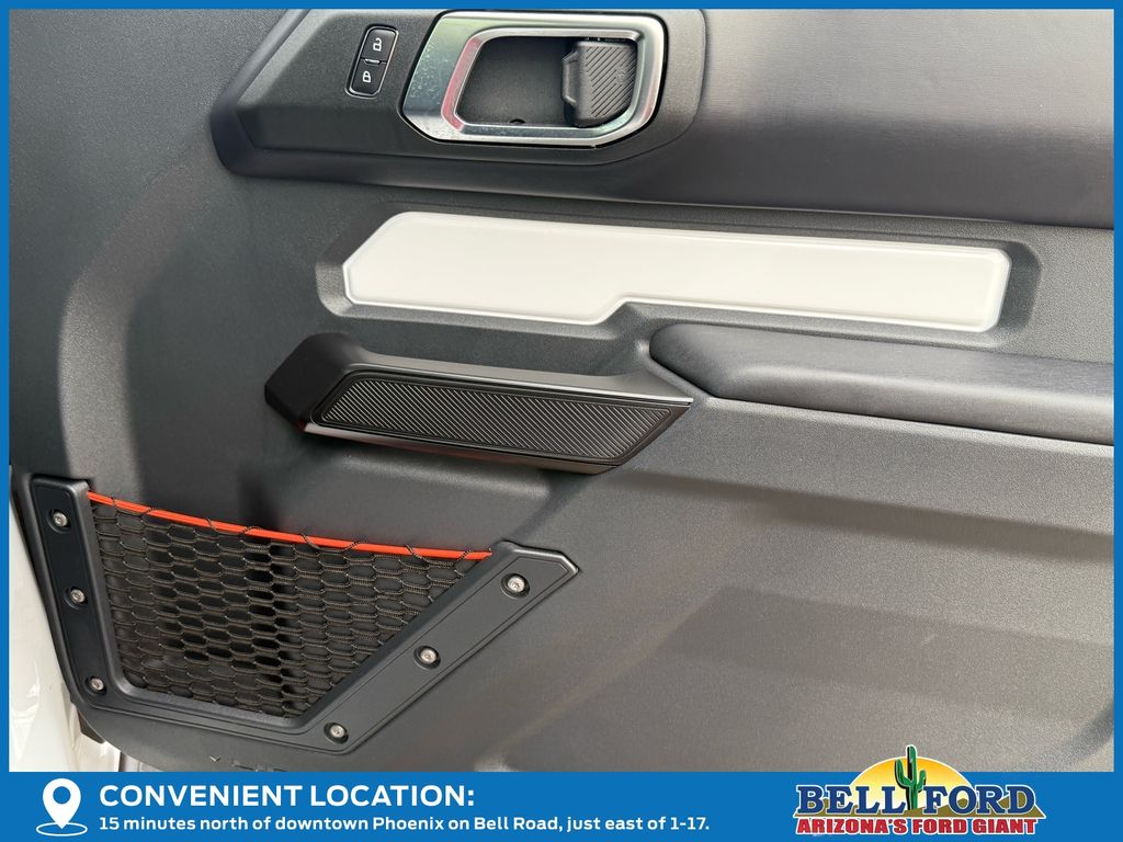 This Ford Bronco is equipped with the following options: ABS brakes, Active Cruise Control, Alloy wheels, Compass, Electronic Stability Control, Front dual zone A/C, Heated door mirrors, Heated front seats, Illuminated entry, Low tire pressure warning, Navigation System, Remote keyless entry, Traction control, 12 Speakers, 4-Wheel Disc Brakes, Air Conditioning, AM/FM radio: SiriusXM with 360L, Auto High-beam Headlights, Auto-dimming Rear-View mirror, Automatic temperature control, Brake assist, Connected Navigation, Convertible HardTop, Convertible roof lining, Delay-off headlights, Driver door bin, Driver vanity mirror, Dual front impact airbags, Dual front side impact airbags, Emergency communication system: 911 Assist, Exterior Parking Camera Rear, Front anti-roll bar, Front Bucket Seats, Front Center Armrest, Front reading lights, Front wheel independent suspension, Fully automatic headlights, Garage door transmitter, Glass rear window, Heated steering wheel, Integrated roll-over protection, Leather Shift Knob, Navigation system: Connected Navigation, Occupant sensing airbag, Outside temperature display, Overhead airbag, Overhead console, Panic alarm, Passenger door bin, Passenger vanity mirror, Power door mirrors, Power steering, Power windows, Radio data system, Radio: B&O Sound System by Bang & Olufsen, Rear anti-roll bar, Rear window defroster, Rear window wiper, Security system, SiriusXM w/360L, Speed control, Split folding rear seat, Steering wheel mounted audio controls, SYNC 4, Tachometer, Telescoping steering wheel, Tilt steering wheel, Trip computer, Turn signal indicator mirrors, Unique Vinyl Bucket Seats, Variably intermittent wipers, Voltmeter, and Wheels: 17" Unique Matte Black-Painted Alloy. Price includes: $5000 - Bonus Customer Cash. Exp. 04/30/2026