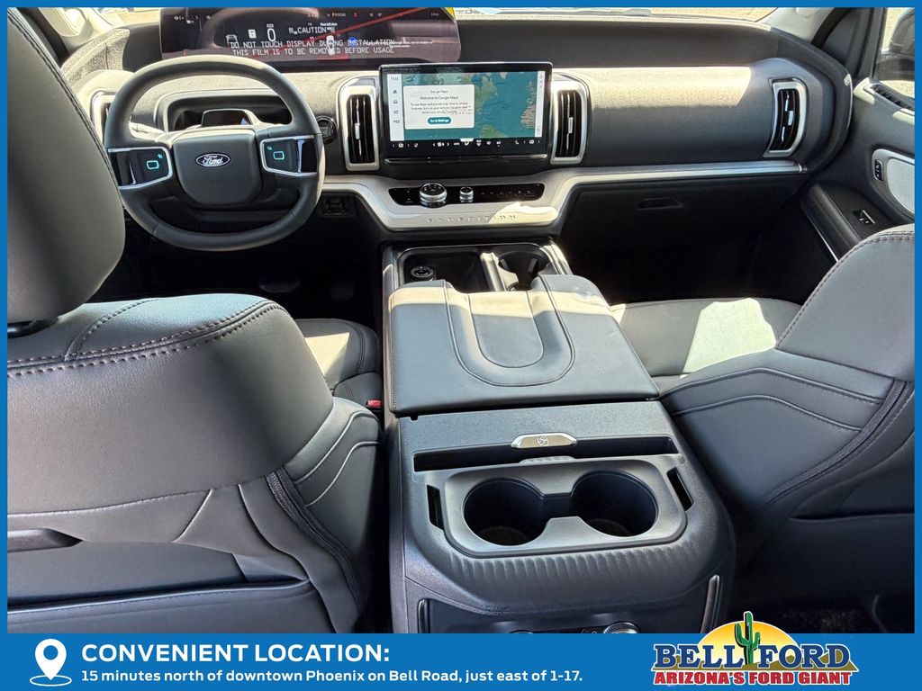 This Ford Expedition Max is equipped with the following options: Equipment Group 202A High Package (110V/400W AC Power Outlet, 26mm Engine Radiator, 2nd Row Power-Folding Captain's Chairs, 360-Degree Zone Lighting, 3rd Row Flexible Seating, 3rd Row Vinyl Seats, 4-Door Intelligent Access (Lock/Unlock), ActiveX Front Heated Captain's Chairs, BlueCruise Equipped, Flex Powered Console, Ford Split Gate, Front Side Laminated Glass, Heated Steering Wheel, Heavy-Duty Trailer Tow, Integrated Trailer Brake Control, Memory Driver Seat, Power Panoramic Vista Roof w/Power Sunshade, Power Tilt/Telescopic Steering Wheel w/Memory, Power-Folding Sideview Mirrors w/Autofold, Rain Sensing Wipers, SecuriCode Keyless Entry Keypad, Universal Garage Door Opener, USB Ports, Wheels: 20" Carbonized Gray Bright Machined Aluminum, and Wireless Charging Pad), 3.73 Axle Ratio, 3rd row seats: split-bench, 4-Wheel Disc Brakes, 6 Speakers, ABS brakes, Air Conditioning, Alloy wheels, AM/FM radio: SiriusXM with 360L, Apple CarPlay/Android Auto, Auto High-beam Headlights, Auto-dimming Rear-View mirror, Automatic temperature control, Brake assist, Bumpers: body-color, Cloth Front Captain's Chairs, Compass, Delay-off headlights, Driver door bin, Driver State Detection, Driver vanity mirror, Dual front impact airbags, Dual front side impact airbags, Electronic Stability Control, Emergency communication system: 911 Assist, Exterior Parking Camera Rear, Four wheel independent suspension, Front anti-roll bar, Front Bucket Seats, Front Center Armrest, Front dual zone A/C, Front reading lights, Fully automatic headlights, Heated door mirrors, Illuminated entry, Intersection Assist, Low tire pressure warning, Navigation System, Occupant sensing airbag, Outside temperature display, Overhead airbag, Overhead console, Panic alarm, Passenger door bin, Passenger vanity mirror, Power door mirrors, Power driver seat, Power passenger seat, Power steering, Power windows, Radio data system, Radio: AM/FM Stereo w/MP3 Capable, Rear air conditioning, Rear anti-roll bar, Rear reading lights, Rear window defroster, Rear window wiper, Reclining 3rd row seat, Remote keyless entry, Security system, SiriusXM w/360L, Speed control, Speed-sensing steering, Speed-Sensitive Wipers, Split folding rear seat, Spoiler, Steering wheel mounted audio controls, Tachometer, Telescoping steering wheel, Tilt steering wheel, Traction control, Trip computer, Variably intermittent wipers, Voltmeter, and Wheels: 18" Dark Alloy Painted Aluminum.