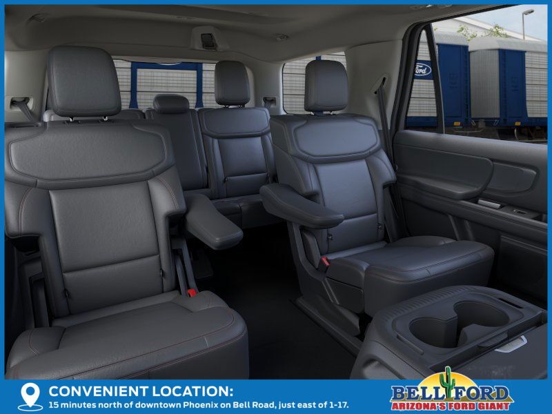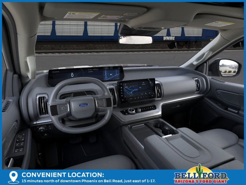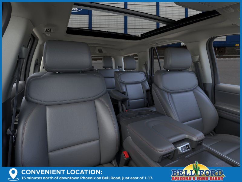 This Ford Expedition is equipped with the following options: Equipment Group 202A High Package (110V/400W AC Power Outlet, 26mm Engine Radiator, 2nd Row Power-Folding Captain's Chairs, 360-Degree Zone Lighting, 3rd Row Flexible Seating, 3rd Row Vinyl Seats, 4-Door Intelligent Access (Lock/Unlock), ActiveX Front Heated Captain's Chairs, BlueCruise Equipped, Flex Powered Console, Ford Split Gate, Front Side Laminated Glass, Heated Steering Wheel, Heavy-Duty Trailer Tow, Integrated Trailer Brake Control, Memory Driver Seat, Power Panoramic Vista Roof w/Power Sunshade, Power Tilt/Telescopic Steering Wheel w/Memory, Power-Folding Sideview Mirrors w/Autofold, Rain Sensing Wipers, SecuriCode Keyless Entry Pad, Universal Garage Door Opener, USB Ports, Wheels: 20" Carbonized Gray Bright Machined Aluminum, and Wireless Charging Pad), 4WD, 3.73 Axle Ratio, 3rd row seats: split-bench, 4-Wheel Disc Brakes, 6 Speakers, ABS brakes, Air Conditioning, Alloy wheels, AM/FM radio: SiriusXM with 360L, Apple CarPlay/Android Auto, Auto High-beam Headlights, Auto-dimming Rear-View mirror, Automatic temperature control, Brake assist, Bumpers: body-color, Cloth Front Captain's Chairs, Compass, Delay-off headlights, Driver door bin, Driver State Detection, Driver vanity mirror, Dual front impact airbags, Dual front side impact airbags, Electronic Stability Control, Emergency communication system: 911 Assist, Exterior Parking Camera Rear, Four wheel independent suspension, Front anti-roll bar, Front Bucket Seats, Front Center Armrest, Front dual zone A/C, Front reading lights, Fully automatic headlights, Heated door mirrors, Illuminated entry, Intersection Assist, Low tire pressure warning, Navigation System, Occupant sensing airbag, Outside temperature display, Overhead airbag, Overhead console, Panic alarm, Passenger door bin, Passenger vanity mirror, Power door mirrors, Power driver seat, Power passenger seat, Power steering, Power windows, Radio data system, Radio: AM/FM Stereo w/MP3 Capable, Rear air conditioning, Rear anti-roll bar, Rear reading lights, Rear window defroster, Rear window wiper, Reclining 3rd row seat, Remote keyless entry, Security system, SiriusXM w/360L, Speed control, Speed-sensing steering, Speed-Sensitive Wipers, Split folding rear seat, Spoiler, Steering wheel mounted audio controls, Tachometer, Telescoping steering wheel, Tilt steering wheel, Traction control, Trip computer, Variably intermittent wipers, Voltmeter, and Wheels: 18" Dark Alloy Painted Aluminum.
