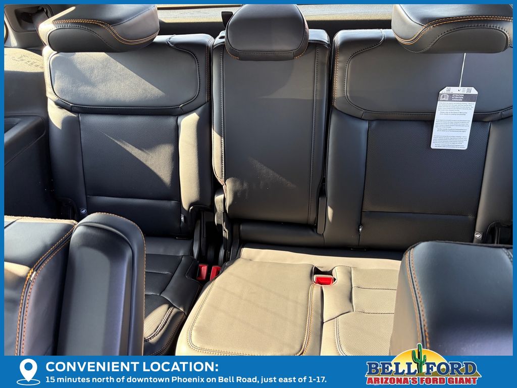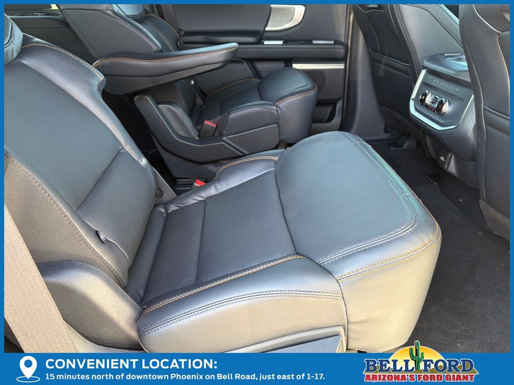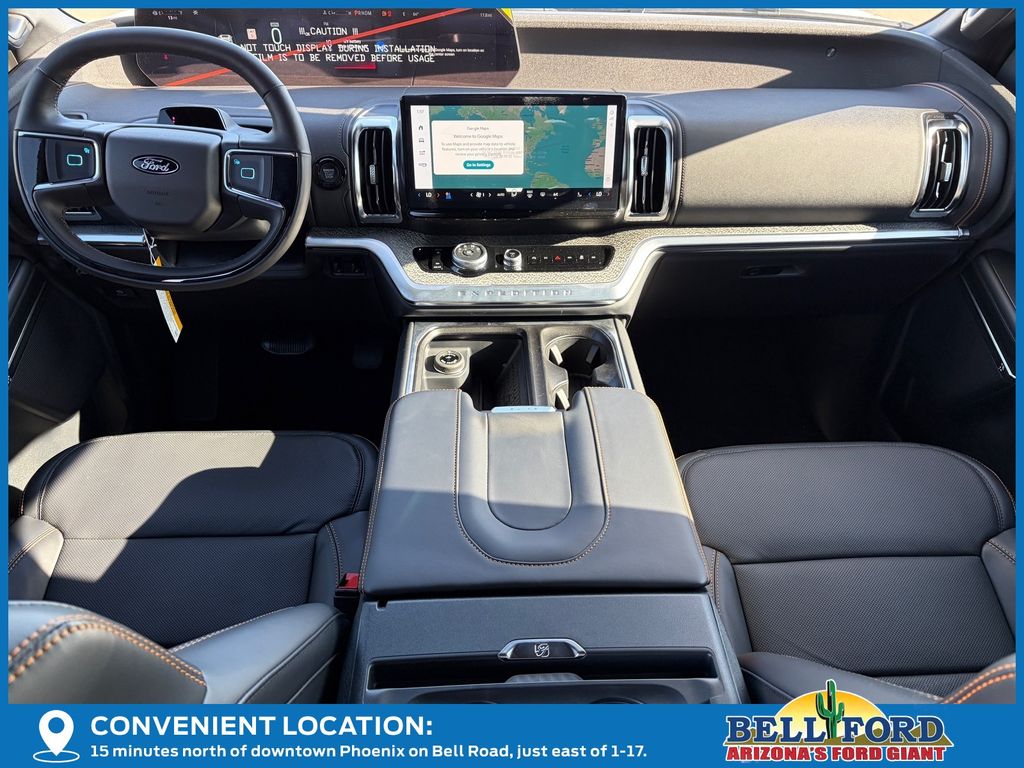 This Ford Expedition is equipped with the following options: Equipment Group 501A High Package (2nd Row Power-Folding Captain's Chairs), 4WD, 10 Speakers, 3.73 Axle Ratio, 3rd row seats: split-bench, 4-Wheel Disc Brakes, ABS brakes, Adjustable pedals, Air Conditioning, Alloy wheels, AM/FM radio: SiriusXM with 360L, Apple CarPlay/Android Auto, Auto High-beam Headlights, Auto-dimming door mirrors, Auto-dimming Rear-View mirror, Automatic temperature control, Brake assist, Bumpers: body-color, Compass, Delay-off headlights, Driver door bin, Driver vanity mirror, Dual front impact airbags, Dual front side impact airbags, Electronic Stability Control, Emergency communication system: 911 Assist, Exterior Parking Camera Rear, Four wheel independent suspension, Front anti-roll bar, Front Bucket Seats, Front Center Armrest, Front dual zone A/C, Front fog lights, Front reading lights, Fully automatic headlights, Garage door transmitter, Heated & Ventilated Leather Front Captain's Chairs, Heated door mirrors, Heated front seats, Heated steering wheel, Illuminated entry, Leather steering wheel, Low tire pressure warning, Memory seat, Navigation System, Occupant sensing airbag, Outside temperature display, Overhead airbag, Overhead console, Panic alarm, Passenger door bin, Passenger vanity mirror, Pedal memory, Power door mirrors, Power driver seat, Power moonroof: Vista Roof, Power passenger seat, Power steering, Power windows, Radio data system, Radio: B&O Sound System by Bang & Olufsen, Rear air conditioning, Rear anti-roll bar, Rear reading lights, Rear window defroster, Rear window wiper, Reclining 3rd row seat, Remote keyless entry, Security system, SiriusXM w/360L, Speed control, Speed-sensing steering, Speed-Sensitive Wipers, Split folding rear seat, Spoiler, Steering wheel memory, Steering wheel mounted audio controls, Tachometer, Telescoping steering wheel, Tilt steering wheel, Traction control, Trip computer, Turn signal indicator mirrors, Variably intermittent wipers, Ventilated front seats, Voltmeter, and Wheels: 18" Dark Carbonized Gray Painted Aluminum.