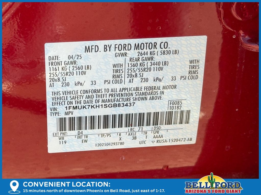 This Ford Explorer is equipped with the following options: Equipment Group 300A Standard Package, 10 Speakers, 3.58 Non-Limited Slip Rear Axle, 3rd row seats: bench, 4-Wheel Disc Brakes, ABS brakes, Air Conditioning, Alloy wheels, AM/FM radio: SiriusXM with 360L, Apple CarPlay/Android Auto, Auto High-beam Headlights, Automatic temperature control, Brake assist, Bumpers: body-color, Compass, Delay-off headlights, Driver door bin, Driver vanity mirror, Dual front impact airbags, Dual front side impact airbags, Electronic Stability Control, Emergency communication system: 911 Assist, Exterior Parking Camera Rear, Four wheel independent suspension, Front anti-roll bar, Front Bucket Seats, Front Center Armrest, Front dual zone A/C, Front fog lights, Front reading lights, Fully automatic headlights, Garage door transmitter, Heated door mirrors, Heated front seats, Heated steering wheel, Heated Unique Cloth Captain's Chairs, Illuminated entry, Knee airbag, Leather steering wheel, Low tire pressure warning, Navigation System, Occupant sensing airbag, Outside temperature display, Overhead airbag, Overhead console, Panic alarm, Passenger door bin, Passenger vanity mirror, Power door mirrors, Power driver seat, Power Liftgate, Power passenger seat, Power steering, Power windows, Radio: B&O Sound System by Bang & Olufsen, Rear air conditioning, Rear anti-roll bar, Rear reading lights, Rear window defroster, Rear window wiper, Remote keyless entry, Security system, Speed control, Speed-sensing steering, Speed-Sensitive Wipers, Split folding rear seat, Spoiler, Steering wheel mounted audio controls, Tachometer, Telescoping steering wheel, Tilt steering wheel, Traction control, Trip computer, Variably intermittent wipers, and Wheels: 20" Ebony-Painted Machined Aluminum. Price includes: $1500 - Bonus Customer Cash. Exp. 01/05/2026