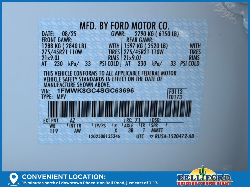 - VIN : 1FMWK8GC4SGC63696
