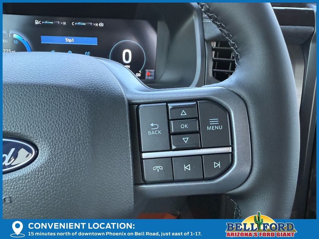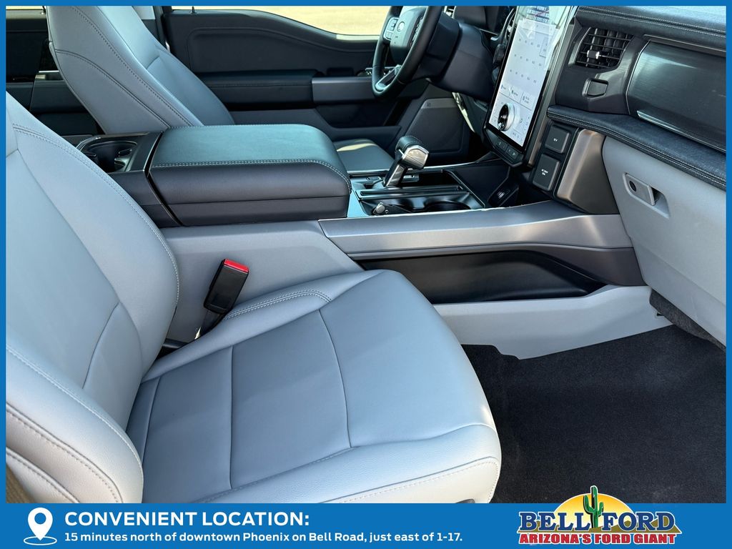 This Ford F-150 Lightning is equipped with the following options: Equipment Group 312A Standard, 4-Wheel Disc Brakes, 8 Speakers, ABS brakes, ActiveX Trimmed Heated Front Seats, Adjustable pedals, Air Conditioning, Alloy wheels, Auto High-beam Headlights, Auto-dimming Rear-View mirror, Automatic temperature control, Brake assist, Bumpers: body-color, Compass, Delay-off headlights, Driver door bin, Driver vanity mirror, Dual front impact airbags, Dual front side impact airbags, Electronic Stability Control, Emergency communication system: SYNC 4 911 Assist, Four wheel independent suspension, Front anti-roll bar, Front Bucket Seats, Front Center Armrest, Front dual zone A/C, Front reading lights, Fully automatic headlights, Heated door mirrors, Heated front seats, Heated steering wheel, Illuminated entry, Internet access capable: FordPass Connect 4G, Knee airbag, Low tire pressure warning, Mobile Power Cord (120/240V), Navigation system: Connected Navigation, Occupant sensing airbag, Outside temperature display, Overhead airbag, Overhead console, Panic alarm, Passenger door bin, Passenger vanity mirror, Power door mirrors, Power driver seat, Power passenger seat, Power steering, Power windows, Pro Power Onboard - 9.6 kW Exportable Power, Radio data system, Radio: B&O Sound System by Bang & Olufsen, Rear anti-roll bar, Rear reading lights, Rear step bumper, Rear window defroster, Remote keyless entry, Security system, Speed control, Speed-sensing steering, Split folding rear seat, Steering wheel mounted audio controls, SYNC 4A w/Enhanced Voice Recognition, Telescoping steering wheel, Tilt steering wheel, Traction control, Trip computer, Turn signal indicator mirrors, Variably intermittent wipers, and Wheels: 20" Alloy Dark Carbonized Gray. Price includes: $1000 - Bonus Customer Cash. Exp. 04/30/2026 $1000 - Retail Bonus Cash. Exp. 04/30/2026 $5000 - Retail Customer Cash. Exp. 04/30/2026