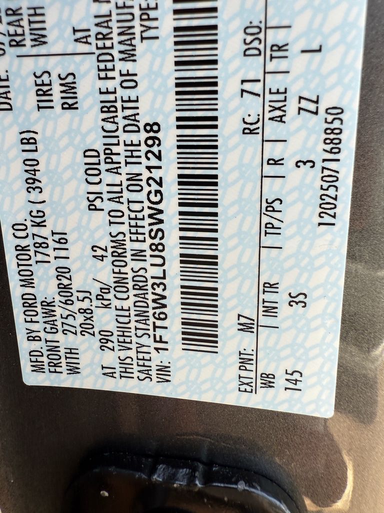 This Ford F-150 Lightning is equipped with the following options: Equipment Group 312A Standard, 4-Wheel Disc Brakes, 8 Speakers, ABS brakes, ActiveX Trimmed Heated Front Seats, Adjustable pedals, Air Conditioning, Alloy wheels, Auto High-beam Headlights, Auto-dimming Rear-View mirror, Automatic temperature control, Brake assist, Bumpers: body-color, Compass, Delay-off headlights, Driver door bin, Driver vanity mirror, Dual front impact airbags, Dual front side impact airbags, Electronic Stability Control, Emergency communication system: SYNC 4 911 Assist, Four wheel independent suspension, Front anti-roll bar, Front Bucket Seats, Front Center Armrest, Front dual zone A/C, Front reading lights, Fully automatic headlights, Heated door mirrors, Heated front seats, Heated steering wheel, Illuminated entry, Knee airbag, Low tire pressure warning, Mobile Power Cord (120/240V), Navigation system: Connected Navigation, Occupant sensing airbag, Outside temperature display, Overhead airbag, Overhead console, Panic alarm, Passenger door bin, Passenger vanity mirror, Power door mirrors, Power driver seat, Power passenger seat, Power steering, Power windows, Radio data system, Radio: B&O Sound System by Bang & Olufsen, Rear anti-roll bar, Rear reading lights, Rear step bumper, Rear window defroster, Remote keyless entry, Security system, Speed control, Speed-sensing steering, Split folding rear seat, Steering wheel mounted audio controls, SYNC 4A w/Enhanced Voice Recognition, Tailgate Step w/Tailgate Work Surface, Telescoping steering wheel, Tilt steering wheel, Traction control, Trip computer, Turn signal indicator mirrors, Variably intermittent wipers, and Wheels: 20" Alloy Dark Carbonized Gray. Price includes: $1000 - Retail Bonus Cash. Exp. 01/05/2026 $4000 - Retail Customer Cash. Exp. 01/05/2026