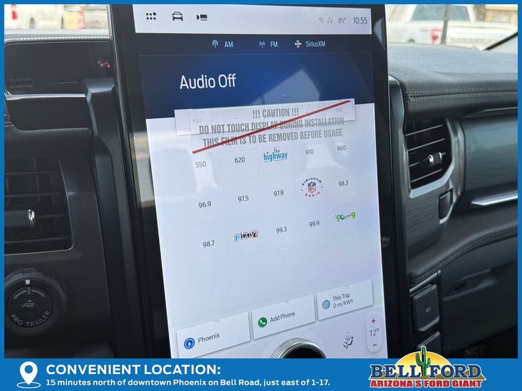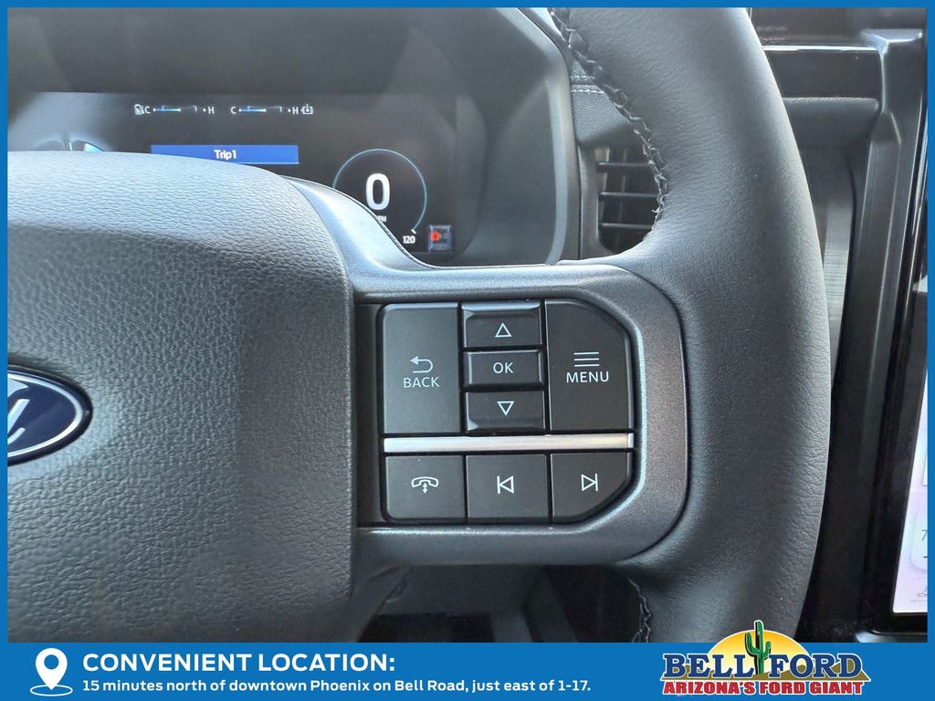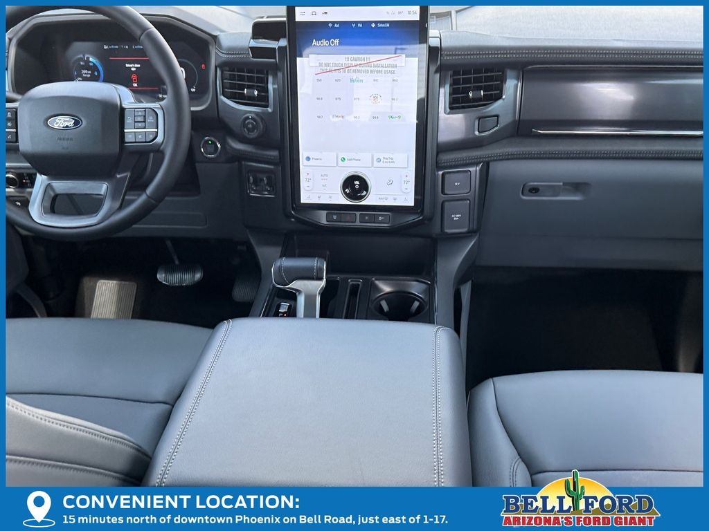This Ford F-150 Lightning is equipped with the following options: Equipment Group 312A Standard, Max Trailer Tow Package (E-Locker, Hill Decent Control, and Trailer Brake Controller), 4-Wheel Disc Brakes, 8 Speakers, ABS brakes, ActiveX Trimmed Heated Front Seats, Adjustable pedals, Air Conditioning, Alloy wheels, Auto High-beam Headlights, Auto-dimming Rear-View mirror, Automatic temperature control, Brake assist, Bumpers: body-color, Compass, Delay-off headlights, Driver door bin, Driver vanity mirror, Dual front impact airbags, Dual front side impact airbags, Electronic Stability Control, Emergency communication system: SYNC 4 911 Assist, Four wheel independent suspension, Front anti-roll bar, Front Bucket Seats, Front Center Armrest, Front dual zone A/C, Front reading lights, Fully automatic headlights, Heated door mirrors, Heated front seats, Heated steering wheel, Illuminated entry, Internet access capable: FordPass Connect 4G, Knee airbag, Low tire pressure warning, Mobile Power Cord (120/240V), Navigation system: Connected Navigation, Occupant sensing airbag, Outside temperature display, Overhead airbag, Overhead console, Panic alarm, Passenger door bin, Passenger vanity mirror, Power door mirrors, Power driver seat, Power passenger seat, Power steering, Power windows, Radio data system, Radio: B&O Sound System by Bang & Olufsen, Rear anti-roll bar, Rear reading lights, Rear step bumper, Rear window defroster, Remote keyless entry, Security system, Speed control, Speed-sensing steering, Split folding rear seat, Steering wheel mounted audio controls, SYNC 4A w/Enhanced Voice Recognition, Tailgate Step w/Tailgate Work Surface, Telescoping steering wheel, Tilt steering wheel, Traction control, Trip computer, Turn signal indicator mirrors, Variably intermittent wipers, and Wheels: 20" Alloy Dark Carbonized Gray. Price includes: $1000 - Bonus Customer Cash. Exp. 04/30/2026 $1000 - Retail Bonus Cash. Exp. 04/30/2026 $5000 - Retail Customer Cash. Exp. 04/30/2026