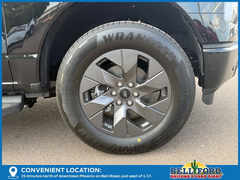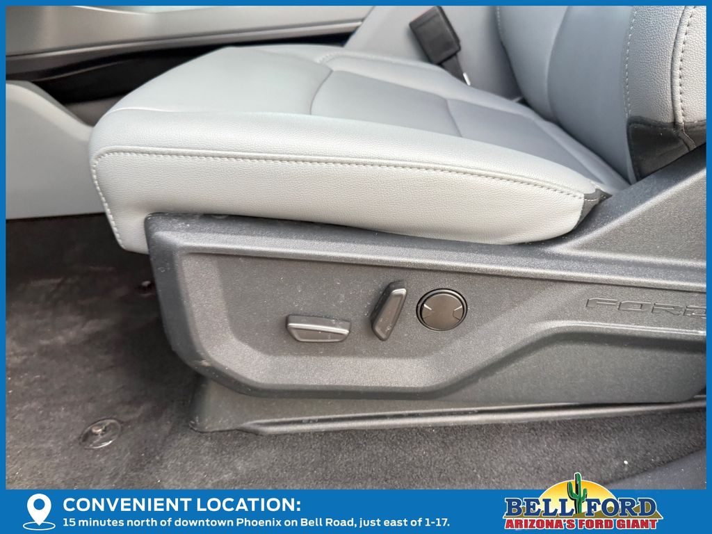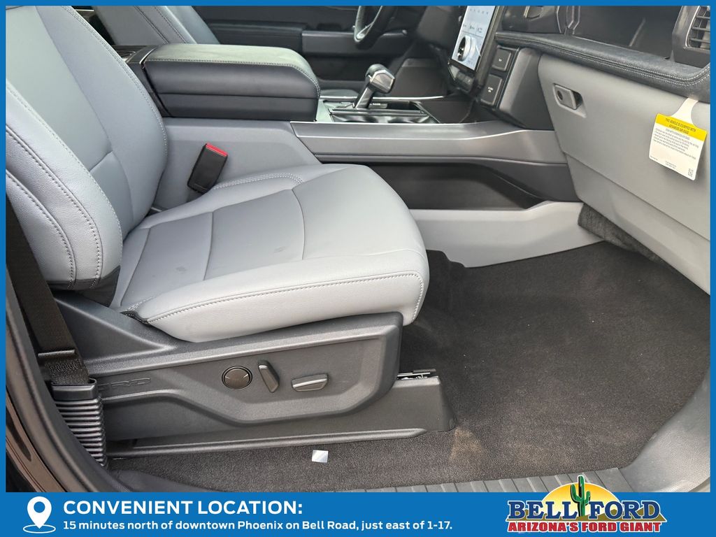 This Ford F-150 Lightning is equipped with the following options: Equipment Group 312A Standard, 4-Wheel Disc Brakes, 8 Speakers, ABS brakes, ActiveX Trimmed Heated Front Seats, Adjustable pedals, Air Conditioning, Alloy wheels, Auto High-beam Headlights, Auto-dimming Rear-View mirror, Automatic temperature control, Brake assist, Bumpers: body-color, Compass, Delay-off headlights, Driver door bin, Driver vanity mirror, Dual front impact airbags, Dual front side impact airbags, Electronic Stability Control, Emergency communication system: SYNC 4 911 Assist, Four wheel independent suspension, Front anti-roll bar, Front Bucket Seats, Front Center Armrest, Front dual zone A/C, Front reading lights, Fully automatic headlights, Heated door mirrors, Heated front seats, Heated steering wheel, Illuminated entry, Internet access capable: FordPass Connect 4G, Knee airbag, Low tire pressure warning, Mobile Power Cord (120/240V), Navigation system: Connected Navigation, Occupant sensing airbag, Outside temperature display, Overhead airbag, Overhead console, Panic alarm, Passenger door bin, Passenger vanity mirror, Power door mirrors, Power driver seat, Power passenger seat, Power steering, Power windows, Radio data system, Radio: B&O Sound System by Bang & Olufsen, Rear anti-roll bar, Rear reading lights, Rear step bumper, Rear window defroster, Remote keyless entry, Security system, Speed control, Speed-sensing steering, Split folding rear seat, Steering wheel mounted audio controls, SYNC 4A w/Enhanced Voice Recognition, Tailgate Step w/Tailgate Work Surface, Telescoping steering wheel, Tilt steering wheel, Traction control, Trip computer, Turn signal indicator mirrors, Variably intermittent wipers, and Wheels: 20" Alloy Dark Carbonized Gray. Price includes: $1000 - Bonus Customer Cash. Exp. 04/30/2026 $1000 - Retail Bonus Cash. Exp. 04/30/2026 $5000 - Retail Customer Cash. Exp. 04/30/2026