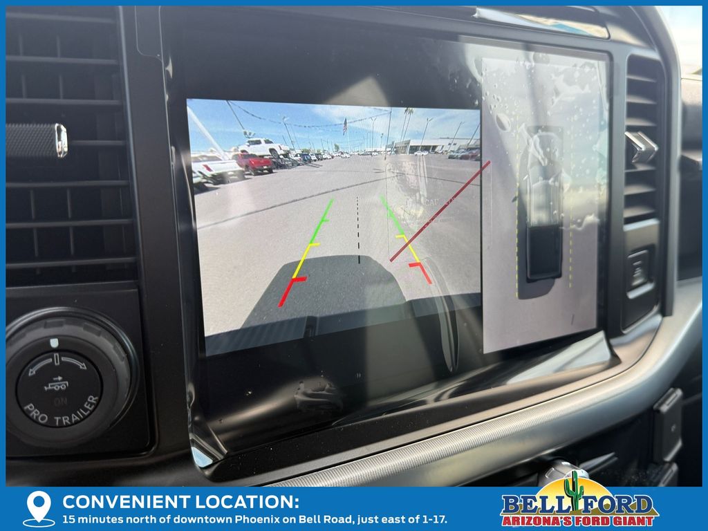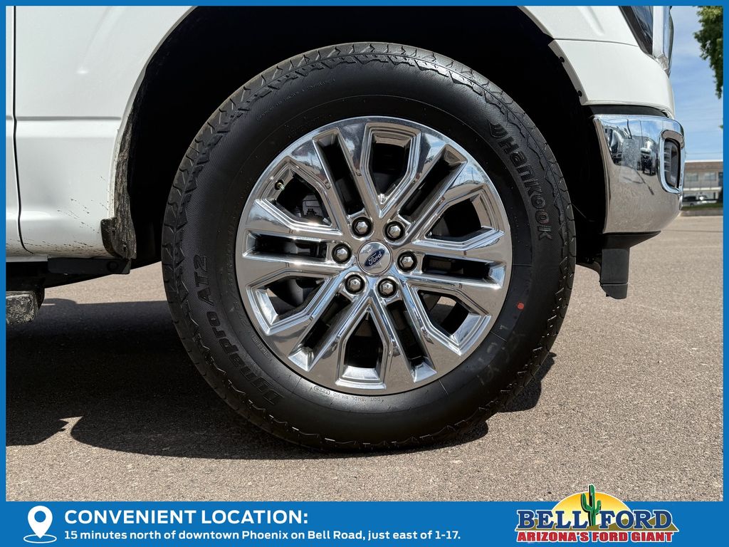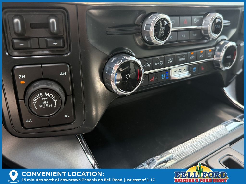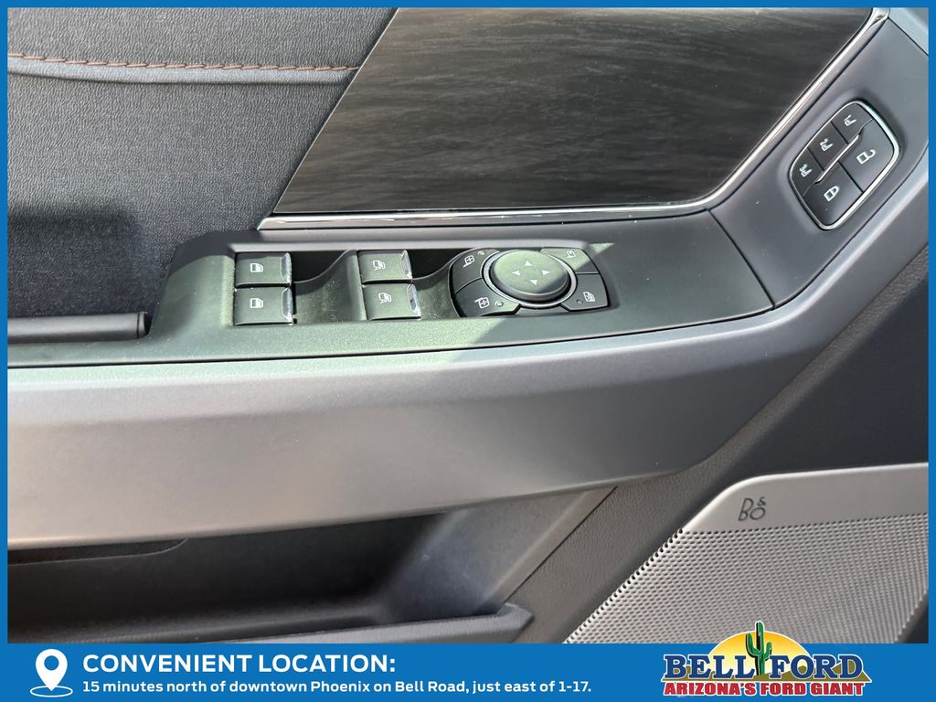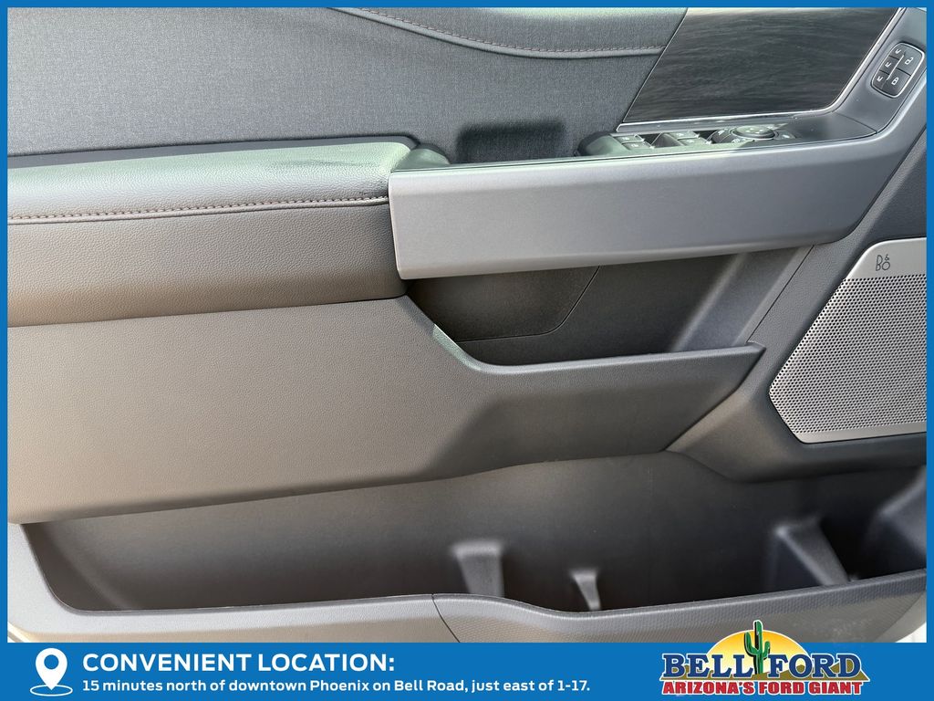 This Ford F-150 is equipped with the following options: Equipment Group 502A High (2nd Row Heated Seats, Ambient Lighting - Ice Blue Color Only, Heads-Up Display, Illuminated Driver & Passenger Visors, Power-Sliding Rear Window, Radio: B&O Unleashed Sound System by Bang & Olufsen, and Wheels: 20" Chrome-Like PVD), FX4 Off-Road Package (4x4 FX4 Off-Road Bodyside Decal, Hill Descent Control, Monotube Rear Shocks, Off-Road Tuned Front Shock Absorbers, Rock Crawl Mode, and Tray Style Floor Liner w/o Carpet Mats), Mobile Office Package (Console Worksurface, Partitioned Lockable Rear Storage, and Wireless Charging), Tow/Haul Package, 4WD, 4-Wheel Disc Brakes, 8 Speakers, ABS brakes, ActiveX Trimmed Bucket Seats, Adjustable pedals, Air Conditioning, Alloy wheels, AM/FM radio: SiriusXM with 360L, Auto High-beam Headlights, Auto-dimming door mirrors, Auto-dimming Rear-View mirror, Automatic temperature control, Brake assist, Bumpers: chrome, Chrome wheels, Compass, Delay-off headlights, Driver door bin, Driver vanity mirror, Dual front impact airbags, Dual front side impact airbags, Electronic Stability Control, Emergency communication system: SYNC 4 911 Assist, Front anti-roll bar, Front Bucket Seats, Front Center Armrest, Front dual zone A/C, Front fog lights, Front reading lights, Front wheel independent suspension, Fully automatic headlights, Garage door transmitter, Heated door mirrors, Heated front seats, Heated steering wheel, Illuminated entry, Low tire pressure warning, Memory seat, Navigation system: Connected Navigation, Occupant sensing airbag, Outside temperature display, Overhead airbag, Overhead console, Panic alarm, Passenger door bin, Passenger vanity mirror, Pedal memory, Power door mirrors, Power driver seat, Power passenger seat, Power steering, Power windows, Radio data system, Radio: B&O Sound System by Bang & Olufsen, Rain sensing wipers, Rear reading lights, Rear seat center armrest, Rear step bumper, Rear window defroster, Remote keyless entry, Security system, Speed control, Split folding rear seat, Steering wheel mounted audio controls, SYNC 4 w/Enhanced Voice Recognition, Tachometer, Telescoping steering wheel, Tilt steering wheel, Traction control, Trip computer, Turn signal indicator mirrors, Twin Panel Moonroof, Variably intermittent wipers, Ventilated front seats, Voltmeter, and Wheels: 18" Chrome-Like PVD.