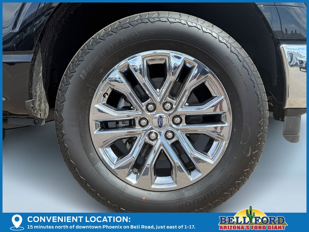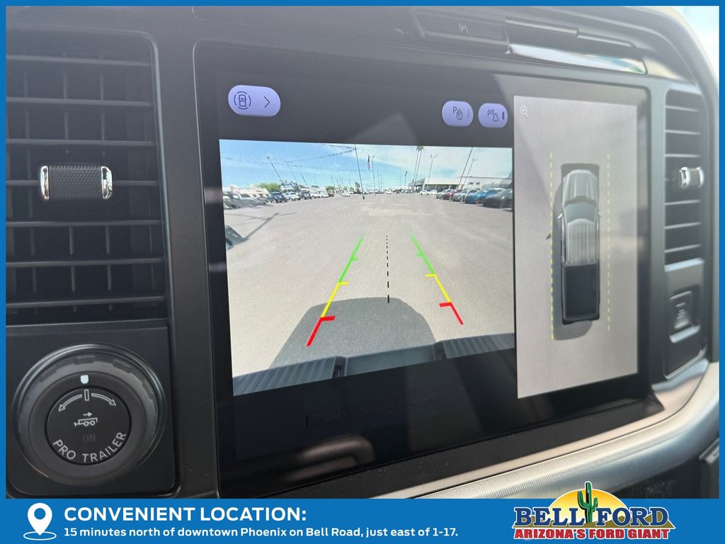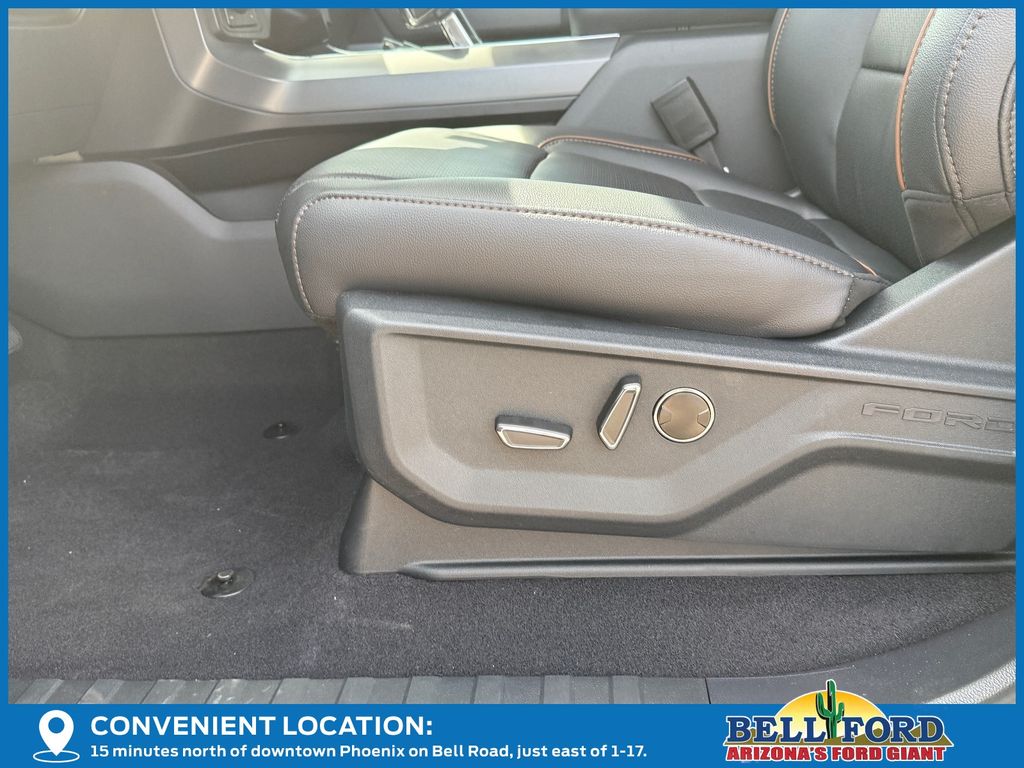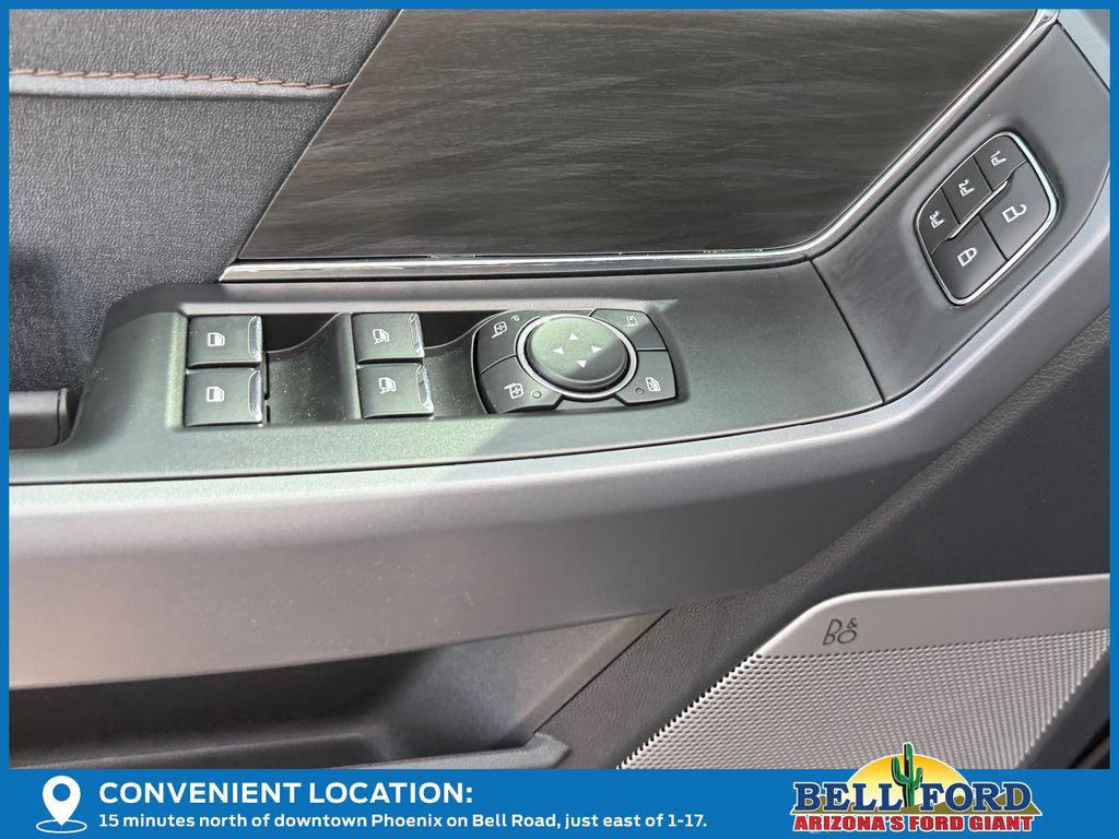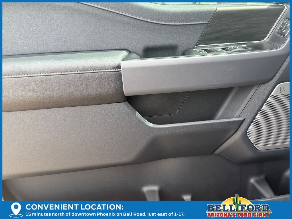This Ford F-150 is equipped with the following options: Equipment Group 502A High (2nd Row Heated Seats, Ambient Lighting - Ice Blue Color Only, Heads-Up Display, Illuminated Driver & Passenger Visors, Power-Sliding Rear Window, Radio: B&O Unleashed Sound System by Bang & Olufsen, and Wheels: 20" Chrome-Like PVD), Mobile Office Package (Console Worksurface, Partitioned Lockable Rear Storage, and Wireless Charging), Tow/Haul Package, 4WD, 4-Wheel Disc Brakes, 8 Speakers, ABS brakes, ActiveX Trimmed Bucket Seats, Adjustable pedals, Air Conditioning, Alloy wheels, AM/FM radio: SiriusXM with 360L, Auto High-beam Headlights, Auto-dimming door mirrors, Auto-dimming Rear-View mirror, Automatic temperature control, Brake assist, Bumpers: chrome, Chrome wheels, Compass, Delay-off headlights, Driver door bin, Driver vanity mirror, Dual front impact airbags, Dual front side impact airbags, Electronic Stability Control, Emergency communication system: SYNC 4 911 Assist, Front anti-roll bar, Front Bucket Seats, Front Center Armrest, Front dual zone A/C, Front fog lights, Front reading lights, Front wheel independent suspension, Fully automatic headlights, Garage door transmitter, Heated door mirrors, Heated front seats, Heated steering wheel, Illuminated entry, Low tire pressure warning, Memory seat, Navigation system: Connected Navigation, Occupant sensing airbag, Outside temperature display, Overhead airbag, Overhead console, Panic alarm, Passenger door bin, Passenger vanity mirror, Pedal memory, Power door mirrors, Power driver seat, Power passenger seat, Power steering, Power windows, Radio data system, Radio: B&O Sound System by Bang & Olufsen, Rain sensing wipers, Rear reading lights, Rear seat center armrest, Rear step bumper, Rear window defroster, Remote keyless entry, Security system, Speed control, Split folding rear seat, Steering wheel mounted audio controls, SYNC 4 w/Enhanced Voice Recognition, Tachometer, Telescoping steering wheel, Tilt steering wheel, Traction control, Trip computer, Turn signal indicator mirrors, Variably intermittent wipers, Ventilated front seats, Voltmeter, and Wheels: 18" Chrome-Like PVD.