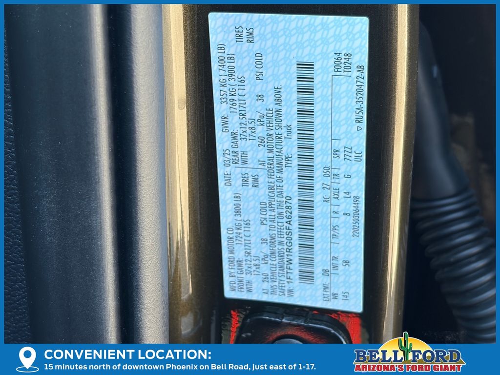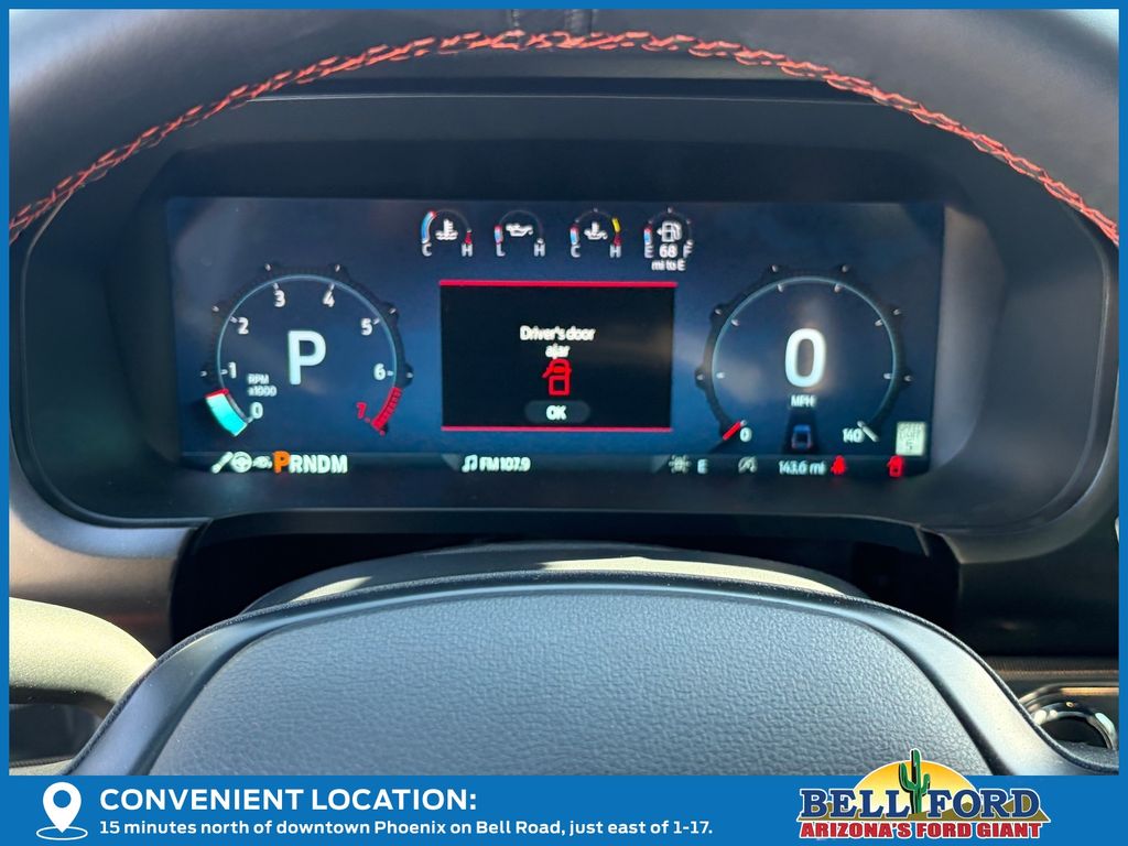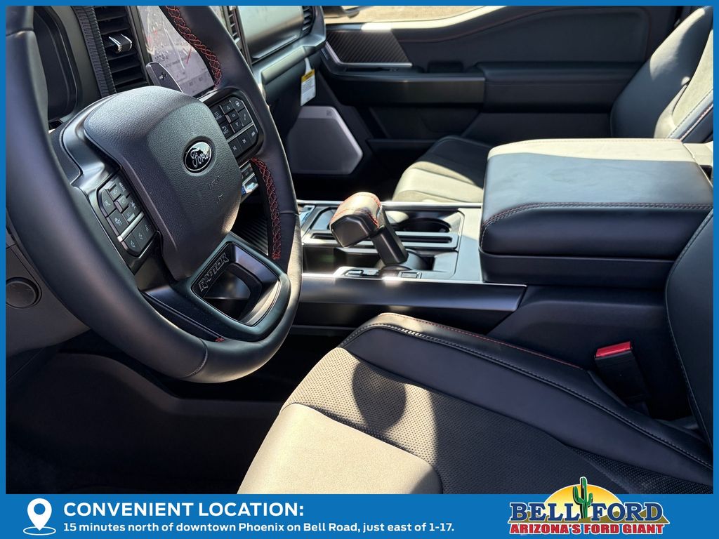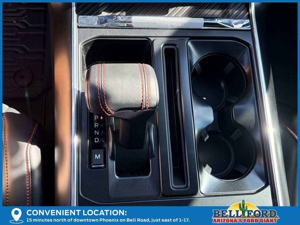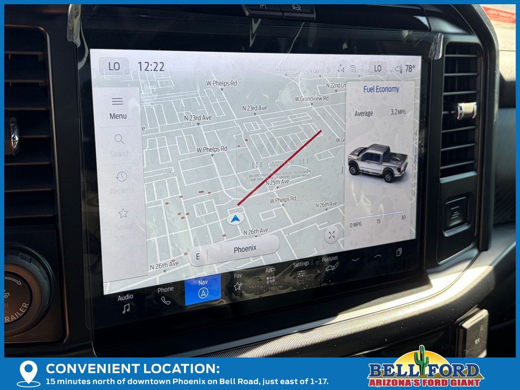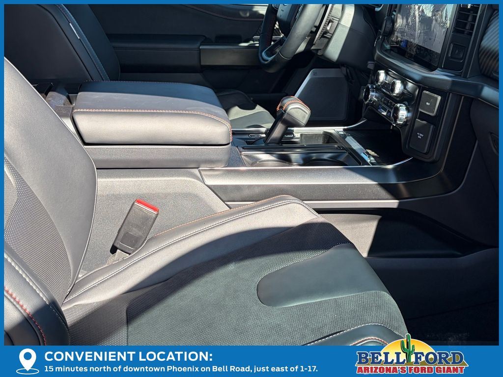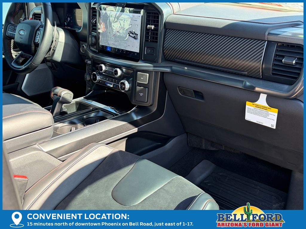 This Ford F-150 is equipped with the following options: Equipment Group 802A Raptor 37 (Carbon Fiber Interior Appliques, Dual Valve Shocks, Modular Front Bumper, RECARO Alcantara Suede Front Seats, and Wheels: Raptor 37 Unique 17" Cast Aluminum), 4WD, 14 Speakers, 17" Cast Aluminum Wheels, 4-Wheel Disc Brakes, ABS brakes, Adjustable pedals, Air Conditioning, Alloy wheels, AM/FM radio: SiriusXM with 360L, Auto High-beam Headlights, Auto tilt-away steering wheel, Auto-dimming door mirrors, Auto-dimming Rear-View mirror, Automatic temperature control, Brake assist, Bumpers: body-color, Compass, Delay-off headlights, Driver door bin, Driver vanity mirror, Dual front impact airbags, Dual front side impact airbags, Electronic Locking w/4.10 Axle Ratio, Electronic Stability Control, Emergency communication system: SYNC 4 911 Assist, Front anti-roll bar, Front Bucket Seats, Front Center Armrest, Front dual zone A/C, Front fog lights, Front License Plate Bracket, Front reading lights, Front wheel independent suspension, Fully automatic headlights, Garage door transmitter, Heads-Up Display, Heated door mirrors, Heated front seats, Heated rear seats, Heated steering wheel, Illuminated entry, Lane Departure Warning System, Leather steering wheel, Leather Trimmed Seats, Low tire pressure warning, Memory seat, Navigation system: Connected Navigation, Occupant sensing airbag, Outside temperature display, Overhead airbag, Overhead console, Panic alarm, Passenger door bin, Passenger vanity mirror, Pedal memory, Power door mirrors, Power driver seat, Power passenger seat, Power steering, Power windows, Radio data system, Radio: B&O Unleashed Sound System by Bang & Olufsen, Rain sensing wipers, Rear reading lights, Rear step bumper, Rear window defroster, Remote keyless entry, Security system, Speed control, Speed-sensing steering, Split folding rear seat, Steering wheel memory, Steering wheel mounted audio controls, SYNC 4 w/Enhanced Voice Recognition, Tachometer, Telescoping steering wheel, Tilt steering wheel, Tough Bed Spray-In Bedliner, Traction control, Trip computer, Turn signal indicator mirrors, Twin Panel Moonroof, Variably intermittent wipers, and Ventilated front seats.