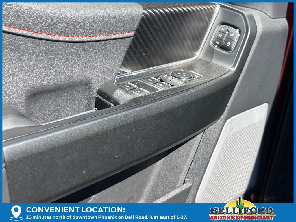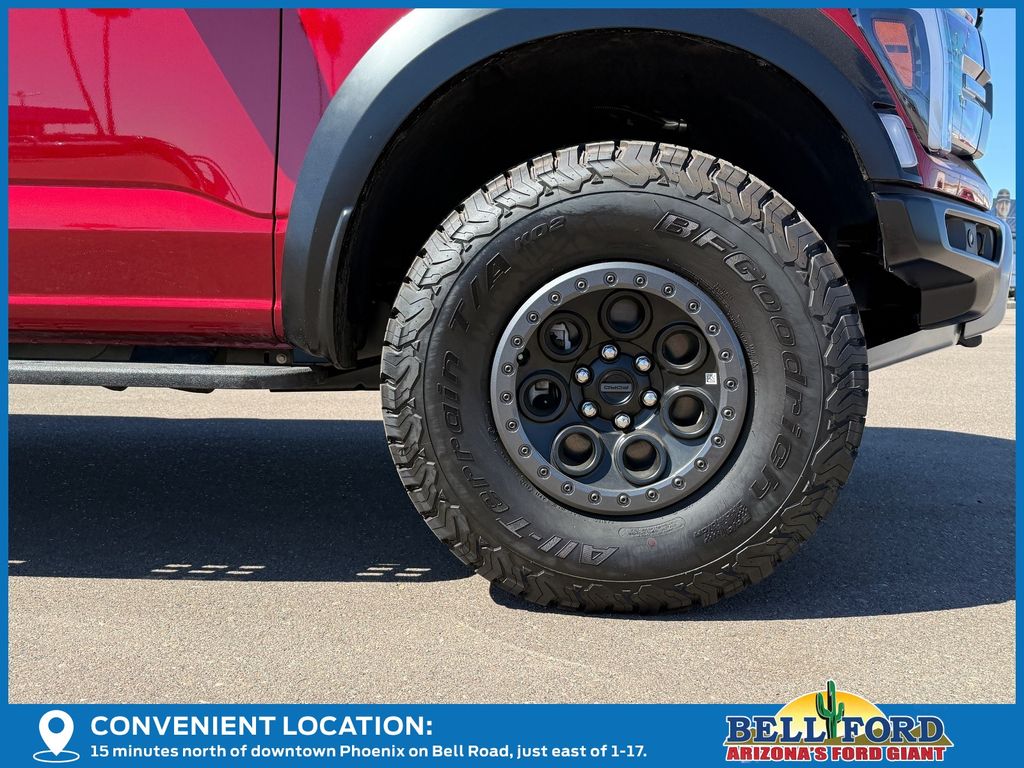This Ford F-150 is equipped with the following options: Equipment Group 802A Raptor 37 (Carbon Fiber Interior Appliques, Dual Valve Shocks, Modular Front Bumper, RECARO Alcantara Suede Front Seats, and Wheels: Raptor 37 Unique 17" Cast Aluminum), 4WD, 14 Speakers, 17" Cast Aluminum Wheels, 4-Wheel Disc Brakes, ABS brakes, Adjustable pedals, Air Conditioning, Alloy wheels, AM/FM radio: SiriusXM with 360L, Auto High-beam Headlights, Auto tilt-away steering wheel, Auto-dimming door mirrors, Auto-dimming Rear-View mirror, Automatic temperature control, Brake assist, Bumpers: body-color, Compass, Delay-off headlights, Driver door bin, Driver vanity mirror, Dual front impact airbags, Dual front side impact airbags, Electronic Locking w/4.10 Axle Ratio, Electronic Stability Control, Emergency communication system: SYNC 4 911 Assist, Engine Block Heater, Front anti-roll bar, Front Bucket Seats, Front Center Armrest, Front dual zone A/C, Front fog lights, Front License Plate Bracket, Front reading lights, Front wheel independent suspension, Fully automatic headlights, Garage door transmitter, Heads-Up Display, Heated door mirrors, Heated front seats, Heated rear seats, Heated steering wheel, Illuminated entry, Internet access capable: FordPass Connect 5G, Lane Departure Warning System, Leather steering wheel, Leather Trimmed Seats, Low tire pressure warning, Memory seat, Navigation system: Connected Navigation, Occupant sensing airbag, Outside temperature display, Overhead airbag, Overhead console, Panic alarm, Passenger door bin, Passenger vanity mirror, Pedal memory, Power door mirrors, Power driver seat, Power passenger seat, Power steering, Power windows, Radio data system, Radio: B&O Unleashed Sound System by Bang & Olufsen, Rain sensing wipers, Rear reading lights, Rear step bumper, Rear window defroster, Remote keyless entry, Security system, Speed control, Speed-sensing steering, Split folding rear seat, Steering wheel memory, Steering wheel mounted audio controls, SYNC 4 w/Enhanced Voice Recognition, Tachometer, Telescoping steering wheel, Tilt steering wheel, Tough Bed Spray-In Bedliner, Traction control, Trip computer, Turn signal indicator mirrors, Variably intermittent wipers, and Ventilated front seats.