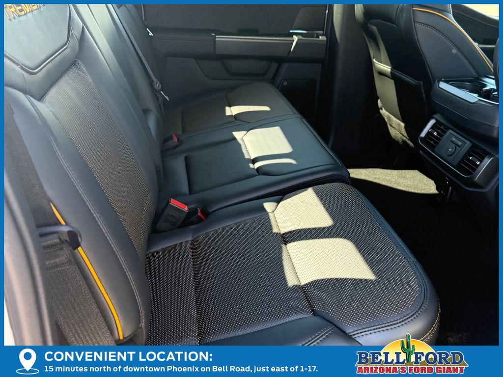 This Ford F-150 is equipped with the following options: Bed Utility Package (4 Pickup Box Tie-Down Plates, LED Box Lighting, and Power Tailgate), Equipment Group 402A High (2nd Row Heated Seats, Ambient Lighting, Auto-Dimming Rear-View Mirror, Front Axle w/Torsen Differential, Heads-Up Display, Heated Steering Wheel, LED Taillamps, Media Bin Door, Modular Front Bumper & Carbon Black Rear Bumper, Power Glass Heated Sideview Mirrors, Power-Adjustable Pedals w/Memory, Premium Wrapped Steering Wheel, Radio: B&O Unleashed Sound System by Bang & Olufsen, Rain-Sensing Wipers, Two-Speed Automatic AWD w/Mechanical Locking 4WD, Unique Tremor Leather-Trimmed Bucket Seats, and Universal Garage Door Opener), GVWR: 7,100 lbs Payload Package, Mobile Office Package (Console Worksurface, Partitioned Lockable Rear Storage, and Wireless Charging), Tow/Haul Package (Integrated Trailer Brake Controller), 4WD, 4-Wheel Disc Brakes, 8 Speakers, ABS brakes, Adjustable pedals, Air Conditioning, Alloy wheels, AM/FM radio: SiriusXM with 360L, Auto High-beam Headlights, Auto-dimming door mirrors, Auto-dimming Rear-View mirror, Automatic temperature control, Brake assist, Bumpers: body-color, Compass, Delay-off headlights, Driver door bin, Driver vanity mirror, Dual front impact airbags, Dual front side impact airbags, Electronic Locking w/3.73 Axle Ratio, Electronic Stability Control, Emergency communication system: SYNC 4 911 Assist, Front anti-roll bar, Front Bucket Seats, Front Center Armrest, Front dual zone A/C, Front fog lights, Front reading lights, Front wheel independent suspension, Fully automatic headlights, Heated door mirrors, Heated front seats, Illuminated entry, Low tire pressure warning, Navigation system: Connected Navigation, Occupant sensing airbag, Outside temperature display, Overhead airbag, Overhead console, Panic alarm, Passenger door bin, Passenger vanity mirror, Power door mirrors, Power driver seat, Power passenger seat, Power steering, Power windows, Radio data system, Radio: B&O Sound System by Bang & Olufsen, Rear reading lights, Rear step bumper, Rear window defroster, Remote keyless entry, Security system, Speed control, Split folding rear seat, Steering wheel mounted audio controls, SYNC 4 w/Enhanced Voice Recognition, Tachometer, Tailgate Step w/Tailgate Work Surface, Telescoping steering wheel, Tilt steering wheel, Traction control, Trip computer, Turn signal indicator mirrors, Twin Panel Moonroof, Unique Sport Cloth 40/Console/40 Power Front Seat, Variably intermittent wipers, Voltmeter, and Wheels: 18" Alloy w/Dark Matte Finish.