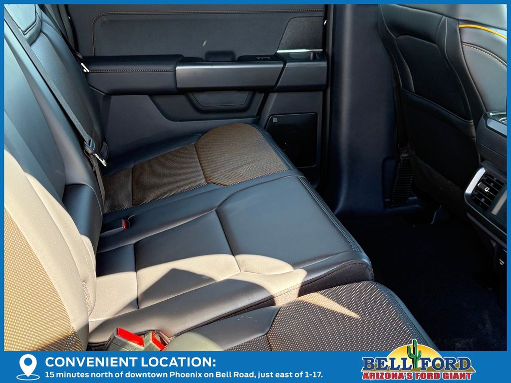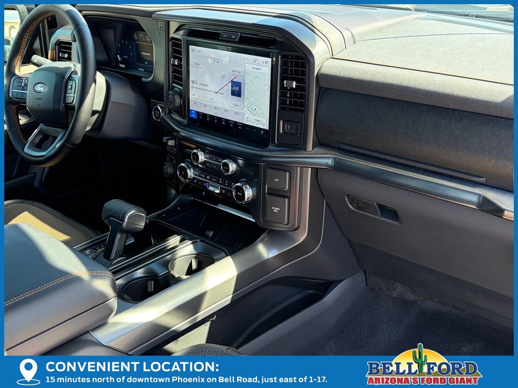 This Ford F-150 is equipped with the following options: Bed Utility Package (4 Pickup Box Tie-Down Plates, LED Box Lighting, and Power Tailgate), Equipment Group 402A High (2nd Row Heated Seats, Ambient Lighting, Auto-Dimming Rear-View Mirror, Front Axle w/Torsen Differential, Heads-Up Display, Heated Steering Wheel, LED Taillamps, Media Bin Door, Modular Front Bumper & Carbon Black Rear Bumper, Power Glass Heated Sideview Mirrors, Power-Adjustable Pedals w/Memory, Premium Wrapped Steering Wheel, Radio: B&O Unleashed Sound System by Bang & Olufsen, Rain-Sensing Wipers, Two-Speed Automatic AWD w/Mechanical Locking 4WD, Unique Tremor Leather-Trimmed Bucket Seats, and Universal Garage Door Opener), GVWR: 7,100 lbs Payload Package, Mobile Office Package (Console Worksurface, Partitioned Lockable Rear Storage, and Wireless Charging), Tow/Haul Package (Integrated Trailer Brake Controller), 4WD, 4-Wheel Disc Brakes, 8 Speakers, ABS brakes, Adjustable pedals, Air Conditioning, Alloy wheels, AM/FM radio: SiriusXM with 360L, Auto High-beam Headlights, Auto-dimming door mirrors, Auto-dimming Rear-View mirror, Automatic temperature control, Brake assist, Bumpers: body-color, Compass, Delay-off headlights, Driver door bin, Driver vanity mirror, Dual front impact airbags, Dual front side impact airbags, Electronic Locking w/3.73 Axle Ratio, Electronic Stability Control, Emergency communication system: SYNC 4 911 Assist, Front anti-roll bar, Front Bucket Seats, Front Center Armrest, Front dual zone A/C, Front fog lights, Front reading lights, Front wheel independent suspension, Fully automatic headlights, Heated door mirrors, Heated front seats, Illuminated entry, Low tire pressure warning, Navigation system: Connected Navigation, Occupant sensing airbag, Outside temperature display, Overhead airbag, Overhead console, Panic alarm, Passenger door bin, Passenger vanity mirror, Power door mirrors, Power driver seat, Power passenger seat, Power steering, Power windows, Radio data system, Radio: B&O Sound System by Bang & Olufsen, Rear reading lights, Rear step bumper, Rear window defroster, Remote keyless entry, Security system, Speed control, Split folding rear seat, Steering wheel mounted audio controls, SYNC 4 w/Enhanced Voice Recognition, Tachometer, Tailgate Step w/Tailgate Work Surface, Telescoping steering wheel, Tilt steering wheel, Traction control, Trip computer, Turn signal indicator mirrors, Unique Sport Cloth 40/Console/40 Power Front Seat, Variably intermittent wipers, Voltmeter, and Wheels: 18" Alloy w/Dark Matte Finish.