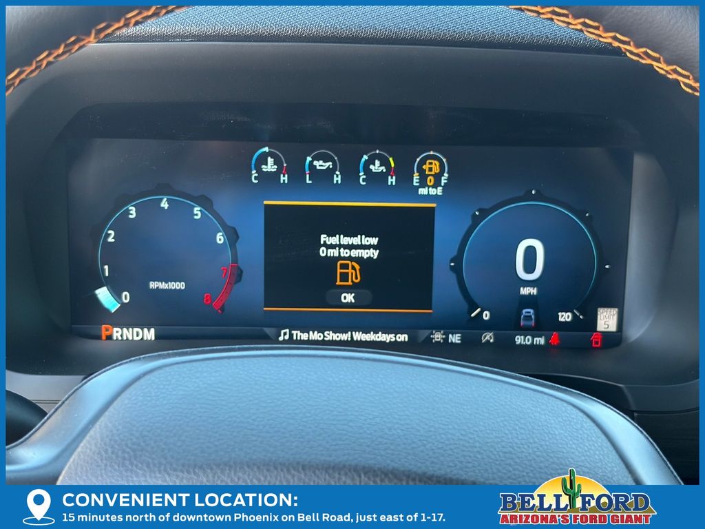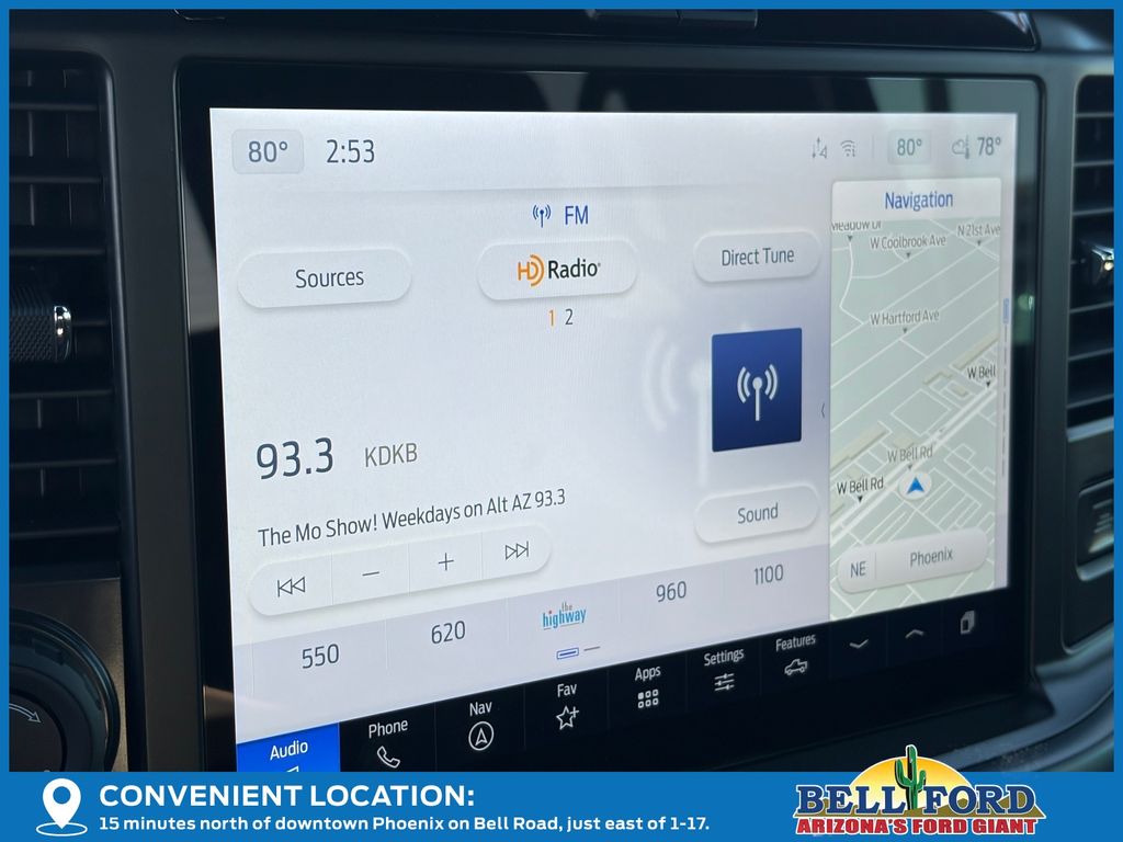 This Ford F-150 is equipped with the following options: Equipment Group 401A Standard, GVWR: 7,100 lbs Payload Package, Tow/Haul Package (Integrated Trailer Brake Controller), 4WD, 4-Wheel Disc Brakes, 8 Speakers, ABS brakes, Adjustable pedals, Air Conditioning, Alloy wheels, AM/FM radio: SiriusXM with 360L, Auto High-beam Headlights, Auto-dimming door mirrors, Auto-dimming Rear-View mirror, Automatic temperature control, Brake assist, Bumpers: body-color, Compass, Delay-off headlights, Driver door bin, Driver vanity mirror, Dual front impact airbags, Dual front side impact airbags, Electronic Locking w/3.73 Axle Ratio, Electronic Stability Control, Emergency communication system: SYNC 4 911 Assist, Front anti-roll bar, Front Bucket Seats, Front Center Armrest, Front dual zone A/C, Front fog lights, Front reading lights, Front wheel independent suspension, Fully automatic headlights, Heated door mirrors, Heated front seats, Illuminated entry, Low tire pressure warning, Navigation system: Connected Navigation, Occupant sensing airbag, Outside temperature display, Overhead airbag, Overhead console, Panic alarm, Passenger door bin, Passenger vanity mirror, Power door mirrors, Power driver seat, Power passenger seat, Power steering, Power windows, Radio data system, Radio: B&O Sound System by Bang & Olufsen, Rear reading lights, Rear step bumper, Rear window defroster, Remote keyless entry, Security system, Speed control, Split folding rear seat, Steering wheel mounted audio controls, SYNC 4 w/Enhanced Voice Recognition, Tachometer, Telescoping steering wheel, Tilt steering wheel, Traction control, Trip computer, Turn signal indicator mirrors, Unique Sport Cloth 40/Console/40 Power Front Seat, Variably intermittent wipers, Voltmeter, and Wheels: 18" Alloy w/Dark Matte Finish.