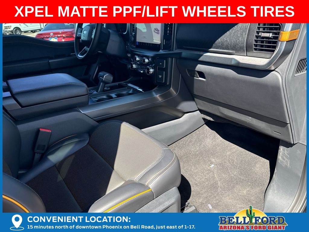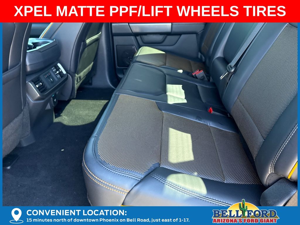 This Ford F-150 is equipped with the following options: Bed Utility Package (4 Pickup Box Tie-Down Plates, LED Box Lighting, and Power Tailgate), Equipment Group 402A High (2nd Row Heated Seats, Ambient Lighting, Auto-Dimming Rear-View Mirror, Front Axle w/Torsen Differential, Heads-Up Display, Heated Steering Wheel, LED Taillamps, Media Bin Door, Modular Front Bumper & Carbon Black Rear Bumper, Power Glass Heated Sideview Mirrors, Power-Adjustable Pedals w/Memory, Premium Wrapped Steering Wheel, Radio: B&O Unleashed Sound System by Bang & Olufsen, Rain-Sensing Wipers, Two-Speed Automatic AWD w/Mechanical Locking 4WD, Unique Tremor Leather-Trimmed Bucket Seats, and Universal Garage Door Opener), GVWR: 7,100 lbs Payload Package, Mobile Office Package (Console Worksurface, Partitioned Lockable Rear Storage, and Wireless Charging), Tow/Haul Package (Integrated Trailer Brake Controller), 4WD, 4-Wheel Disc Brakes, 8 Speakers, ABS brakes, Adjustable pedals, Air Conditioning, Alloy wheels, AM/FM radio: SiriusXM with 360L, Auto High-beam Headlights, Auto-dimming door mirrors, Auto-dimming Rear-View mirror, Automatic temperature control, Brake assist, Bumpers: body-color, Compass, Delay-off headlights, Driver door bin, Driver vanity mirror, Dual front impact airbags, Dual front side impact airbags, Electronic Locking w/3.73 Axle Ratio, Electronic Stability Control, Emergency communication system: SYNC 4 911 Assist, Front anti-roll bar, Front Bucket Seats, Front Center Armrest, Front dual zone A/C, Front fog lights, Front reading lights, Front wheel independent suspension, Fully automatic headlights, Heated door mirrors, Heated front seats, Illuminated entry, Internet access capable: FordPass Connect 5G, Low tire pressure warning, Navigation system: Connected Navigation, Occupant sensing airbag, Outside temperature display, Overhead airbag, Overhead console, Panic alarm, Passenger door bin, Passenger vanity mirror, Power door mirrors, Power driver seat, Power passenger seat, Power steering, Power windows, Radio data system, Radio: B&O Sound System by Bang & Olufsen, Rear reading lights, Rear step bumper, Rear window defroster, Remote keyless entry, Security system, Speed control, Split folding rear seat, Steering wheel mounted audio controls, SYNC 4 w/Enhanced Voice Recognition, Tachometer, Tailgate Step w/Tailgate Work Surface, Telescoping steering wheel, Tilt steering wheel, Traction control, Trip computer, Turn signal indicator mirrors, Unique Sport Cloth 40/Console/40 Power Front Seat, Variably intermittent wipers, Voltmeter, and Wheels: 18" Alloy w/Dark Matte Finish. Price includes: $2000 - Retail Bonus Cash. Exp. 04/30/2026 $2000 - Retail Customer Cash. Exp. 04/30/2026 Price includes dealer added accessories totaling $23,440.