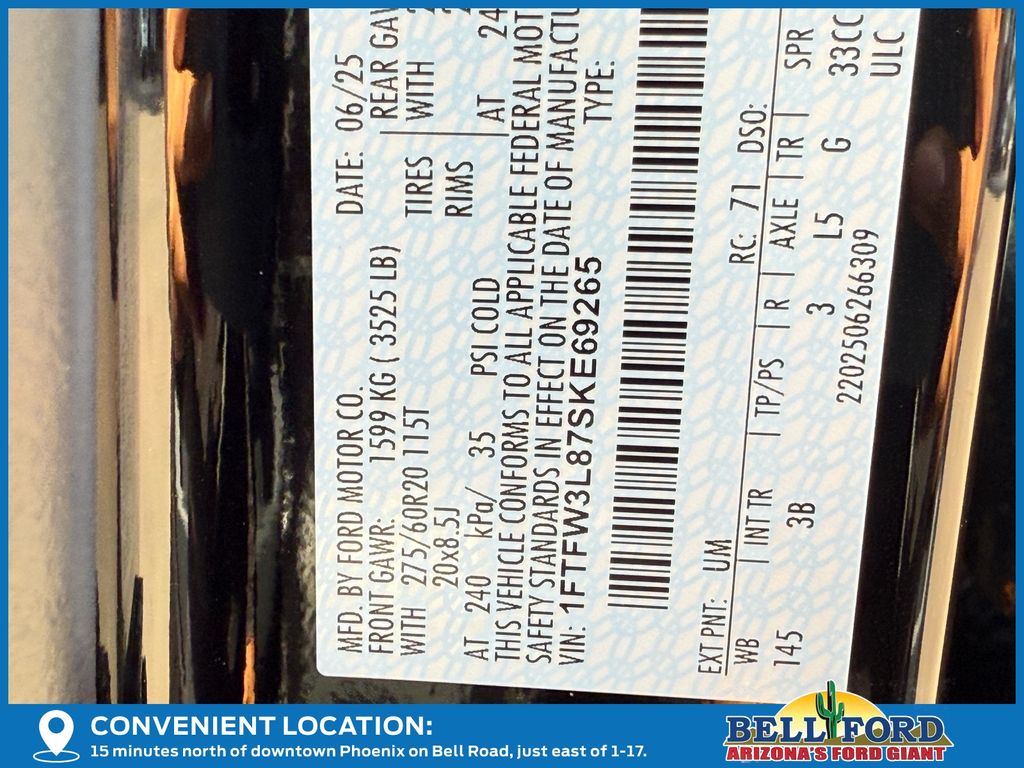 This Ford F-150 is equipped with the following options: Equipment Group 303A High, Mobile Office Package (Console Worksurface and Partitioned Lockable Rear Storage), Tow/Haul Package, 4WD, 4-Wheel Disc Brakes, 6 Speakers, ABS brakes, Air Conditioning, Alloy wheels, AM/FM radio: SiriusXM with 360L, Auto High-beam Headlights, Brake assist, Bumpers: chrome, Chrome wheels, Cloth 40/20/40 Front Seat, Compass, Delay-off headlights, Driver door bin, Driver vanity mirror, Dual front impact airbags, Dual front side impact airbags, Electronic Stability Control, Emergency communication system: SYNC 4 911 Assist, Front anti-roll bar, Front Center Armrest, Front fog lights, Front reading lights, Front wheel independent suspension, Fully automatic headlights, Heated door mirrors, Illuminated entry, Low tire pressure warning, Occupant sensing airbag, Outside temperature display, Overhead airbag, Overhead console, Panic alarm, Passenger door bin, Passenger vanity mirror, Power door mirrors, Power steering, Power windows, Radio data system, Radio: AM/FM Stereo w/SiriusXM 360L, Rear Parking Sensors, Rear reading lights, Rear step bumper, Rear window defroster, Remote keyless entry, Security system, Speed control, Split folding rear seat, Steering wheel mounted audio controls, SYNC 4 w/Enhanced Voice Recognition, Tachometer, Telescoping steering wheel, Tilt steering wheel, Traction control, Trip computer, Variably intermittent wipers, Voltmeter, and Wheels: 18" Chrome-Like PVD. Price includes: $1500 - Retail Bonus Cash. Exp. 01/05/2026