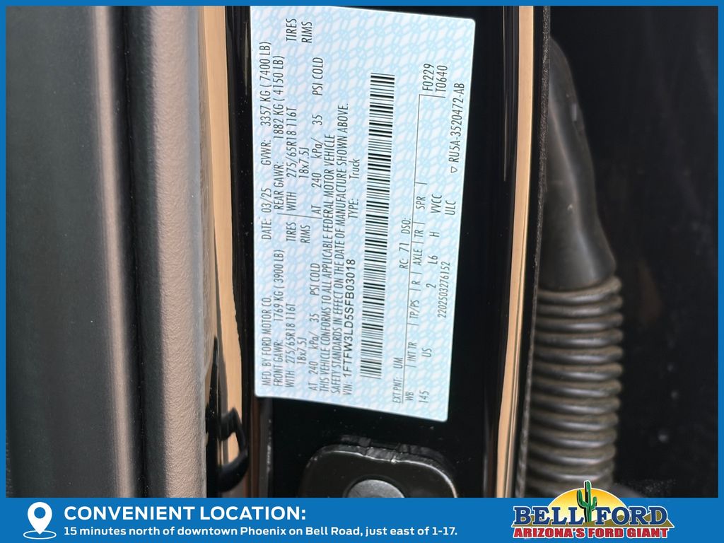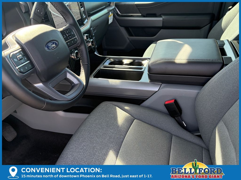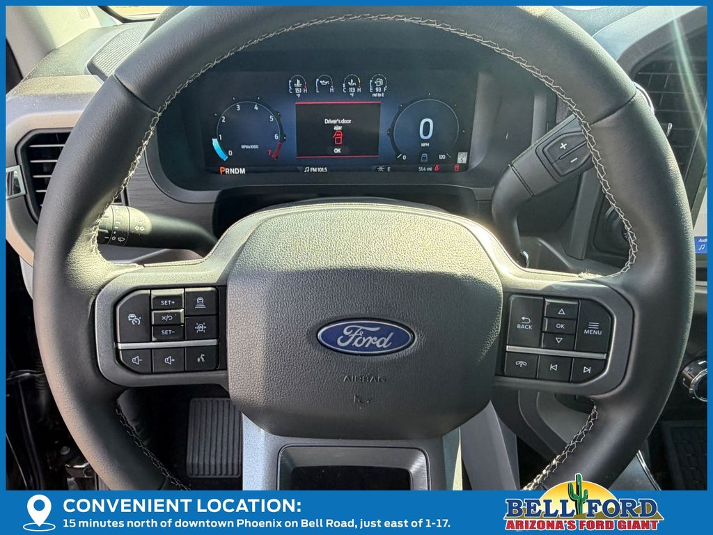 This Ford F-150 is equipped with the following options: Equipment Group 302A Mid (360 Degree Camera, 400W Cab & Bed Outlets, 6" Angular Bright Anodized Step Bar, Adaptive Cruise Control w/Stop & Go, Auto-Dimming Rear-View Mirror, Black Painted Grille w/Chrome Center Bar, Chrome Door & Tailgate Handles, Chrome Single-Tip Exhaust, Cloth 40/Console/40 Front Seats, Connected Navigation, Driver State Detection, Dual-Zone Electronic Automatic Temperature Control, Evasive Steering Assist, Ford Co-Pilot360 Assist 2.0, Front Parking Sensors, Heated Front Seats, Intelligent Access w/Push Button Start, Power Glass Heated Sideview Mirrors, Power-Sliding Rear Window, Remote Start System w/Remote Tailgate Release, Towing Technology, and Wrapped Steering Wheel), FX4 Off-Road Package, Mobile Office Package (Console Worksurface and Partitioned Lockable Rear Storage), Tow/Haul Package, 3.5L PowerBoost Full-Hybrid V6, 4WD, 4-Wheel Disc Brakes, 6 Speakers, ABS brakes, Air Conditioning, Alloy wheels, AM/FM radio: SiriusXM with 360L, Auto High-beam Headlights, Brake assist, Bumpers: chrome, Chrome wheels, Cloth 40/20/40 Front Seat, Compass, Delay-off headlights, Driver door bin, Driver vanity mirror, Dual front impact airbags, Dual front side impact airbags, Electronic Stability Control, Emergency communication system: SYNC 4 911 Assist, Front anti-roll bar, Front Center Armrest, Front fog lights, Front reading lights, Front wheel independent suspension, Fully automatic headlights, Heated door mirrors, Illuminated entry, Low tire pressure warning, Occupant sensing airbag, Outside temperature display, Overhead airbag, Overhead console, Panic alarm, Passenger door bin, Passenger vanity mirror, Power door mirrors, Power steering, Power windows, Pro Power Onboard - 7.2KW, Radio data system, Radio: AM/FM Stereo w/SiriusXM 360L, Rear Parking Sensors, Rear reading lights, Rear step bumper, Rear window defroster, Remote keyless entry, Security system, Speed control, Split folding rear seat, Steering wheel mounted audio controls, SYNC 4 w/Enhanced Voice Recognition, Tachometer, Telescoping steering wheel, Tilt steering wheel, Traction control, Trip computer, Variably intermittent wipers, Voltmeter, and Wheels: 18" Chrome-Like PVD. Price includes: $1500 - Retail Bonus Cash. Exp. 01/05/2026