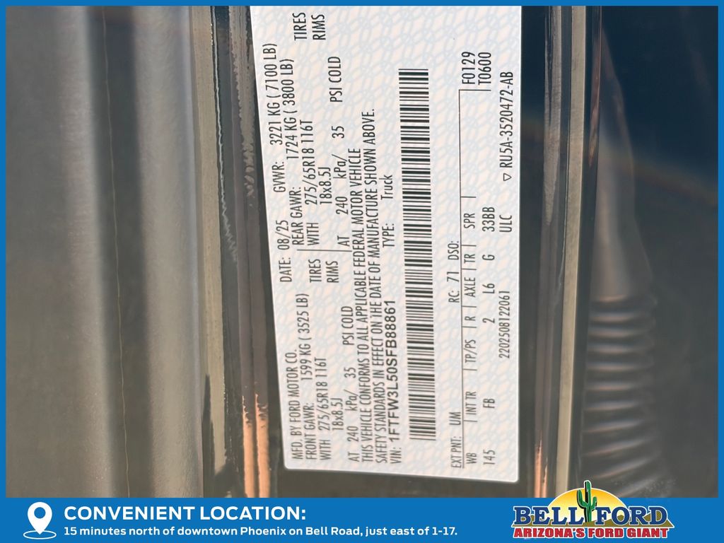 This Ford F-150 is equipped with the following options: Equipment Group 302A Mid (360 Degree Camera, 400W Cab & Bed Outlets, 6" Angular Bright Anodized Step Bar, Adaptive Cruise Control w/Stop & Go, Auto-Dimming Rear-View Mirror, Black Painted Grille w/Chrome Center Bar, Chrome Door & Tailgate Handles, Chrome Single-Tip Exhaust, Cloth 40/Console/40 Front Seats, Connected Navigation, Driver State Detection, Dual-Zone Electronic Automatic Temperature Control, Evasive Steering Assist, Ford Co-Pilot360 Assist 2.0, Front Parking Sensors, Heated Front Seats, Intelligent Access w/Push Button Start, Power Glass Heated Sideview Mirrors, Power-Sliding Rear Window, Remote Start System w/Remote Tailgate Release, Towing Technology, and Wrapped Steering Wheel), FX4 Off-Road Package, Tow/Haul Package, 4WD, 4-Wheel Disc Brakes, 6 Speakers, ABS brakes, Air Conditioning, Alloy wheels, AM/FM radio: SiriusXM with 360L, Auto High-beam Headlights, Brake assist, Bumpers: chrome, Chrome wheels, Cloth 40/20/40 Front Seat, Compass, Delay-off headlights, Driver door bin, Driver vanity mirror, Dual front impact airbags, Dual front side impact airbags, Electronic Stability Control, Emergency communication system: SYNC 4 911 Assist, Front anti-roll bar, Front Center Armrest, Front fog lights, Front reading lights, Front wheel independent suspension, Fully automatic headlights, Heated door mirrors, Illuminated entry, Low tire pressure warning, Occupant sensing airbag, Outside temperature display, Overhead airbag, Overhead console, Panic alarm, Passenger door bin, Passenger vanity mirror, Power door mirrors, Power steering, Power windows, Radio data system, Radio: AM/FM Stereo w/SiriusXM 360L, Rear Parking Sensors, Rear reading lights, Rear step bumper, Rear window defroster, Remote keyless entry, Security system, Speed control, Split folding rear seat, Steering wheel mounted audio controls, SYNC 4 w/Enhanced Voice Recognition, Tachometer, Telescoping steering wheel, Tilt steering wheel, Traction control, Trip computer, Variably intermittent wipers, Voltmeter, and Wheels: 18" Chrome-Like PVD. Price includes: $1500 - Retail Bonus Cash. Exp. 01/05/2026