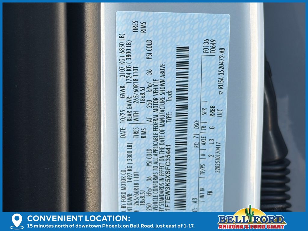 This Ford F-150 is equipped with the following options: Equipment Group 302A Mid (360 Degree Camera, 400W Cab & Bed Outlets, 6" Angular Bright Anodized Step Bar, Adaptive Cruise Control w/Stop & Go, Auto-Dimming Rear-View Mirror, Black Painted Grille w/Chrome Center Bar, Chrome Door & Tailgate Handles, Chrome Single-Tip Exhaust, Cloth 40/Console/40 Front Seats, Connected Navigation, Driver State Detection, Dual-Zone Electronic Automatic Temperature Control, Evasive Steering Assist, Ford Co-Pilot360 Assist 2.0, Front Parking Sensors, Heated Front Seats, Intelligent Access w/Push Button Start, Power Glass Heated Sideview Mirrors, Power-Sliding Rear Window, Remote Start System w/Remote Tailgate Release, Towing Technology, and Wrapped Steering Wheel), GVWR: 6,426 lbs Payload Package, Mobile Office Package (Console Worksurface and Partitioned Lockable Rear Storage), XLT Black Appearance Package (6" Black Running Boards, Black Exterior Badging, Black Grille, Body-Color Front & Rear Bumpers, Dark Interior Appliques, Floor Shifter, Unique Sport Cloth 40/Console/40 Front-Seats, and Wheels: 18" Gloss Black), 4-Wheel Disc Brakes, 6 Speakers, ABS brakes, Air Conditioning, Alloy wheels, AM/FM radio: SiriusXM with 360L, Auto High-beam Headlights, Brake assist, Bumpers: chrome, Cloth 40/20/40 Front Seat, Compass, Delay-off headlights, Driver door bin, Driver vanity mirror, Dual front impact airbags, Dual front side impact airbags, Electronic Stability Control, Emergency communication system: SYNC 4 911 Assist, First Aid Kit w/Ford Logo, Front anti-roll bar, Front Center Armrest, Front fog lights, Front reading lights, Front wheel independent suspension, Fully automatic headlights, Heated door mirrors, Illuminated entry, Low tire pressure warning, Occupant sensing airbag, Outside temperature display, Overhead airbag, Overhead console, Panic alarm, Passenger door bin, Passenger vanity mirror, Power door mirrors, Power steering, Power windows, Radio data system, Radio: AM/FM Stereo w/SiriusXM 360L, Rear Parking Sensors, Rear reading lights, Rear step bumper, Rear window defroster, Remote keyless entry, Security system, Speed control, Split folding rear seat, Steering wheel mounted audio controls, SYNC 4 w/Enhanced Voice Recognition, Tachometer, Telescoping steering wheel, Tilt steering wheel, Traction control, Trip computer, Variably intermittent wipers, Voltmeter, and Wheels: 17" Silver Painted Aluminum. Price includes: $1500 - Retail Bonus Cash. Exp. 01/05/2026
