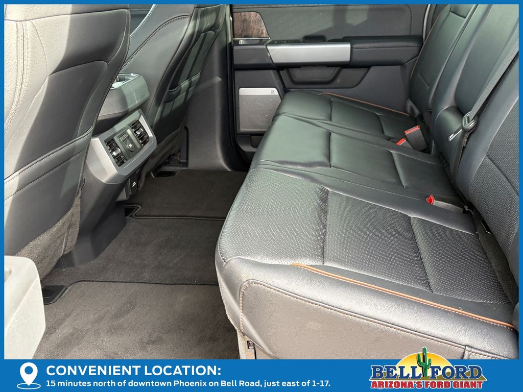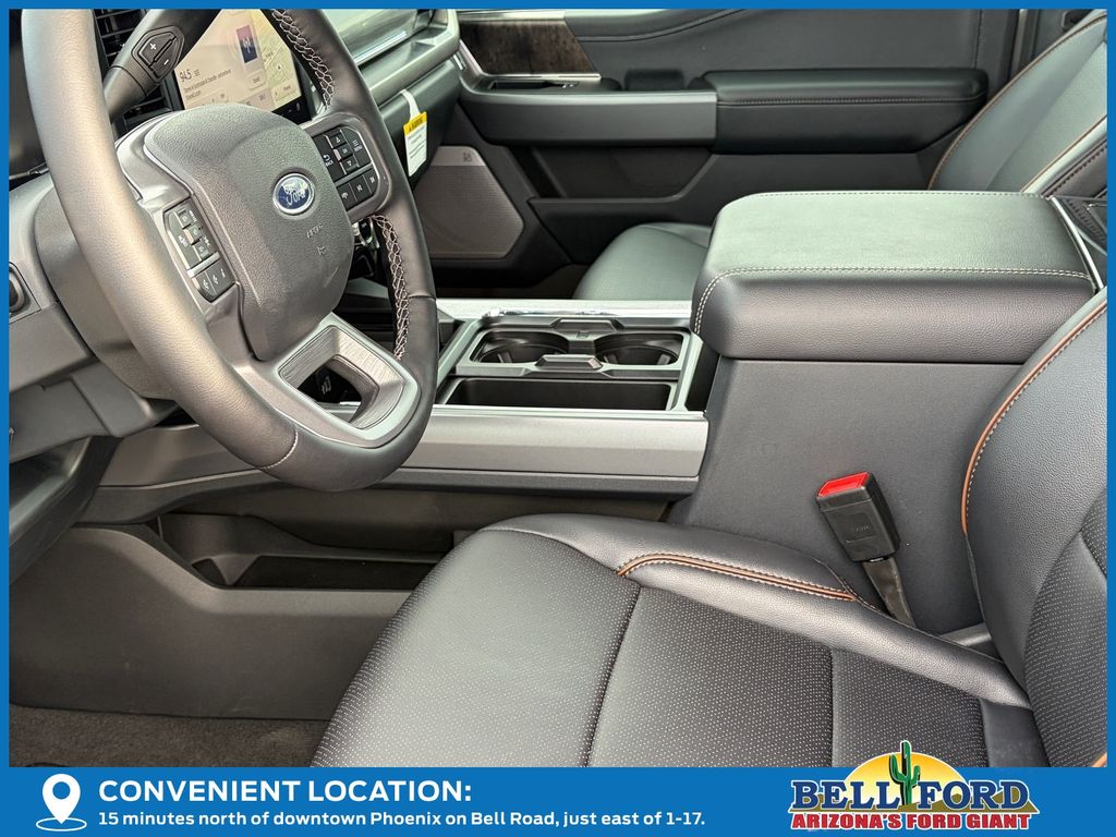 This Ford F-250SD is equipped with the following options: Black Appearance Package (6" Ebony Black Angular Running Boards, Black Painted Front Grille Surround, Body Color Front and Rear Bumpers, and Ebony Black Painted Mirror Caps), FX4 Off-Road Package (Hill Descent Control, Off-Road Specifically Tuned Shock Absorbers, and Unique FX4 Off-Road Box Decal), GVWR: F-250 >10K Package, High Capacity 11.6" Axle Upgrade Package, Lariat Ultimate Package (4-Way Adjustable Headrests, Head-Up Display, Power-Deployable Running Boards, Power-Sliding Rear-Window with Defrost, Privacy Glass, Pro Trailer Backup Assist, Pro Trailer Hitch Assist, Radio: B&O Unleashed Sound System by Bang & Olufsen, SiriusXM Radio with 360L, SYNC 4 with Enhanced Voice Recognition, and Tailgate Step and Handle), Order Code 608A (Flow-Through Console, Front ActiveX Trimmed 40/Console/40 Seats, Radio: B&O Sound System by Bang and Olufsen, and Wheels: 18" Bright Machined and Carbonized Gray Aluminum), 4WD, 4-Wheel Disc Brakes, 410 Amp Dual Alternators, 8 Speakers, ABS brakes, Adaptive Cruise Control with Stop-and-Go, Adjustable pedals, Air Conditioning, Alloy wheels, AM/FM radio: SiriusXM with 360L, Auto High-beam Headlights, Auto-dimming Rear-View mirror, Automatic High Beam, Automatic temperature control, BLIS with Cross-Traffic Alert, Brake assist, Bumpers: chrome, Compass, Delay-off headlights, Driver door bin, Driver vanity mirror, Dual AGM 68 AH Battery, Dual front impact airbags, Dual front side impact airbags, Electronic Stability Control, Emergency communication system: SYNC 4 911 Assist, Engine Block Heater, Front and Rear Parking Sensors, Front anti-roll bar, Front Bucket Seats, Front Center Armrest, Front dual zone A/C, Front fog lights, Front reading lights, Fully automatic headlights, Garage door transmitter, Heated door mirrors, Heated front seats, Heated rear seats, Heated steering wheel, Illuminated entry, Lane-Keeping System, Low tire pressure warning, Memory seat, Navigation System, Outside temperature display, Overhead airbag, Overhead console, Panic alarm, Passenger door bin, Passenger vanity mirror, Pedal memory, Post-Collision Braking, Power door mirrors, Power driver seat, Power passenger seat, Power steering, Power windows, Pre-Collision Assist, Rain sensing wipers, Rear Parking Sensors, Rear reading lights, Rear seat center armrest, Rear step bumper, Rear window defroster, Remote keyless entry, Security system, Speed control, Split folding rear seat, Steering wheel mounted audio controls, Tachometer, Telescoping steering wheel, Tilt steering wheel, Traction control, Trip computer, Turn signal indicator mirrors, Twin Panel Power Moonroof, Upfitter Switches (6), Variably intermittent wipers, and Ventilated front seats.