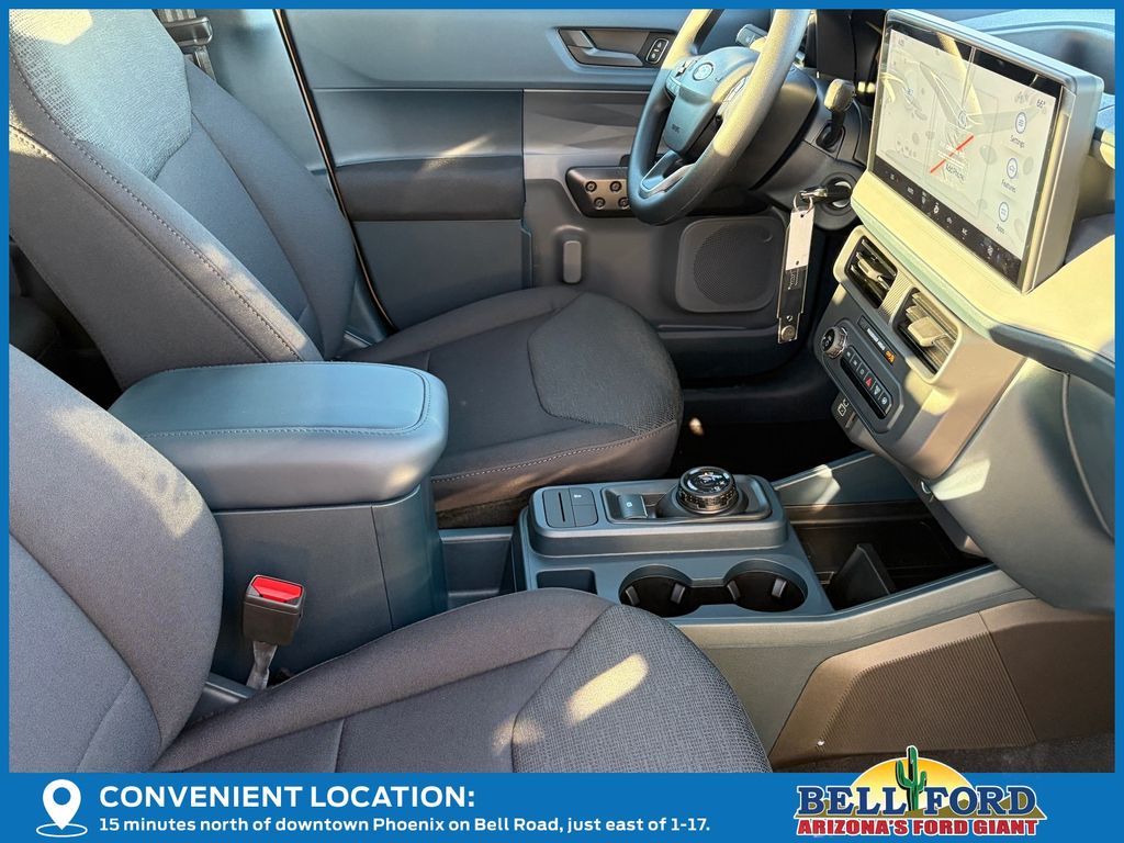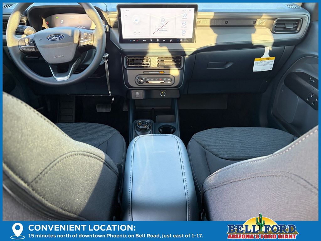 This Ford Maverick is equipped with the following options: Equipment Group 100A, Ford Co-Pilot360 1.0 (Auto High Beams, BLIS w/Cross-Traffic Alert, Cross Traffic Brake Assist, Evasive Steering Assist, Intersection Assist, Lane-Keeping System, Power Glass Manual-Folding Mirrors, Pre-Collision Assist w/Automatic Emergency Braking, Rear Parking Sensors, and Rear-View Camera), 2.5L I-4 Hybrid, 2.91 Axle Ratio, 2K Trailer Hitch Receiver w/4-Pin Connector, 4-Wheel Disc Brakes, 6 Speakers, ABS brakes, Air Conditioning, AM/FM radio: SiriusXM with 360L, Apple CarPlay/Android Auto, Auto High-beam Headlights, Automatic temperature control, Brake assist, Bumpers: body-color, Compass, Delay-off headlights, Driver door bin, Driver vanity mirror, Dual front impact airbags, Dual front side impact airbags, Electronic Stability Control, Emergency communication system: SYNC 4 911 Assist, Exterior Parking Camera Rear, Front anti-roll bar, Front Bucket Seats, Front Center Armrest, Front Cloth Bucket Seats, Front reading lights, Front wheel independent suspension, Fully automatic headlights, Illuminated entry, Knee airbag, Low tire pressure warning, Occupant sensing airbag, Outside temperature display, Overhead airbag, Overhead console, Panic alarm, Passenger door bin, Passenger vanity mirror, Power steering, Power windows, Radio data system, Radio: AM/FM Stereo w/6 Speakers, Rear anti-roll bar, Rear step bumper, Remote keyless entry, SiriusXM w/360L, Speed control, Speed-sensing steering, Steering wheel mounted audio controls, SYNC 4 w/Enhanced Voice Recognition, Telescoping steering wheel, Tilt steering wheel, Traction control, Trip computer, and Wheels: 17" Steel w/Sparkle Silver Painted Cover.