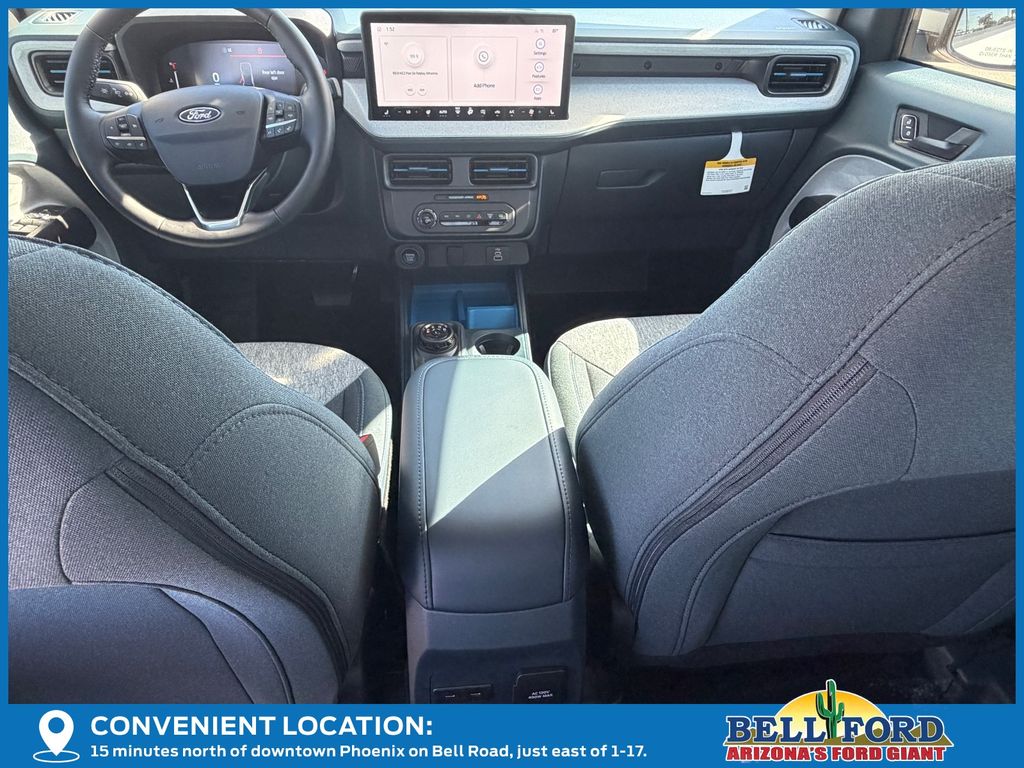 This Ford Maverick is equipped with the following options: Equipment Group 300A, XLT Luxury Package (400W Inverter w/USB Console Rear, Heated Mirror w/Painted Black Skull Caps, Heated Seats, LED Box Lighting, Remote Start System, and Soft Vinyl Wrapped Heated Steering Wheel), 2.5L I-4 Hybrid, 2.91 Axle Ratio, 4-Wheel Disc Brakes, 6 Speakers, ABS brakes, Air Conditioning, Alloy wheels, AM/FM radio: SiriusXM with 360L, Apple CarPlay/Android Auto, Auto High Beams, Auto High-beam Headlights, Automatic temperature control, Brake assist, Bumpers: body-color, Compass, Delay-off headlights, Driver door bin, Driver vanity mirror, Dual front impact airbags, Dual front side impact airbags, Electronic Stability Control, Emergency communication system: SYNC 4 911 Assist, Exterior Parking Camera Rear, Front anti-roll bar, Front Bucket Seats, Front Center Armrest, Front reading lights, Front wheel independent suspension, Fully automatic headlights, Illuminated entry, Knee airbag, Low tire pressure warning, Occupant sensing airbag, Outside temperature display, Overhead airbag, Overhead console, Panic alarm, Passenger door bin, Passenger vanity mirror, Power door mirrors, Power steering, Power windows, Pre-Collision Assist w/Automatic Emergency Braking, Radio data system, Radio: AM/FM Stereo w/6 Speakers, Rear anti-roll bar, Rear seat center armrest, Rear step bumper, Rear-View Camera, Remote keyless entry, Security system, SiriusXM w/360L, Speed control, Speed-sensing steering, Steering wheel mounted audio controls, SYNC 4 w/Enhanced Voice Recognition, Telescoping steering wheel, Tilt steering wheel, Traction control, Trip computer, Unique Cloth Front Bucket Seats, and Wheels: 17" Carbonized Gray Painted Aluminum.