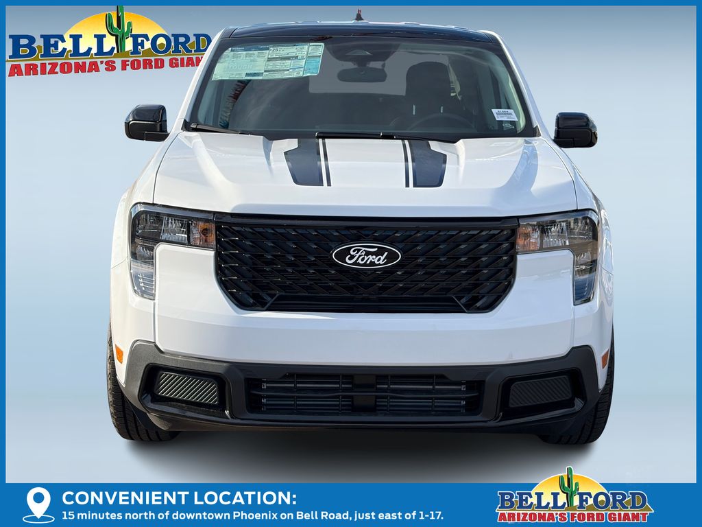 This Ford Maverick is equipped with the following options: Black Appearance Package (Black Grille, Black Interior Accents, Black Painted Mirrors, Front & Back Black Edition Ford Logo, Unique Cloth Front Bucket Seats w/Black Appearance, and Wheels: 19" Black Painted Aluminum), Equipment Group 302A, 2.91 Axle Ratio, 4-Wheel Disc Brakes, 6 Speakers, ABS brakes, Air Conditioning, Alloy wheels, AM/FM radio: SiriusXM with 360L, Apple CarPlay/Android Auto, Auto High Beams, Auto High-beam Headlights, Automatic temperature control, Brake assist, Bumpers: body-color, Compass, Delay-off headlights, Driver door bin, Driver vanity mirror, Dual front impact airbags, Dual front side impact airbags, Electronic Stability Control, Emergency communication system: SYNC 4 911 Assist, Exterior Parking Camera Rear, Four wheel independent suspension, Front anti-roll bar, Front Bucket Seats, Front Center Armrest, Front reading lights, Fully automatic headlights, Illuminated entry, Knee airbag, Low tire pressure warning, Occupant sensing airbag, Outside temperature display, Overhead airbag, Overhead console, Panic alarm, Passenger door bin, Passenger vanity mirror, Power door mirrors, Power steering, Power windows, Pre-Collision Assist w/Automatic Emergency Braking, Radio data system, Radio: AM/FM Stereo w/6 Speakers, Rear anti-roll bar, Rear seat center armrest, Rear step bumper, Rear-View Camera, Remote keyless entry, Security system, SiriusXM w/360L, Speed control, Speed-sensing steering, Steering wheel mounted audio controls, SYNC 4 w/Enhanced Voice Recognition, Telescoping steering wheel, Tilt steering wheel, Traction control, Trip computer, Unique Cloth Front Bucket Seats, and Wheels: 17" Carbonized Gray Painted Aluminum. Price includes: $2000 - Retail Customer Cash. Exp. 12/17/2025
