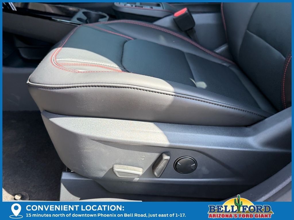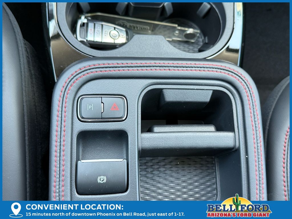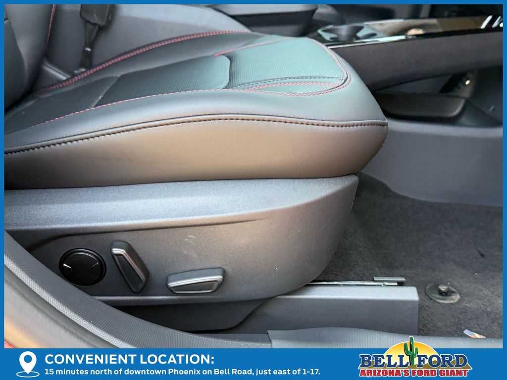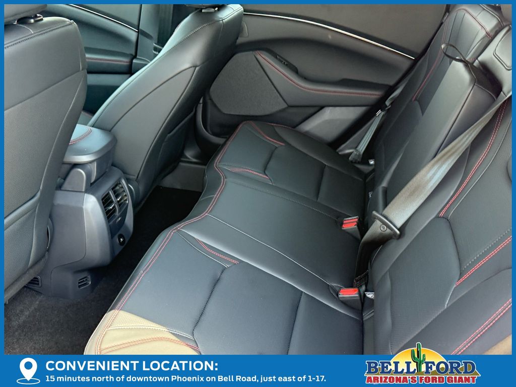 This Ford Mustang Mach-E is equipped with the following options: Equipment Group 300A Standard Package, Sport Appearance Package (Brembo Branded Front Brakes, Red Painted Front & Rear Brake Calipers, Sport Pedals, Unique Front Fascia, and Wheels: 19" Monochromatic High Gloss Black-Painted), 10 Speakers, 4-Wheel Disc Brakes, ABS brakes, Air Conditioning, Alloy wheels, AM/FM radio: SiriusXM with 360L, Apple CarPlay/Android Auto, Auto High-beam Headlights, Auto-dimming Rear-View mirror, Automatic temperature control, Brake assist, Bumpers: body-color, Compass, Delay-off headlights, Driver door bin, Driver vanity mirror, Dual front impact airbags, Dual front side impact airbags, Electronic Stability Control, Emergency communication system: 911 Assist, Exterior Parking Camera Rear, Four wheel independent suspension, Front anti-roll bar, Front Bucket Seats, Front Center Armrest, Front dual zone A/C, Front reading lights, Fully automatic headlights, Garage door transmitter, Heated door mirrors, Heated front seats, Heated steering wheel, Heated/Ventilated Perforated ActiveX Bucket Seats, Illuminated entry, Internet access capable: FordPass Connect, Knee airbag, Low tire pressure warning, Memory seat, Mobile Power Cord (120V/240V), Navigation system: Connected Navigation, Occupant sensing airbag, Outside temperature display, Overhead airbag, Overhead console, Panic alarm, Passenger door bin, Passenger vanity mirror, Power door mirrors, Power driver seat, Power Liftgate, Power passenger seat, Power steering, Power windows, Radio data system, Radio: B&O Sound System by Bang & Olufsen, Rain sensing wipers, Rear anti-roll bar, Rear seat center armrest, Rear side impact airbag, Rear window defroster, Rear window wiper, Remote keyless entry, Security system, SiriusXM w/360L, Speed control, Speed-sensing steering, Speed-Sensitive Wipers, Split folding rear seat, Spoiler, Steering wheel mounted audio controls, SYNC 4A w/Enhanced Voice Recognition, Telescoping steering wheel, Tilt steering wheel, Traction control, Trip computer, Turn signal indicator mirrors, Variably intermittent wipers, Ventilated front seats, and Wheels: 19" Bright Machined-Face Aluminum. Price includes: $4000 - Retail Customer Cash. Exp. 04/30/2026