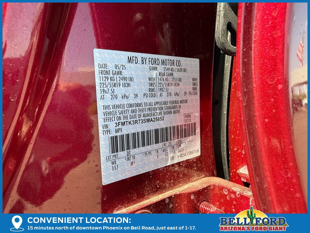 This Ford Mustang Mach-E is equipped with the following options: Equipment Group 300A Standard Package, 10 Speakers, 4-Wheel Disc Brakes, ABS brakes, Air Conditioning, Alloy wheels, AM/FM radio: SiriusXM with 360L, Apple CarPlay/Android Auto, Auto High-beam Headlights, Auto-dimming Rear-View mirror, Automatic temperature control, Brake assist, Bumpers: body-color, Compass, Delay-off headlights, Driver door bin, Driver vanity mirror, Dual front impact airbags, Dual front side impact airbags, Electronic Stability Control, Emergency communication system: 911 Assist, Exterior Parking Camera Rear, Four wheel independent suspension, Front anti-roll bar, Front Bucket Seats, Front Center Armrest, Front dual zone A/C, Front reading lights, Fully automatic headlights, Garage door transmitter, Heated door mirrors, Heated front seats, Heated steering wheel, Heated/Ventilated Perforated ActiveX Bucket Seats, Illuminated entry, Knee airbag, Low tire pressure warning, Memory seat, Mobile Power Cord (120V/240V), Navigation system: Connected Navigation, Occupant sensing airbag, Outside temperature display, Overhead airbag, Overhead console, Panic alarm, Passenger door bin, Passenger vanity mirror, Power door mirrors, Power driver seat, Power Liftgate, Power passenger seat, Power steering, Power windows, Radio data system, Radio: B&O Sound System by Bang & Olufsen, Rain sensing wipers, Rear anti-roll bar, Rear seat center armrest, Rear side impact airbag, Rear window defroster, Rear window wiper, Remote keyless entry, Security system, SiriusXM w/360L, Speed control, Speed-sensing steering, Speed-Sensitive Wipers, Split folding rear seat, Spoiler, Steering wheel mounted audio controls, SYNC 4A w/Enhanced Voice Recognition, Telescoping steering wheel, Tilt steering wheel, Traction control, Trip computer, Turn signal indicator mirrors, Variably intermittent wipers, Ventilated front seats, and Wheels: 19" Bright Machined-Face Aluminum. Price includes: $3000 - Retail Customer Cash. Exp. 01/05/2026
