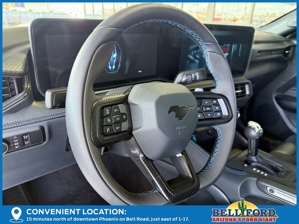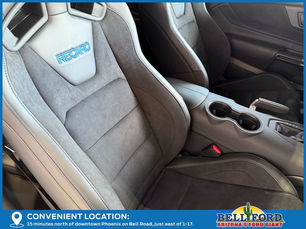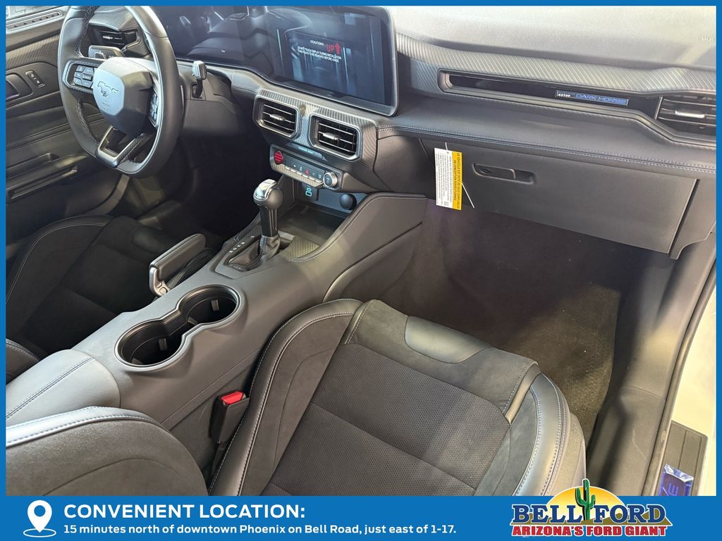 This Ford Mustang is equipped with the following options: Dark Horse Handling Package (Front Towing Hooks, Magnetic Damping System, Performance Front Aero Splitter, Performance Rear Spoiler w/Gurney Flap, and Wheels: 19" x 10.5" Fr/19" x 11" Rr Tarnished Alum), Equipment Group 700A Deluxe Package (Aluminum Foot Pedals, Approach Detection, Cloth/Vinyl Climate-Controlled Bucket Seats, Driver Seat & Mirrors Memory, and Universal Garage Door Opener (UGDO)), RECARO Sport Seats (RECARO Micro-Suede/Vinyl Bucket Seats), Security Package (Active Anti-Theft System, Locking Center Console, and Wheel Locking Kit), 12 Speakers, 4-Wheel Disc Brakes, ABS brakes, Adaptive suspension, Air Conditioning, Alloy wheels, AM/FM radio: SiriusXM with 360L, AM/FM Stereo, Auto High-beam Headlights, Auto-dimming Rear-View mirror, Automatic temperature control, B&O Sound System by Bang & Olufsen, Brake assist, Bumpers: body-color, Cloth/Vinyl Heated Bucket Seats, Compass, Delay-off headlights, Driver door bin, Driver vanity mirror, Dual front impact airbags, Dual front side impact airbags, Electronic Stability Control, Emergency communication system: 911 Assist, Exterior Parking Camera Rear, Four wheel independent suspension, Front anti-roll bar, Front Bucket Seats, Front Center Armrest, Front dual zone A/C, Front reading lights, Fully automatic headlights, HD Radio, Heated front seats, Heated steering wheel, Illuminated entry, Knee airbag, Low tire pressure warning, Navigation system: Connected Navigation, Occupant sensing airbag, Outside temperature display, Overhead airbag, Overhead console, Panic alarm, Passenger door bin, Passenger vanity mirror, Power door mirrors, Power driver seat, Power passenger seat, Power steering, Power windows, Radio data system, Rain sensing wipers, Rear anti-roll bar, Rear Parking Sensors, Rear window defroster, Remote keyless entry, Remote Start System, SiriusXM w/360L, Speed control, Speed-sensing steering, Speed-Sensitive Wipers, Split folding rear seat, Spoiler, Sport steering wheel, Steering wheel mounted audio controls, SYNC 4, Tachometer, Telescoping steering wheel, Tilt steering wheel, Traction control, Trip computer, Variably intermittent wipers, Voltmeter, and Wheels: 19" x 9.5" Fr & 19" x 10" Rr Aluminum. Price includes dealer added accessories totaling $5,000.