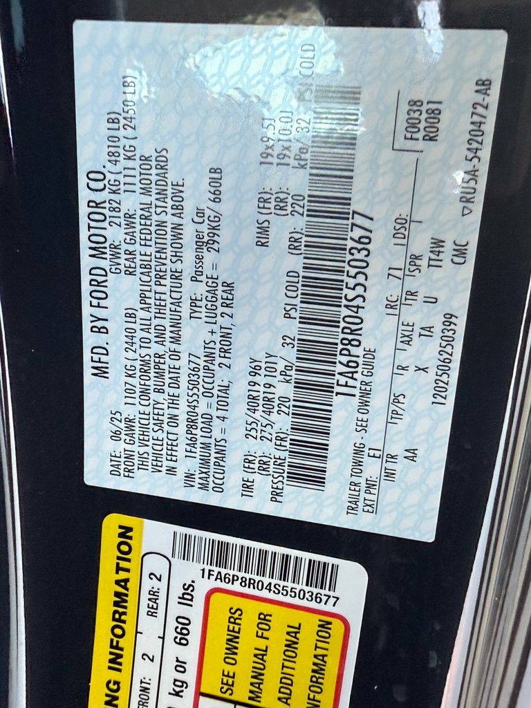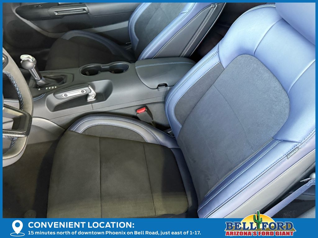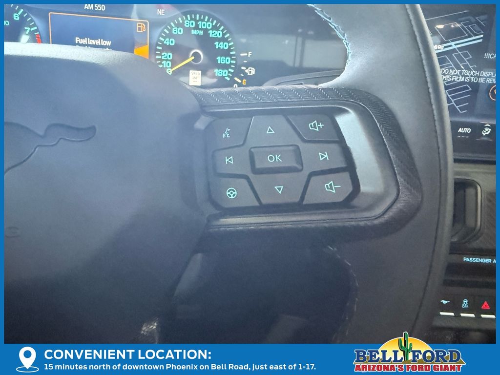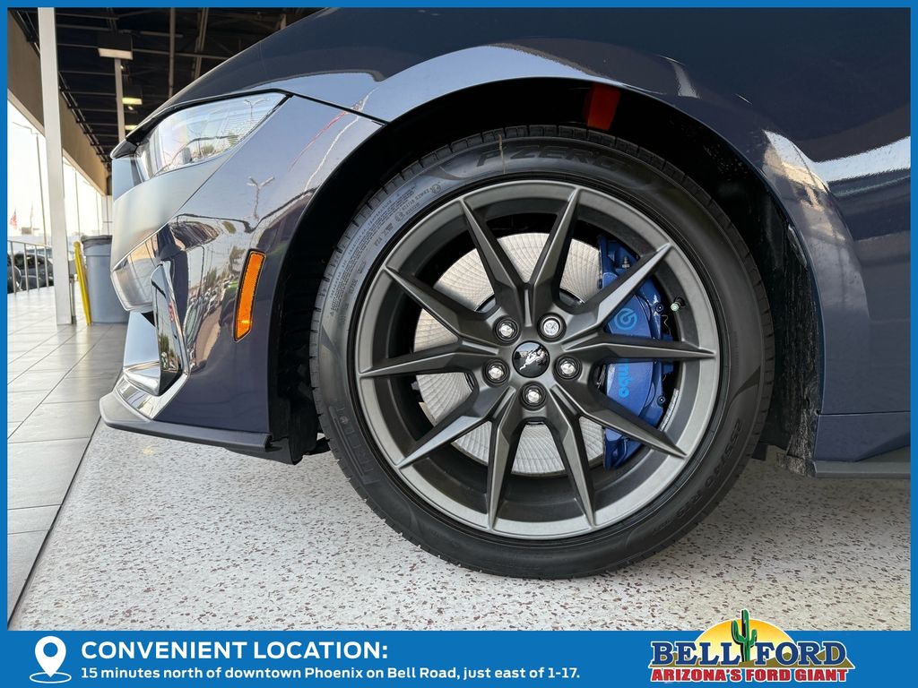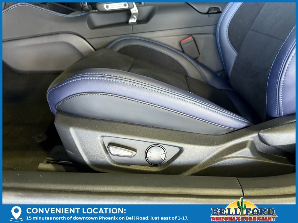 This Ford Mustang is equipped with the following options: Dark Horse Appearance Package (Notorious Blue Painted Brake Calipers, Painted Black Roof, and Unique Hood Graphic), Equipment Group 700A Deluxe Package (Aluminum Foot Pedals, Approach Detection, Cloth/Vinyl Climate-Controlled Bucket Seats, Driver Seat & Mirrors Memory, and Universal Garage Door Opener (UGDO)), Security Package (Active Anti-Theft System, Locking Center Console, and Wheel Locking Kit), 12 Speakers, 4-Wheel Disc Brakes, ABS brakes, Adaptive suspension, Air Conditioning, Alloy wheels, AM/FM radio: SiriusXM with 360L, AM/FM Stereo, Auto High-beam Headlights, Auto-dimming Rear-View mirror, Automatic temperature control, B&O Sound System by Bang & Olufsen, Brake assist, Bumpers: body-color, Cloth/Vinyl Heated Bucket Seats, Compass, Delay-off headlights, Driver door bin, Driver vanity mirror, Dual front impact airbags, Dual front side impact airbags, Electronic Stability Control, Emergency communication system: 911 Assist, Exterior Parking Camera Rear, Four wheel independent suspension, Front anti-roll bar, Front Bucket Seats, Front Center Armrest, Front dual zone A/C, Front reading lights, Fully automatic headlights, HD Radio, Heated front seats, Heated steering wheel, Illuminated entry, Knee airbag, Low tire pressure warning, Navigation system: Connected Navigation, Occupant sensing airbag, Outside temperature display, Overhead airbag, Overhead console, Panic alarm, Passenger door bin, Passenger vanity mirror, Power door mirrors, Power driver seat, Power passenger seat, Power steering, Power windows, Radio data system, Rain sensing wipers, Rear anti-roll bar, Rear Parking Sensors, Rear window defroster, Remote keyless entry, SiriusXM w/360L, Speed control, Speed-sensing steering, Speed-Sensitive Wipers, Split folding rear seat, Spoiler, Sport steering wheel, Steering wheel mounted audio controls, SYNC 4, Tachometer, Telescoping steering wheel, Tilt steering wheel, Traction control, Trip computer, Variably intermittent wipers, Voltmeter, and Wheels: 19" x 9.5" Fr & 19" x 10" Rr Aluminum. Price includes dealer added accessories totaling $5,000.