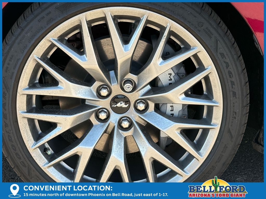 This Ford Mustang is equipped with the following options: Equipment Group 401A High Package (Driver Seat & Mirrors Memory, Illuminated Door-Sill Scuff Plates, Integrated Turn Signals, and Leather-Trimmed Bucket Seats w/Color Accents), Ford Co-Pilot360 Assist+ (Connected Navigation and Pre-Collision Assist w/Automatic Emergency Braking), Security Package (Active Anti-Theft System, Locking Center Console, and Wheel Locking Kit), 20" Wheels, 3.55 Limited Slip Rear Axle, 4-Wheel Disc Brakes, 9 Speakers, ABS brakes, Air Conditioning, Alloy wheels, AM/FM radio: SiriusXM with 360L, AM/FM Stereo, Auto High-beam Headlights, Auto-dimming Rear-View mirror, Automatic temperature control, Brake assist, Bumpers: body-color, Climate Controlled Heated/Cooled Front Seats, Compass, Delay-off headlights, Driver door bin, Driver vanity mirror, Dual front impact airbags, Dual front side impact airbags, Electronic Stability Control, Emergency communication system: 911 Assist, Exterior Parking Camera Rear, Four wheel independent suspension, Front anti-roll bar, Front Bucket Seats, Front Center Armrest, Front dual zone A/C, Front reading lights, Fully automatic headlights, Garage door transmitter, HD Radio, Heated door mirrors, Heated front seats, Heated steering wheel, Illuminated entry, Instrument Panel w/Accent Stitch, Internet access capable: FordPass Connect, Knee airbag, Leather Shift Knob, Leather steering wheel, Leather-Trimmed Bucket Seats, Low tire pressure warning, Occupant sensing airbag, Outside temperature display, Overhead airbag, Overhead console, Panic alarm, Passenger door bin, Passenger vanity mirror, Power door mirrors, Power driver seat, Power passenger seat, Power steering, Power windows, Radio data system, Rain sensing wipers, Rear anti-roll bar, Rear Parking Sensors, Rear window defroster, Remote keyless entry, SiriusXM w/360L, Speed control, Speed-sensing steering, Speed-Sensitive Wipers, Split folding rear seat, Spoiler, Sport steering wheel, Steering wheel mounted audio controls, SYNC 4, Tachometer, Telescoping steering wheel, Tilt steering wheel, Traction control, Trip computer, Turn signal indicator mirrors, Variably intermittent wipers, Ventilated front seats, Voltmeter, Wheels: 19" x 8.5" Shadow Silver-Painted Aluminum, and Wheels: 20" x 9" Premium-Painted Aluminum. Price includes: $3500 - Retail Customer Cash. Exp. 04/30/2026