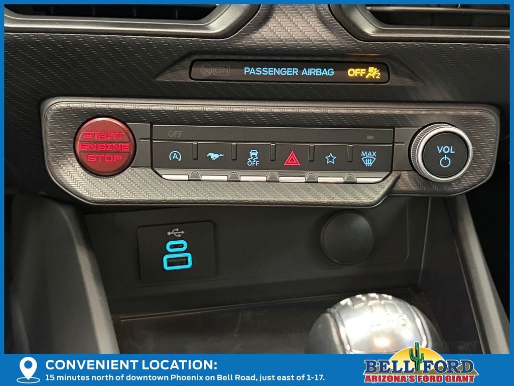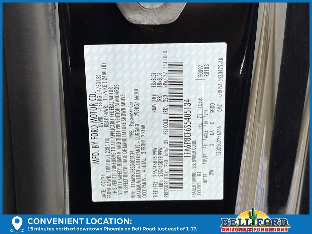 This Ford Mustang is equipped with the following options: Equipment Group 301A High Package (9-Speaker Stereo System, Ambient Lighting w/MyColor, Cloth/Vinyl Heated Bucket Seats, and SiriusXM w/360L & HD Radio), 3.55 Limited Slip Rear Axle, 4-Wheel Disc Brakes, 6 Speakers, ABS brakes, Active Valve Performance Exhaust, Air Conditioning, Alloy wheels, AM/FM radio, AM/FM Stereo, Auto High-beam Headlights, Automatic temperature control, Brake assist, Bumpers: body-color, Cloth Bucket Seats, Compass, Delay-off headlights, Driver door bin, Driver vanity mirror, Dual front impact airbags, Dual front side impact airbags, Electronic Stability Control, Emergency communication system: 911 Assist, Exterior Parking Camera Rear, Four wheel independent suspension, Front anti-roll bar, Front Bucket Seats, Front Center Armrest, Front dual zone A/C, Front reading lights, Fully automatic headlights, Illuminated entry, Knee airbag, Leather Shift Knob, Leather steering wheel, Low tire pressure warning, Occupant sensing airbag, Outside temperature display, Overhead airbag, Overhead console, Panic alarm, Passenger door bin, Passenger vanity mirror, Power door mirrors, Power steering, Power windows, Radio data system, Rain sensing wipers, Rear anti-roll bar, Rear Parking Sensors, Rear window defroster, Remote keyless entry, Speed control, Speed-sensing steering, Speed-Sensitive Wipers, Split folding rear seat, Spoiler, Sport steering wheel, Steering wheel mounted audio controls, SYNC 4, Tachometer, Telescoping steering wheel, Tilt steering wheel, Traction control, Trip computer, Variably intermittent wipers, Voltmeter, and Wheels: 18" x 8.5" Ebony Black Painted Aluminum. Price includes: $3500 - Retail Customer Cash. Exp. 01/05/2026
